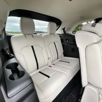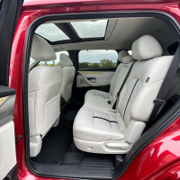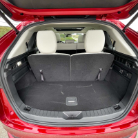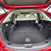 | Velik, večji, CX-80; nova velika mazda je s s 499,6 centimetra dolžine velik avto, čeprav njena podoba to delno skriva. Za primerjavo: je le za približno 7 cm krajša od Audijevega velikega cestnega terenca Q7 in za približno 19 cm od še večjega BMW X7, a ima od obeh daljšo medosno razdaljo - mazdina meri kar 312 cm. Prav dolga medosna razdalja je zaslužna, da dodatna sedeža v tretji nista namenjena le otrokom, kot je to pogosto pri sedemsedežnih avtomobilih, pač pa v tretji vrsti lahko udobno sedita tudi dva odrasla, če nista ravno visokorasla - in če se uspeta malce nerodno zriniti skozi odprtino, ki nastane, ko skrajna sedeža v drugi vrsti prekucnemo naprej. |