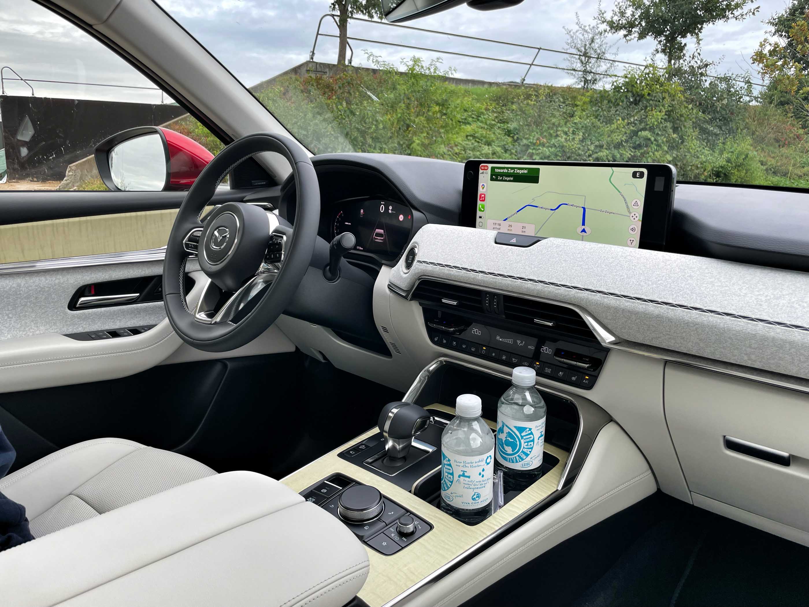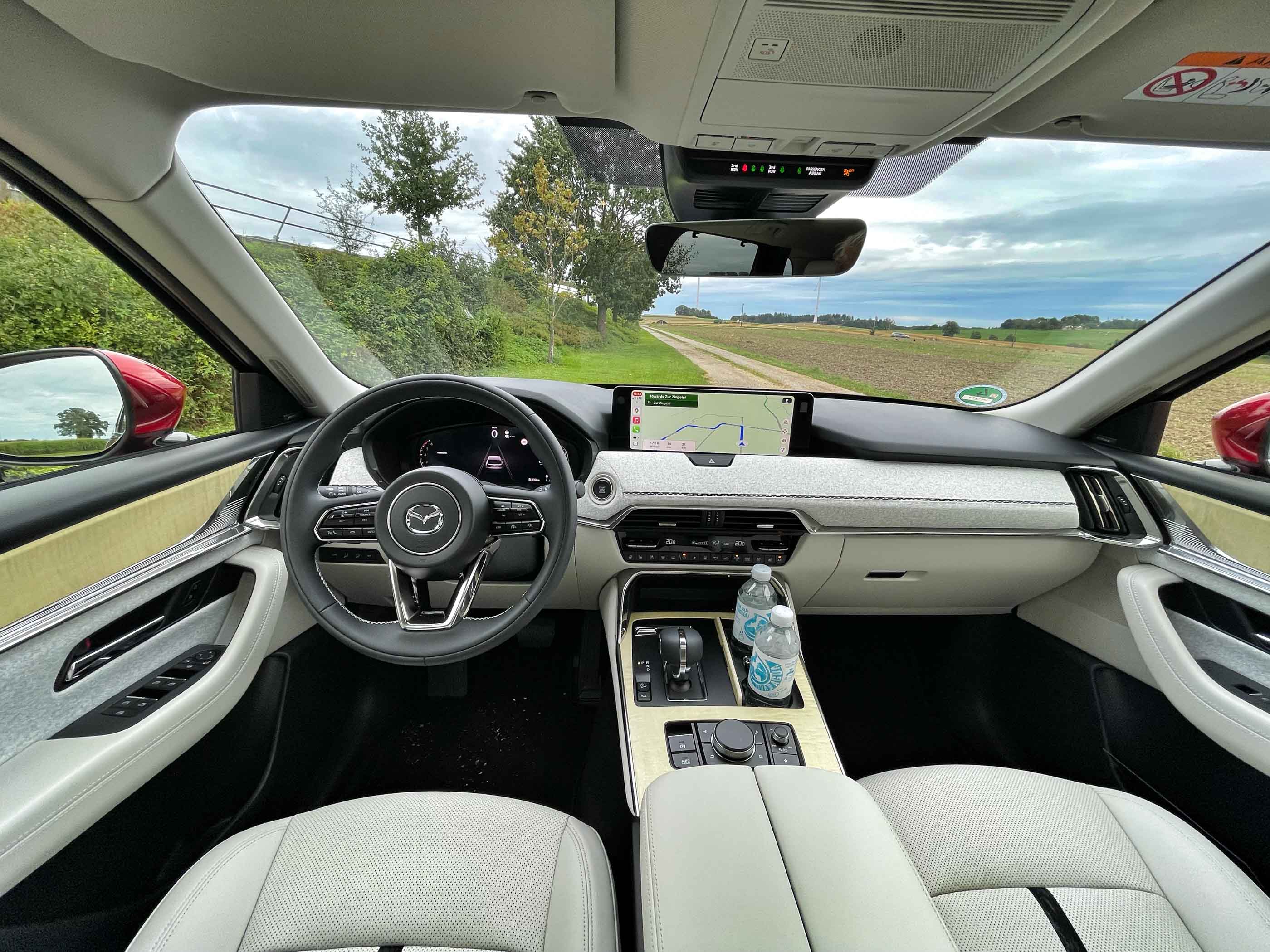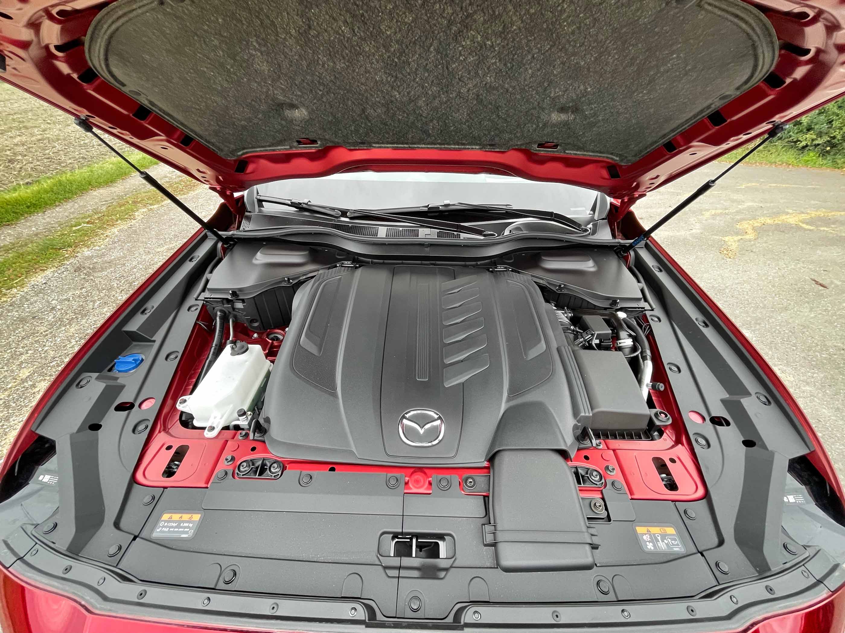 Preostali del mazde CX-80 je enak kot pri mazdi CX-60, o kateri smo v Motoreviji že veliko pisali. CX-80 je na voljo z dvema pogonskima kombinacijama. Priključno-hibridni pogonski sistem, ki ga sestavljajo 2,5-litrski bencinski štirivaljnik, električni motor in litij-ionski akumulatorski sklop s 17,8 kWh, ima sistemsko moč 241 kW in sistemski navor 500 Nm, omogoča pa do 60 km vožnje samo na elektriko.