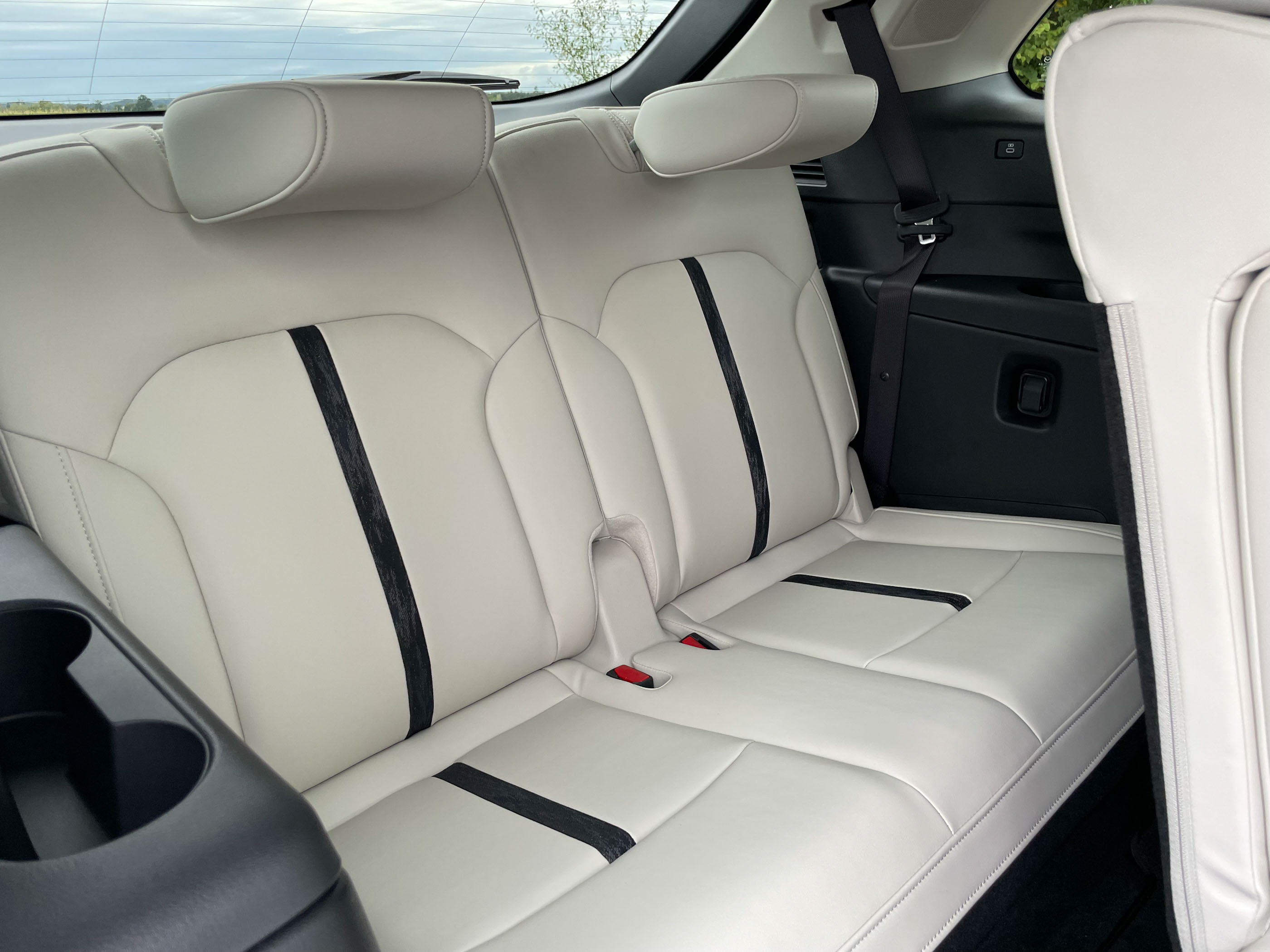 Mazdin CX-80 je torej lahko sedemsedežnik, ni pa nujno; na izbiro so tri možnosti ureditve potniškega prostora. Prva predstavlja klasični sedemsedežnik s klopjo v drugi vrsti, ki omogoča vzdolžni pomik za 12 cm in nastavljanje naklona naslonjal od 15 do 33 stopinj. Druga možnost ponuja dva posamična sedeža v drugi vrsti, med katerima je sredinska konzola za odlaganje in shranjevanje drobnarij. Tretjo možnost predstavljata dva posamična sedeža v drugi vrsti, med katerima je prostor za prehod do zadnjih dveh sedežev - doplačilo za takšno razporeditev je 850 evrov …