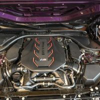 Ob bencinski moči je tu še elektrika, ki še okrepi vrhunski odziv osemvaljnika in doda električni sunek navora. Vse skupaj na kolesa pošlje 8-stopenjski M steptronic samodejni menjalnik, ki mora skozi svoje zobnike prenesti kar 1000 Nm navora in 535 kW skupne sistemske moči. Ob tem podatku tudi vsi kilogrami dobijo drugačen pomen, saj orjaška sistemska moč postreže s prepričljivim razmerjem moči in mase: en kW moči mora poganjati le 4,6 kg avtomobila. To razmerje je skoraj tako dobro kot pri štirisedežnem Ferrarijev športniku purosangue v katerem kW moči poganja 4,1 kg avtomobila. Odličen dosežek za potovalno družinsko limuzino oziroma karavan!