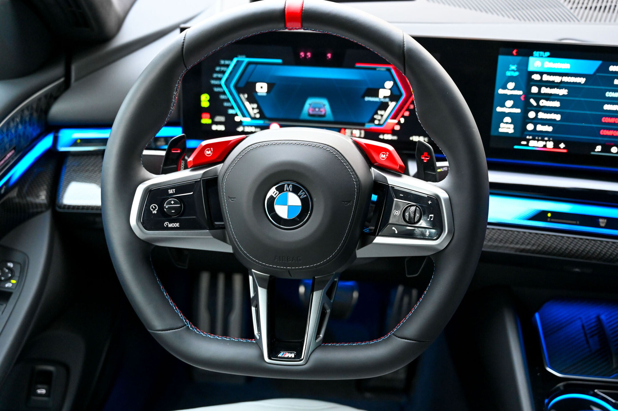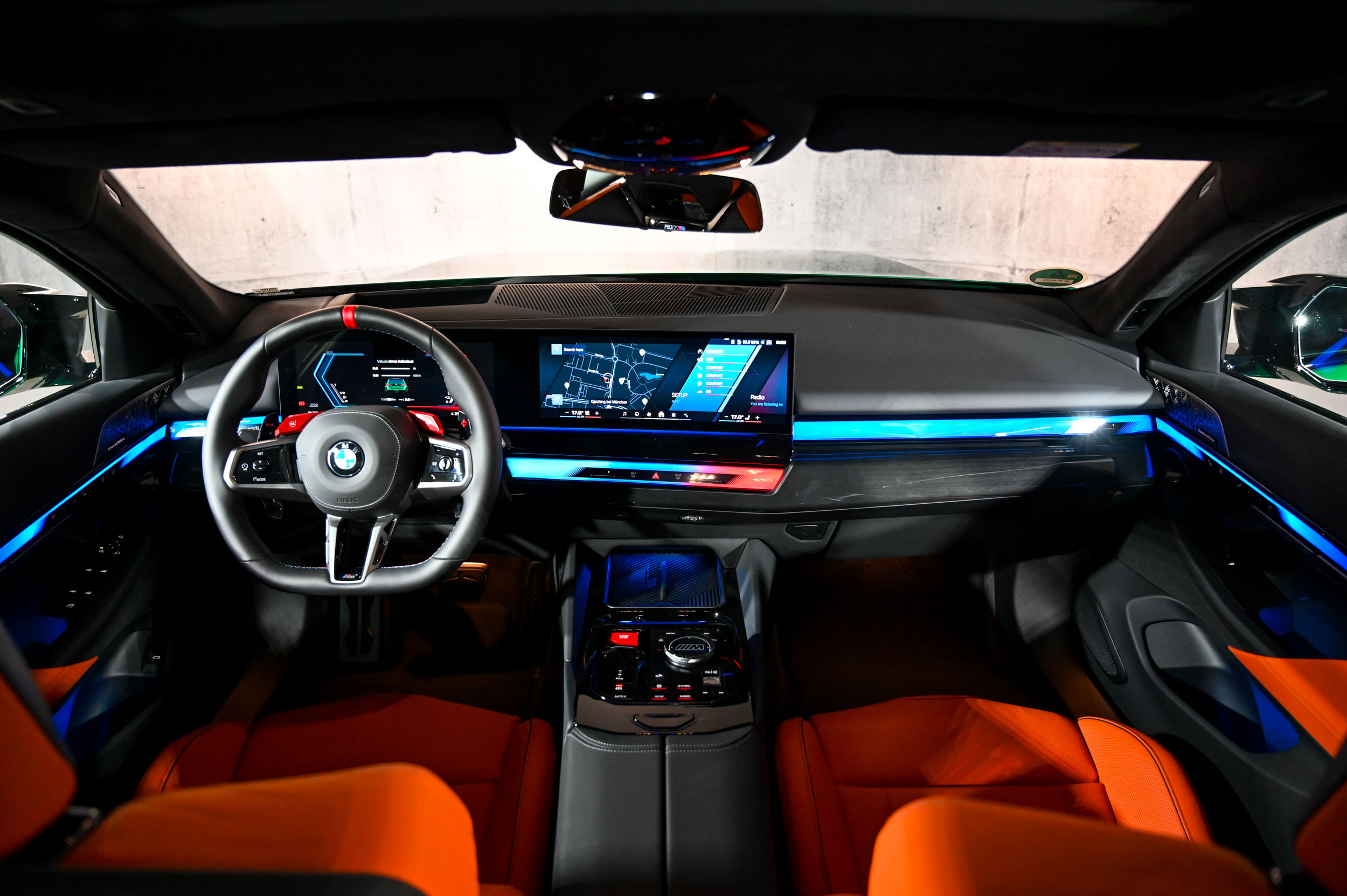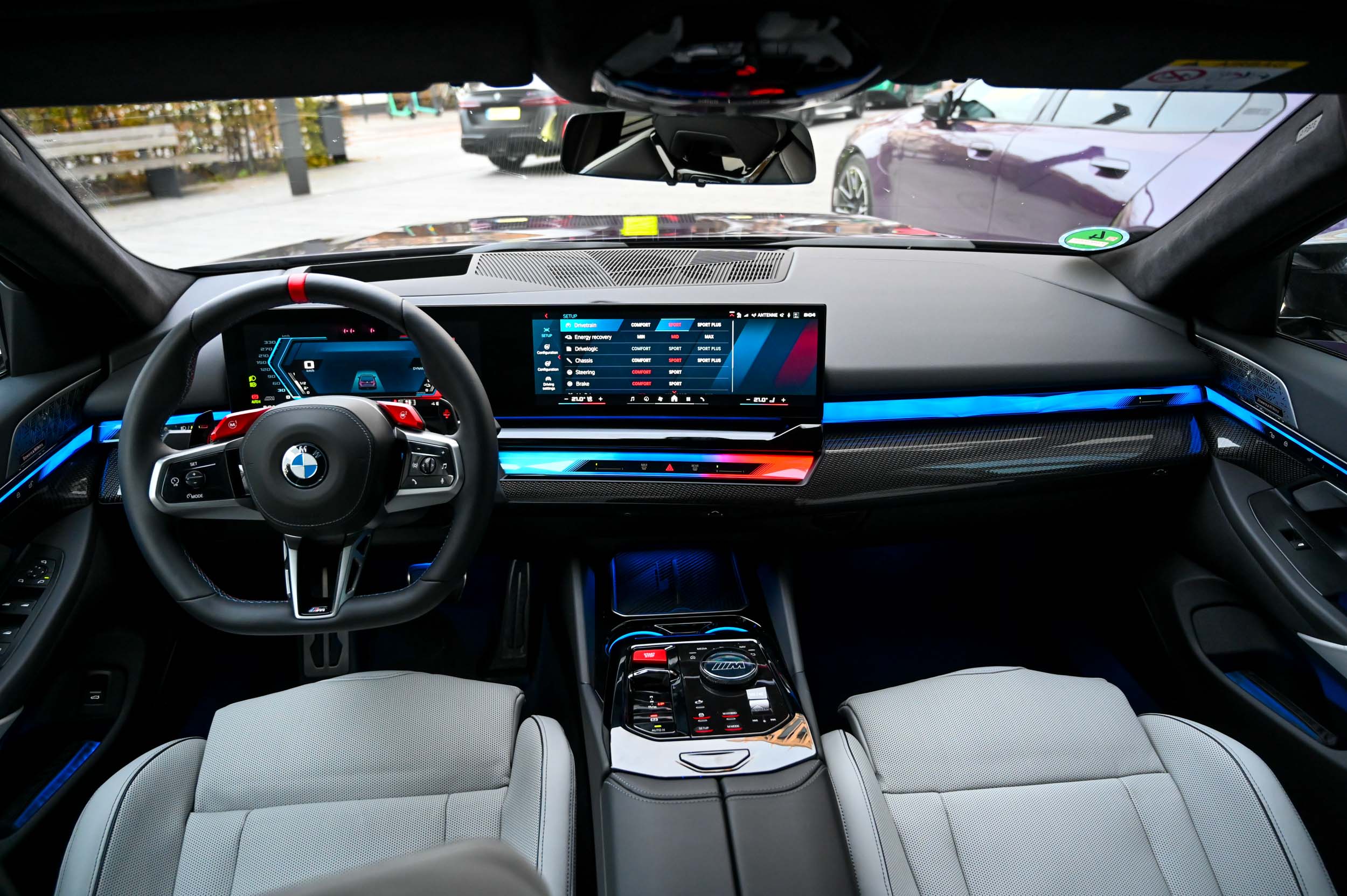 V bavarski prestolnici smo lahko v gostem prometu preverili tudi okretnost in prednost električnega dela pogona. Kot priključna hibrida M5 in M5 touring omogočata vožnjo le na električni pogon. Že res, da visokonapetostni pogonski akumulator zmogljivosti 18,6 kWh avtu doda 205 kilogramov, še dodatnih 50 pa prinese električni motor s 145 kW moči, a z njuno pomočjo je mogoče brez kaplje bencina tudi do 140 km/h na uro prevoziti dobrih 60 kilometrov po mestnih ulicah ali obvoznicah. Novi BMW M5 s priključno-hibridnim pogonom seveda ni ekološki avto zelenega prehoda, a elektrika mu pomaga preživeti v sterilno zeleni evropski politiki mobilnosti, hkrati pa okrepi njegove zmogljivosti in dejansko zmanjša porabo goriva in izpuste tam, kjer mora M5 svojo moč držati krepko pod nadzorom. V gostem prometu z enim klikom tak zmogljiv avto postane tihi M in z 18,6 kWh zaloge elektrike v mestu povsem konkurenčen električni avto. Poleg tega ima BMW M5 zelo učinkovit sistem rekuperacije, ki z največjo močjo 60 kW iz kinetične energije pojemkov polni pogonski akumulatorski sklop.