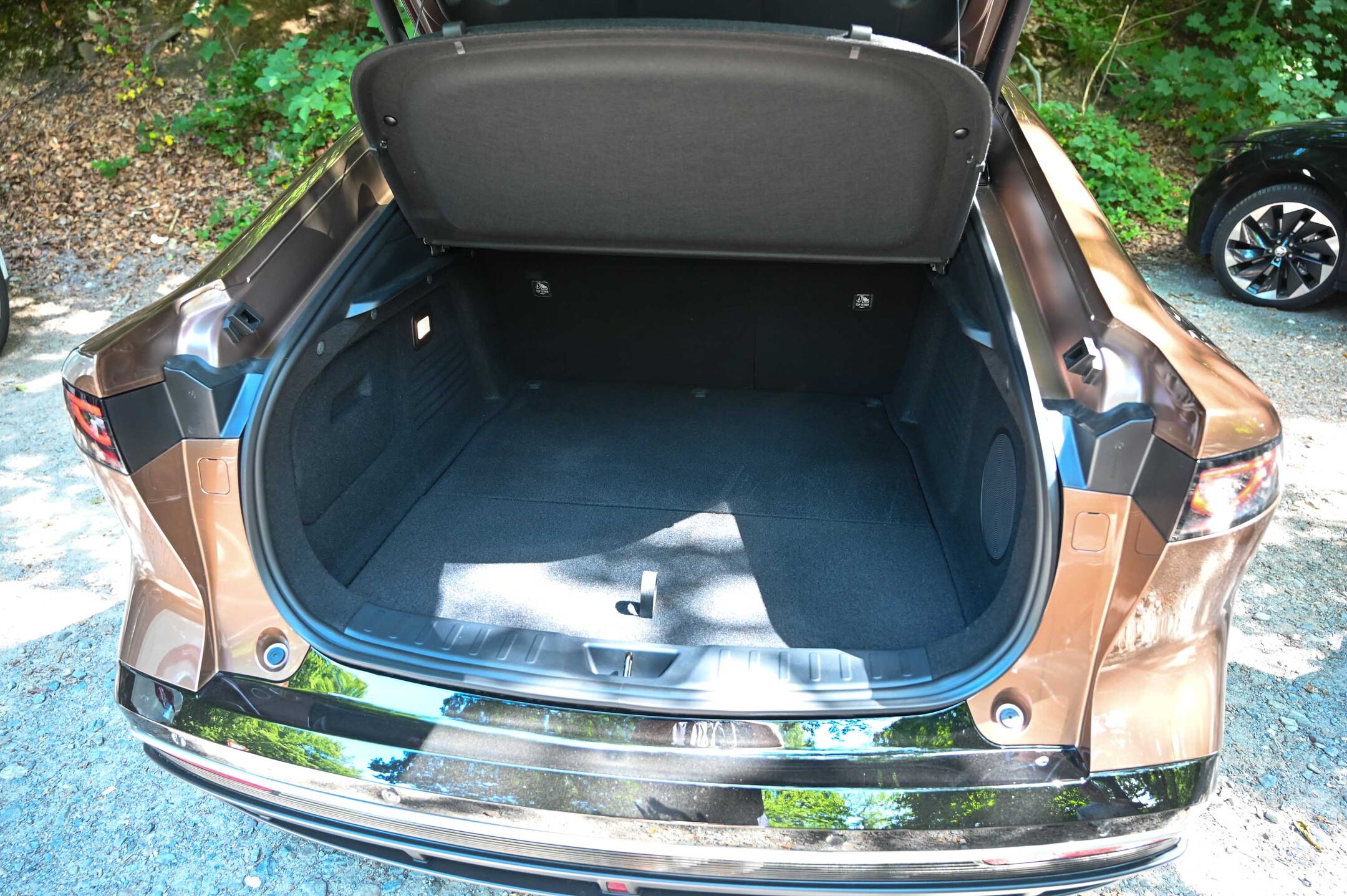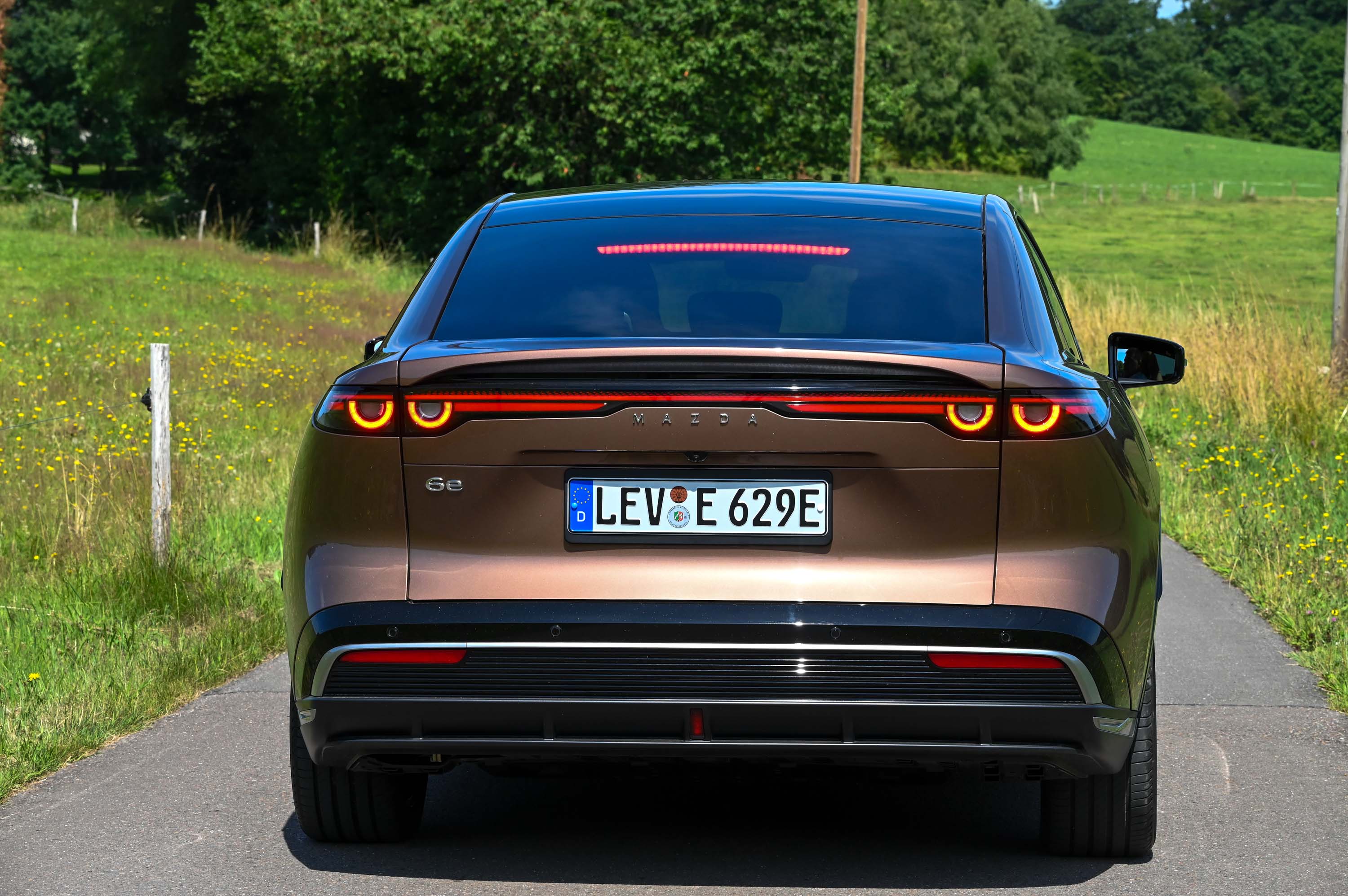 Več kot 4,9 metra dolga limuzina s prisekanim zadkom in velikimi kombilimuzinskimi prtljažnimi vrati je sploh z boka videti zelo elegantna, hkrati pa je zelo uporabna: na račun kombilimuzinskih prtljažnih vrat, ki se odpirajo skupaj z zadnjim steklom, je 466-litrski prtljažnik odlično dostopen. Prostornina prtljažnika res ni med največjimi, a je k njegovi prostornini treba prišteti še uporabnih 72 litrov lično obdelanega prtljažnika pod prednjim pokrovom, ki ima izpust za čiščenje z vodo in je v osnovi namenjen shranjevanju polnilne opreme. Pri Mazdi so velik0o pozornosti namenili razkošju potniške kabine, ki jo uokvirja kar 2,9 metra medosne razdalje. Zato se tudi zadaj sedi odlično in ob kakovostnih izbranih materialih, ki ne sledijo trendu reciklažnega pristopa za vsako ceno, ob odlični zvočni zatesnjenosti potniške kabine in ob udobnem blaženju je počutje v tem avtu odlično. Mazda 6e ima pogon zadaj in zelo uravnoteženo podvozje z večvodilno premo zadaj. Čeprav je njen vozni značaj podrejen udobju, zna odlično ohranjati začrtano smer in ob tem braniti oprijem koles; tudi na elektriko ohranja sloves dinamične vozniške limuzine. Če bo nekoč dobila še en motor in štirikolesni pogon, utegne pridobiti tudi več športnosti.