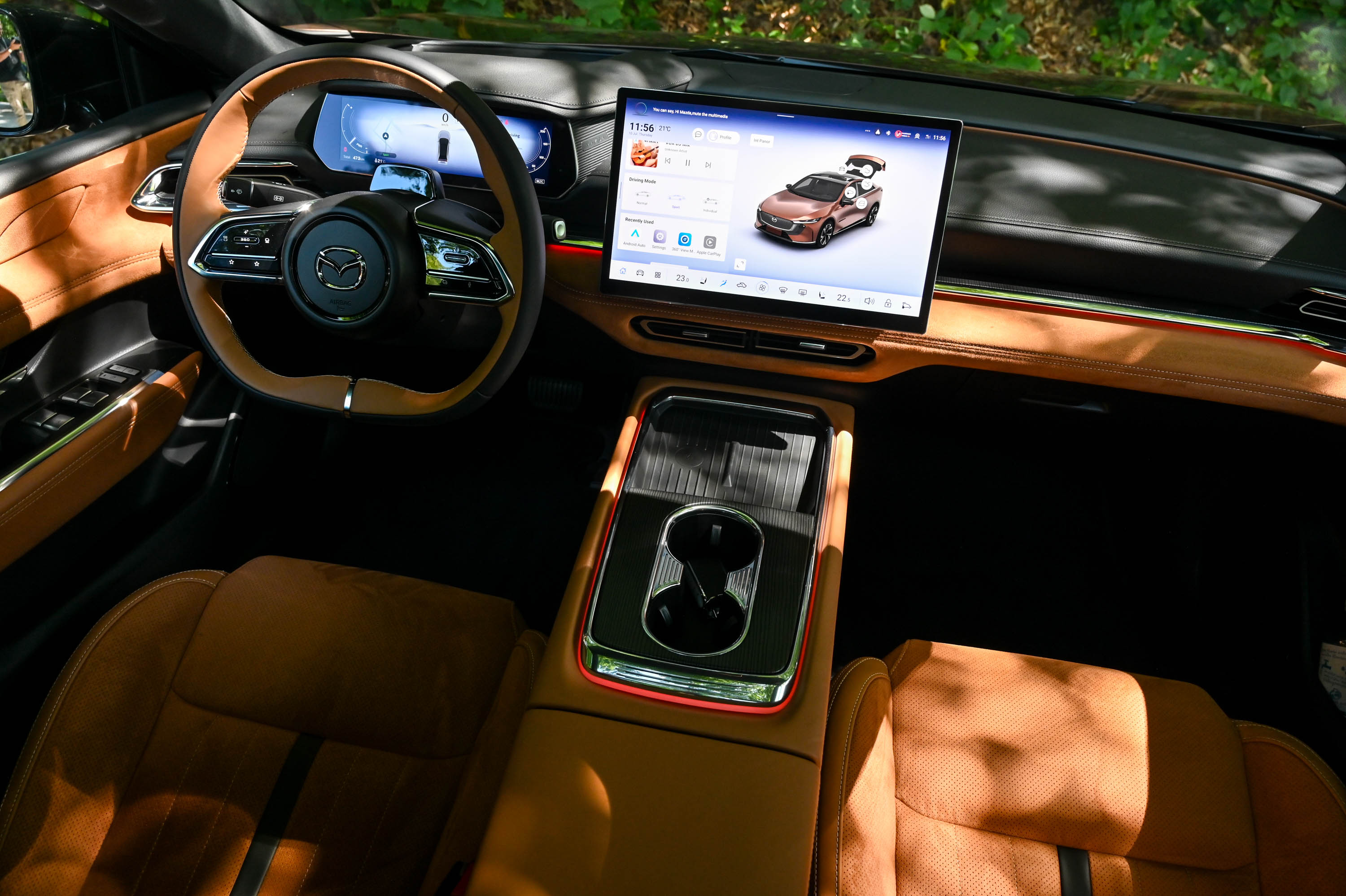 Največjo razliko pri menjavi generacije in pogona predstavlja povsem nov digitalni pristop: tu je konzervativen in samosvoj Mazdin pristop popustil trendu velikih zaslonov. Osrednji zaslon meri 14,6 palca in celotna zasnova armaturne plošče je nekakšna dobro premišljena različica tistega, kar vidimo v ostalih kitajskih avtomobilih ali v teslah. Že res, da so poskrbeli za bližnjice in za upravljanje z gestami, a na takšno povsem digitalno mazdo se bodo morali kupci še privaditi. Je pa mazda 6e postala varnejša in z dodelano uporabniško izkušnjo, kamor spada tudi Mazdina aplikacija za enostavno energetsko oskrbo na več tisoč različnih polnilnicah širom Evrope po načelu priklopi in polni.