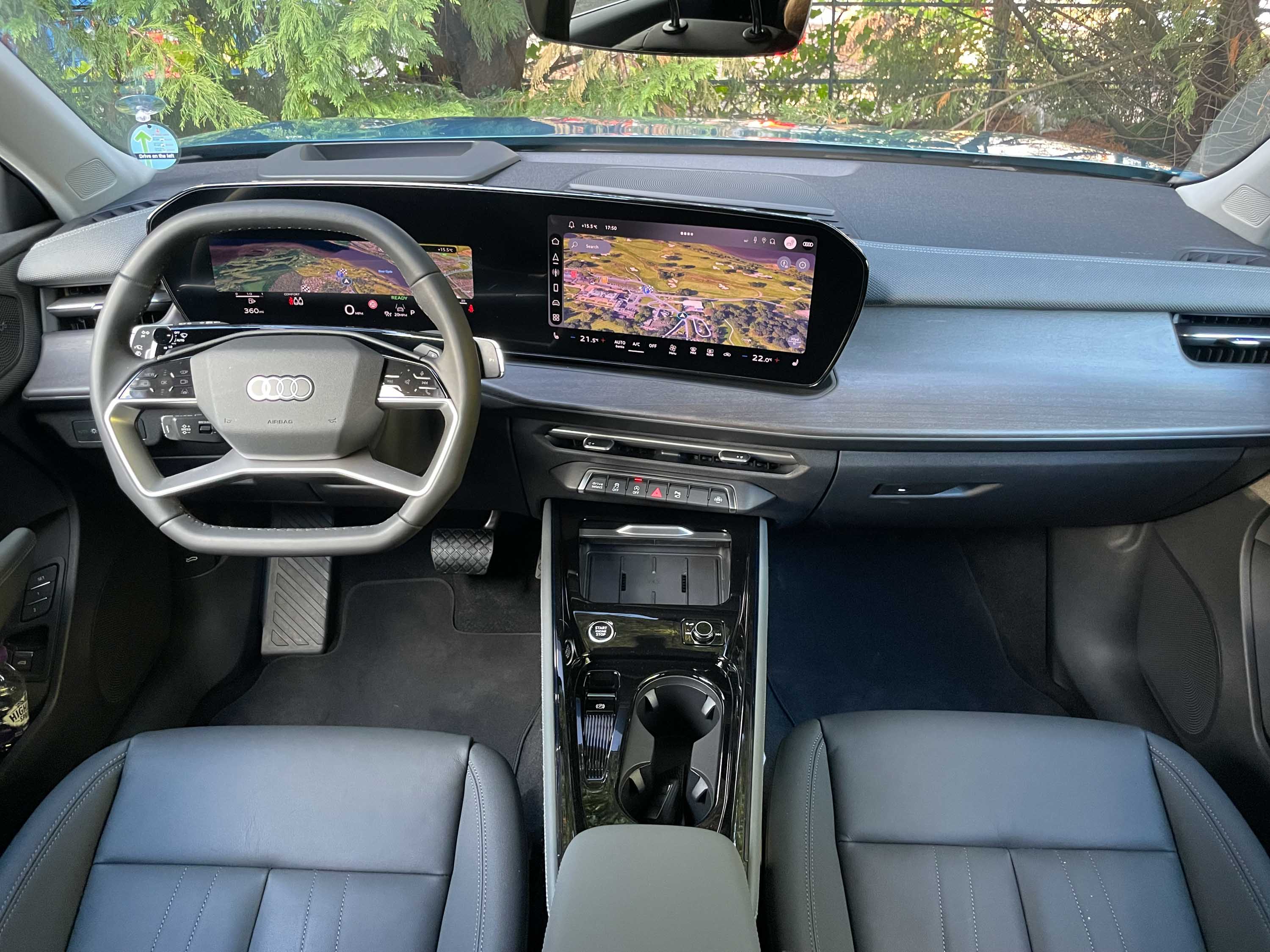 Velik korak naprej - v smeri večjih najnovejših audijev - je Q3 naredil v notranjosti, kjer je dobil panoramsko ohišje digitalnih merilnikov in zaslona multimedijskega sistema; kot pred njim že A5, Q5, Q6 in A6. Resda je v Q3 zaslon merilnikom nekaj manjši (predvsem nižji), a kar se ergonomije tiče, ne moremo novemu Q3 nič očitati, razen morda tega, da nov vmesnik, ki temelji na Androidovem operacijskem sistemu, vizualno ni tako privlačen kot v večjih audijih. Še eno veliko novost v nbotranjosti velja omeniti; tudi novi Q3 je dobil nov način upravljanja z menjalnikom in nekaterimi napravami. S široko desno obvolansko ročico zdaj upravljamo z menjalnikom, v levi obvolanski ročici pa je zdaj združeno tako upravljanje s smerniki kot z brisalniki - na prvi pogled zapleteno, a že po prvi uporabi brezhibno funkcionalno. Na sredinski konzoli, kjer ni več ročice menjalnika, je zdaj več prostora za drobnarije (in za hlajeno polnilno ploščico za induktivno polnjenje mobilnikov). Vse ostalo je na značilno visoki Audijevi ravni; tako odlična vozniška ergonomija kot tudi kakovost vgrajenih materialov in izdelave. Mimogrede, za doplačilo si lahko kupec omisli tudi dvojna stekla stranskih oken in s tem dodatno zvočno izolacijo potniškega prostora.