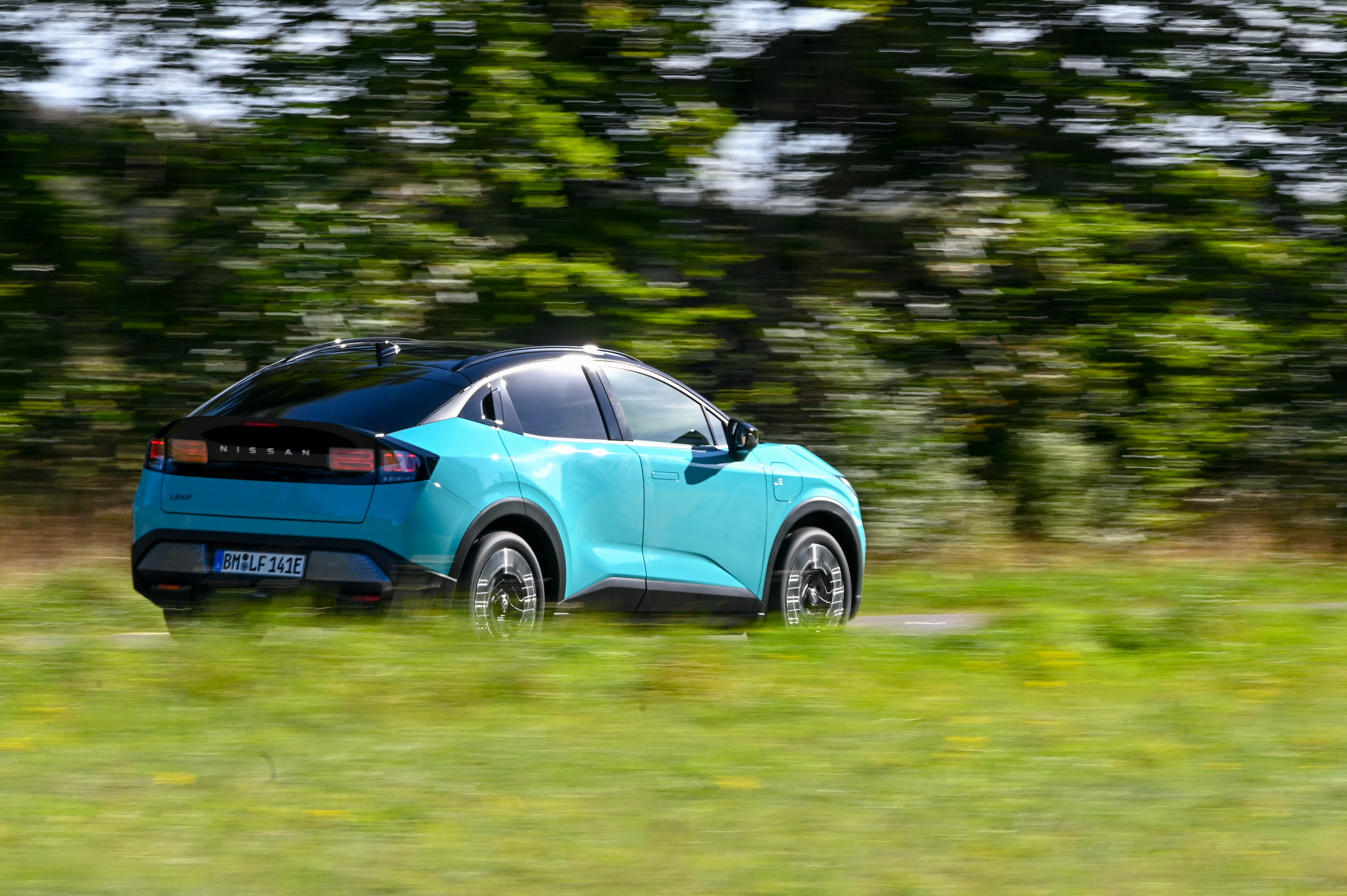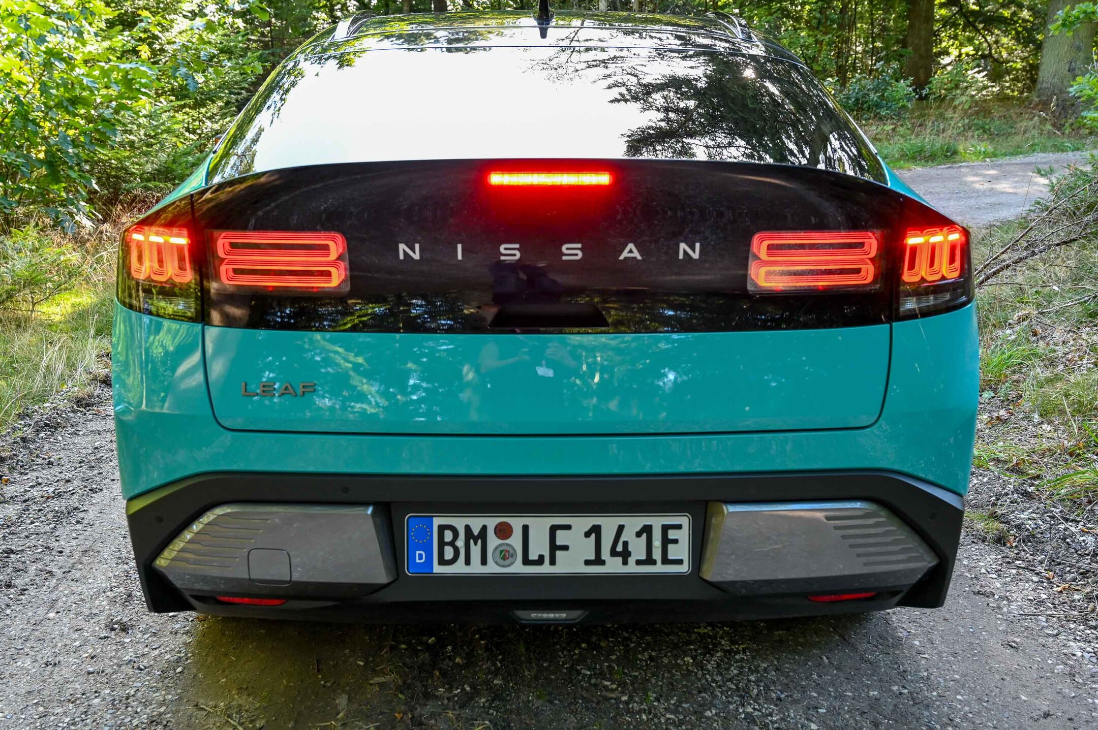 Že na prvi pogled je jasno, da so Japonci svojemu električnemu veteranu, ki je na ceste kot eden od pionirjev elektromobilnosti zapeljal pred petnajstimi leti, namenili boljšo aerodinamiko, večjo prostornost in predvsem bolj dinamičen značaj. S tem, ko je novi leaf za seboj pustil klasično kombilimuzinsko karoserijsko zasnovo in postal križanec z elegantno kupejevsko strešno linijo, je postal bolj zanimiv oziroma bolj atraktiven že na prvi pogled. Avtomobilski poznavalci vedo, da si leaf svojo novo prilagodljivo električno karoserijsko platformo CMF-EV deli z večjim električnim križancem ariyo. Pri tem ne gre samo za podobna razmerja karoserijskih površin, ampak tudi za veliko boljšo aerodinamiko (količnik upora je 0,25), ki zagotavlja učinkovitejši pretok zraka pri višjih hitrostih ter neposredno vpliva na doseg in porabo elektrike. Po trditvah Nissanovih inženirjev to pomeni, da naj bi leafov doseg pri konstantni vožnji z največjo dovoljeno avtocestno hitrostjo 130 km/h presegal 330 kilometrov. Ob tem poudarjajo, da je z večjo učinkovitostjo in hitrim polnjenjem s 150-kilovatnim DC polnilnikom mogoče 800-kilometrsko dnevno etapo prevoziti v osmih urah, kar je časovno že bolj primerljiv rezultat v primerjavi z motorjem z notranjim zgorevanjem.
