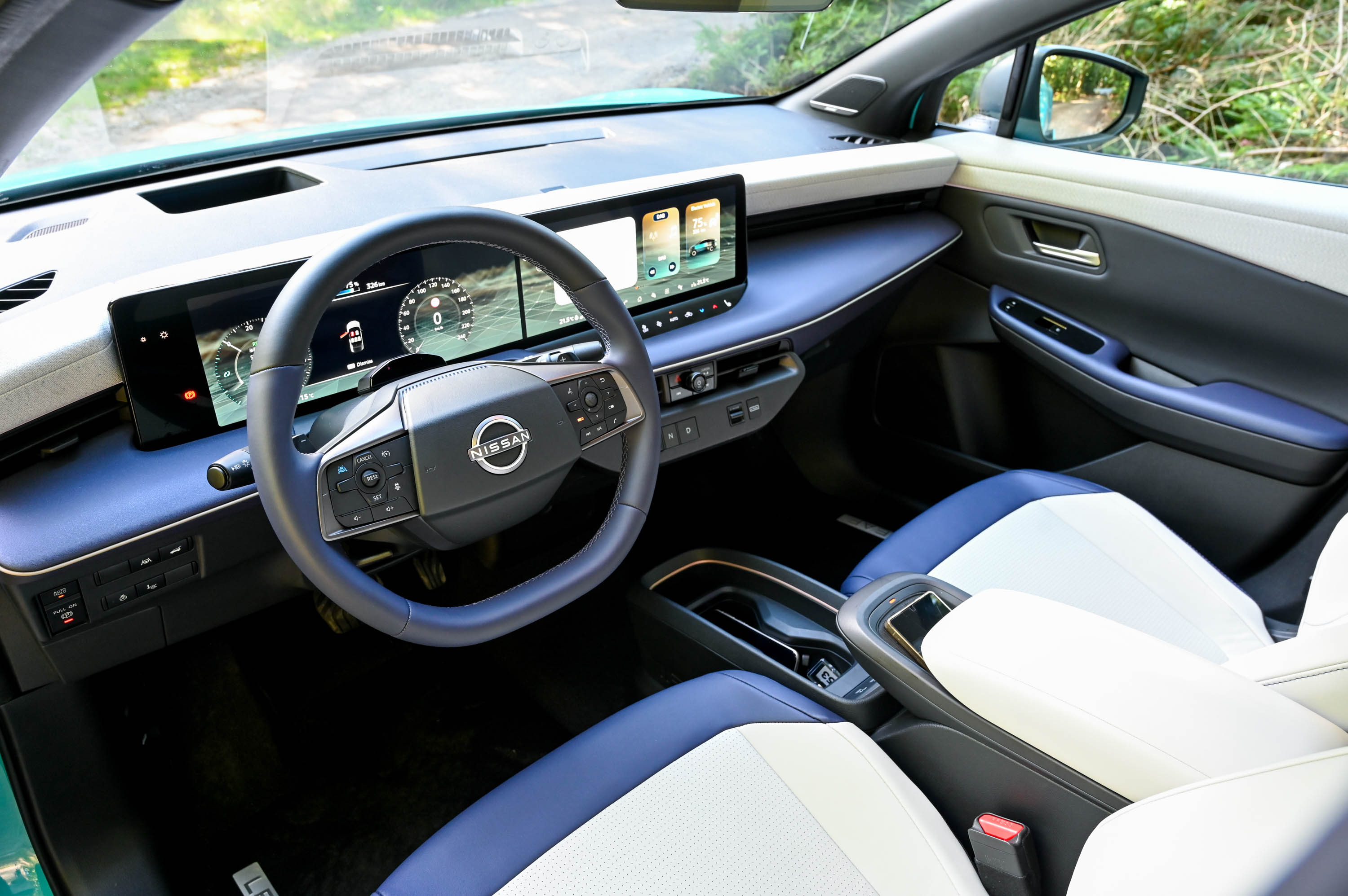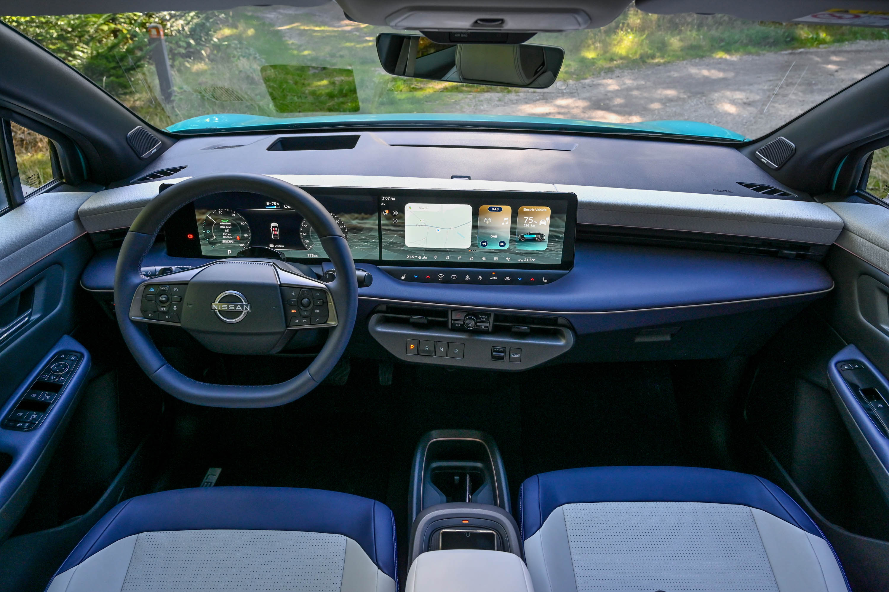 Voznikov prostor obdaja digitalna armaturna plošča, ki v leafa prinaša kopico digitalnih storitev in informacij in ki močno spominja na notranjost ariye - po obliki in kakovosti materialov. Aktivni tempomat je nadgrajen s funkcijo navi-link; ta na željo voznika skrbi za samodejno prilagoditev hitrosti ovinkom in spreminjajočim se omejitvam. Ob vsej digitalizaciji pohvalo zaslužijo orodna vrstica za upravljanje klimatske naprave in dodatna stikala za uravnavanje voznih programov ter glasnosti glasbe. Njegovo zalogo elektrike po novem preko vtičnice V2L lahko lastnik uporablja tudi za pogon zunanjih porabnikov, na primer električnega žara, polnjenje električnega kolesa … Zunanji porabniki lahko iz leafove baterije dobijo največ 3,6 kW moči.