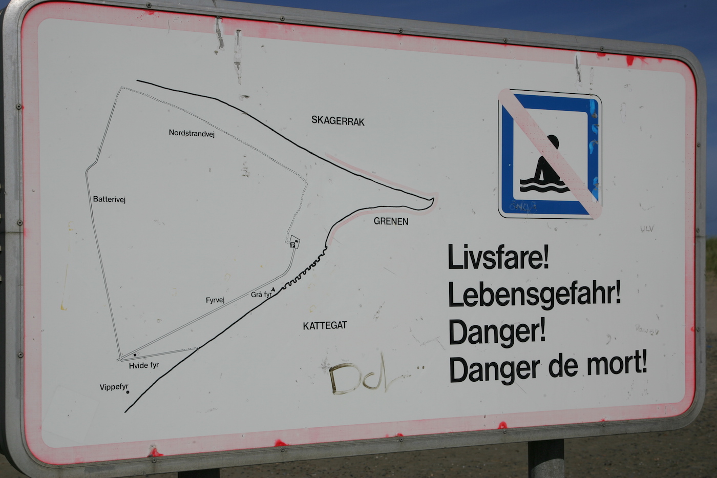 Skagen, najznamenitejše in najslikovitejše mestece na skrajnem severu Danske, je le kakšne tri kilometre stran od rta Grenen. Tudi nanj z neverjetno močjo delujejo naravne sile. Grenen je peščina, ki nastaja iz peska, ki ga prinašata dva morska tokova. Eden je iz Severnega morja oziroma iz preliva Skagerak, ki Dansko loči od Norveške, drugi izvira iz preliva med Dansko in Švedsko, iz Kattegata, oziroma Baltskega morja. Tokova sta tako močna, da se oblika Grenena menja skoraj dnevno. Tudi zaradi takšnih sil je na plažah Grenena kopanje prepovedano!