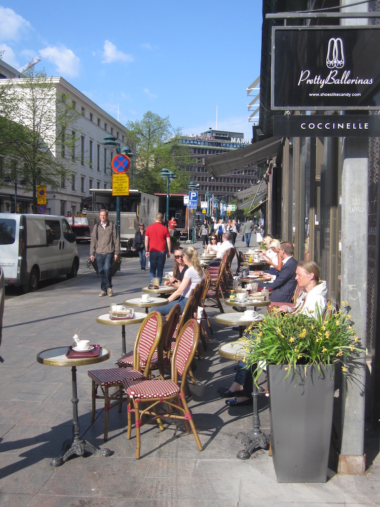 Dogajanje v Helsinkih je zelo umirjeno, urejeno, nikjer ni čutiti nobenega hitenja, kaj šele kričanja. Finci slovijo kot introvertirani ljudje in šele ob kozarcu pijače se jim malce razveže jezik. A alkoholne pijače so drage, zelo drage. Zgolj primer: na letališču boste težko dobili pol litra točenega piva za manj kot deset evrov, zato se Finci sprostijo le ob koncu tedna – praviloma ob petkih. Tudi cene hrane so visoke, bistveno višje kot pri nas. Dokaj poceni pa je že omenjena železniška povezava z letališčem (5,50 evra), pa tudi dobro urejen mestni promet – tudi s tramvaji.