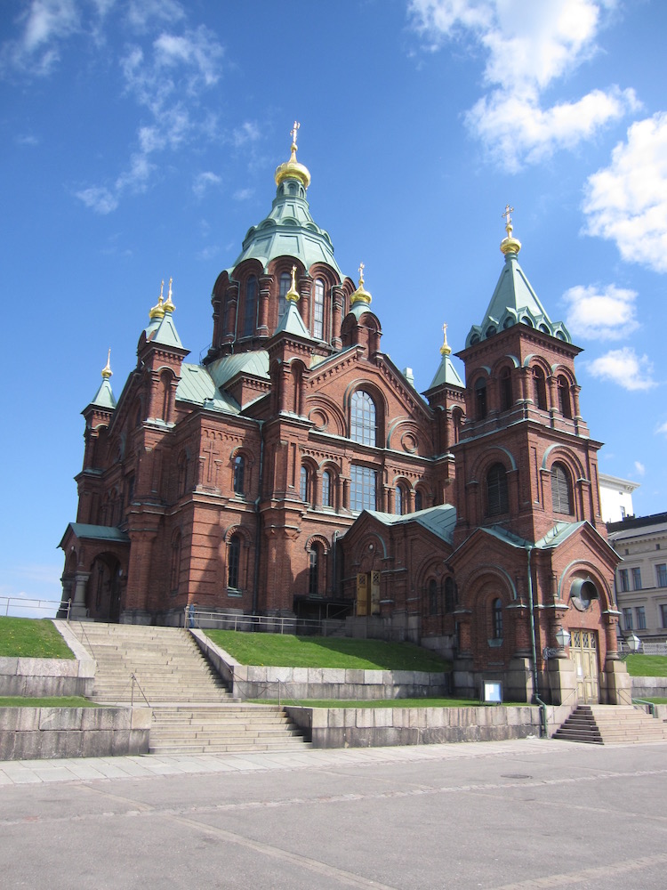 Finska je po površini kar 15 krat večja od Slovenije, število njenih prebivalcev pa s 5,5 milijona ne dosega niti trikratnika prebivalcev Slovenije. Helsinki imajo uradno nekaj več kot pol milijona prebivalcev, celotna regija z okoliškimi mesti trikrat toliko. V Vantai, enem izmed okoliških mest, je tudi helsinško letališče, ki je s cestami zelo dobro povezano s centrom Helsinkov, pred kratkim pa so odprli tudi krožno železniško povezavo osrednje helsinške železniške postaje z letališčem, kjer so železniško postajo zgradili globoko pod zemljo. Udoben, sodobno urejen in tih vlak vozi do mesta (in obratno) slabe ali dobre pol ure – odvisno, katero smer vožnje izberete, pri čemer je zanimivo, da z železniške postaje vedno odpeljeta (in pripeljeta) sočasno dva vlaka – vsak v svojo smer, letališče pa je le vmesna postaja. Napisi na vseh postajah so dvojezični, kajti poleg finščine, ki sodi v skupino ugrofinskih jezikov, je uradni jezik na Finskem tudi švedščina, pa čeprav jo uporablja le 6 odstotkov ljudi. To izhaja iz zgodovine, kajti Finska je bila dolgo pod švedsko vladavino, ki se je prek finskega ozemlja širila proti Rusiji, kar pa tej ni bilo po godu in je v začetku 19. stoletja zasedla Finsko in si jo podredila. Šele po 1. svetovni vojni je Finska postala samostojna država. Prav to prepletanje vladavine je vidno tudi v Helsinkih, pa tudi drugod na Finskem. Eden osrednjih sakralnih objektov v Helsinkih je namreč pravoslavna katedrala Uspenski na hribčku nad pristaniščem, zgrajena iz opeke, v notranjosti pa jo krasijo številne ikone. Od katedrale Uspenski je dobro vidna osrednja kupola osrednje helsinške katedrale, ki je središče protestantskih vernikov, ki so na Finskem v večini. Izjemno zanimiva je tudi – prav tako protestantska – cerkev Tempeliaukio, ker je v celoti zgrajena pod zemljo oziroma velikim granitnim blokom, odlikuje pa se z izjemno akustiko, zato v njej pogosto prirejajo razne koncerte.