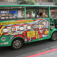 Nepopisna gneča na ulicah je nekakšna rdeča nit vseh predelov Manile. Na njih se gnetejo vozila vseh mogočih znamk in starosti, poseben pečat pa jim dajejo jeepneyi. To so nekakšni križanci med kamioni in avtobusi, katerih karoserije že desetletja izdelujejo v delavnicah manjših obrtnikov. Prvotna vozila so začeli izdelovati po 2. svetovni vojni, ko so za javni prevoz uporabljali edino, kar je ostalo po vojnem uničenju: predelana ameriška vojaška vozila jeep (Willys in Ford) – po njih so tudi dobili ime. Pravzaprav gre za skovanko iz imena jeep in jitney (majhen avtobus). Tovrstna vozila so danes videti, kot da prihajajo iz drugega časa in sveta. Čeprav jih izdelujejo različni manjši izdelovalci, so prepoznavni že od daleč predvsem po škatlasti obliki razmeroma nizke karoserije in živahnih poslikavah, ki krasijo zunanjost in notranjost.