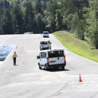 Višje težišče, večja masa, slabše sposobnosti zaviranja in malce drugačne vozne lastnosti zahtevajo tudi malce drugačne reakcije voznika, ko se znajde v nevarni prometni situaciji. Te so udeleženci tečaja lahko preskusili na namenskih površinah poligona na Vranskem; naučili so se zavirati s polno močjo, se izogibati oviram na cesti in pravočasno prepoznati ter se odzvati na podkrmarjenje in prekrmarjenje svojega kombija.