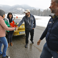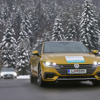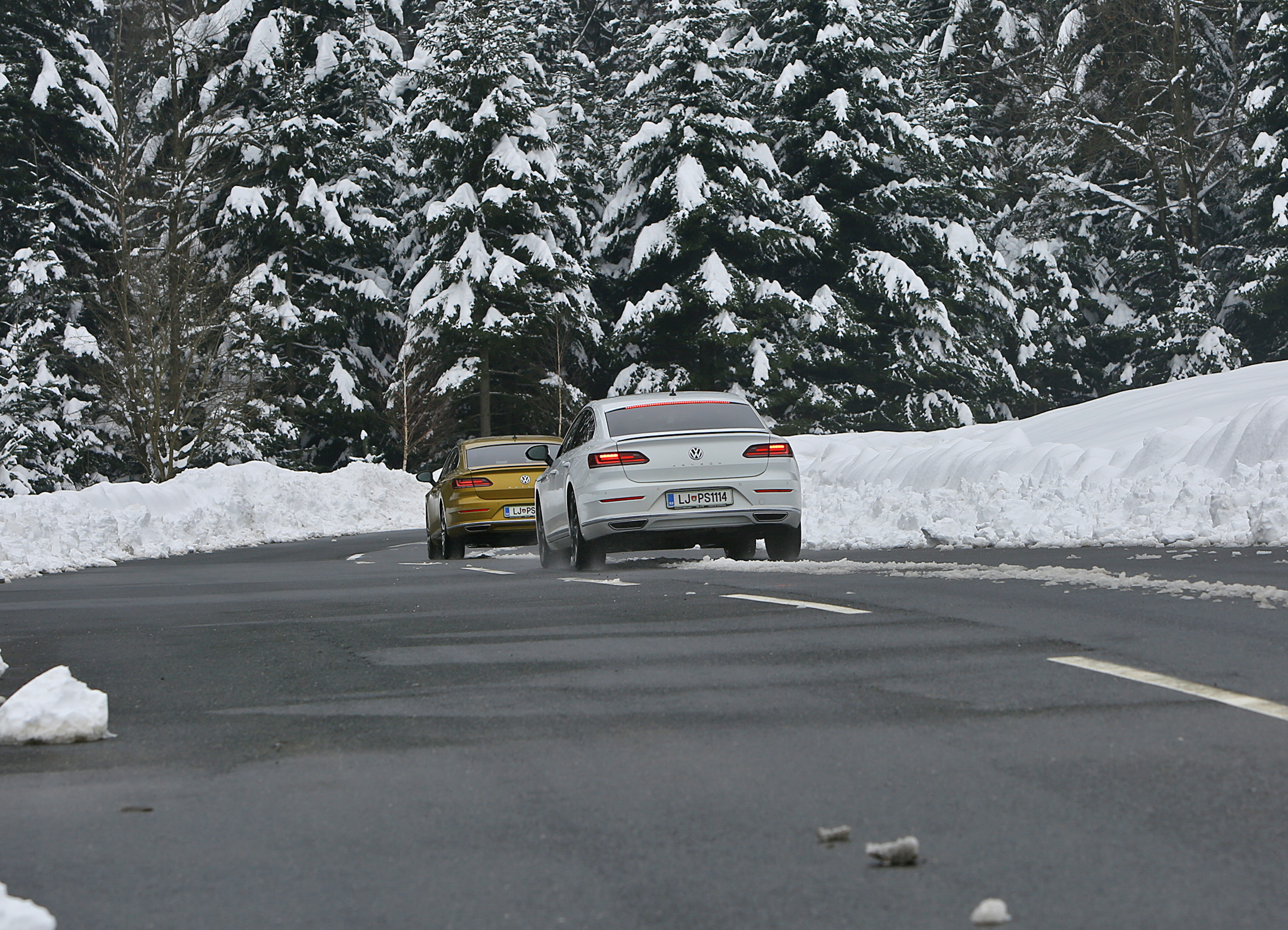 V treh dneh smo z vsakim od udeležencev izpeljali en test, zasnovan po realnem scenariju s slovenskih cest. Prvi test smo zasnovali tako, da je eden od arteonov z vključenim radarskim tempomatom sledil drugemu s hitrostjo 80 km/h po ravnini in prek prevoja na južnem delu AMZS poligona, takšno konfiguracijo in topografijo cest pa pogosto srečamo na naših cestah. Zaradi vzpona in prevoja je drugi avto izgubil stik s spredaj vozečim in samodejno pospešil, za prevojem pa je sledilo presenečenje – prvi avto je začel močno zavirati, na kar se je moral s samodejnim zaviranjem odločno odzvati tudi drugi avto. Udeleženci testa, ki so sedeli ob testnem vozniku, scenarija seveda niso poznali, zato je takšen potek dogajanja povzročil presenečenje in celo šok – še zlasti zato, ker sta testna voznika udeležencem prej povedala, da avto vozi sam, brez vpliva voznika.