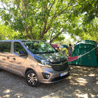 Oplov vivaro tourer je žlahtno opremljen, za 40 cm podaljšan potniški kombi s potovalnim tlorisom sedmih usnjenih sedežev (2+2+3) v treh vrstah in celim kubičnim metrom velikim prtljažnikom. S svojo prilagodljivo notranjostjo, 220 voltno vtičnico (300 W), velikimi drsnimi vrati na obeh bokih in odlično preglednostjo je zelo dobra izbira za daljša družinska potovanja z veliko prtljage. Podvozje je dovolj uglajeno, zmogljivosti na ravni osebnega avtomobila, le učinkovitost klimatske naprave bi glede na veliko prostornino lahko bila prepričljivejša. Čisto petico si - predvsem za varčnost in prožnost - zasluži 1,6-litrski biturbo dizelski motor. 310 Nm navora je na voljo že pri vsega 1250 vrtljajih, 107 kW moči pa je tudi ob polno naloženem 5,4 metra dolgem potovalniku povsem dovolj za lahkotno vožnjo na vsaki cesti. 710 km jadranske magistrale smo prekrižarili s povprečno porabo 7,2 litra na 100 km. Testno povprečje po več kot 1800 prevoženih kilometrih pa se je ustavilo pri porabi 7,8 litra na 100 km. Vivaro tourer je z malce iznajdljivost lahko pravi mobilni bazni tabor, ki za 40 tisočakov sicer še ni bivalnik, je pa blizu. Dovolj olikan je tudi za VIP prevoze.