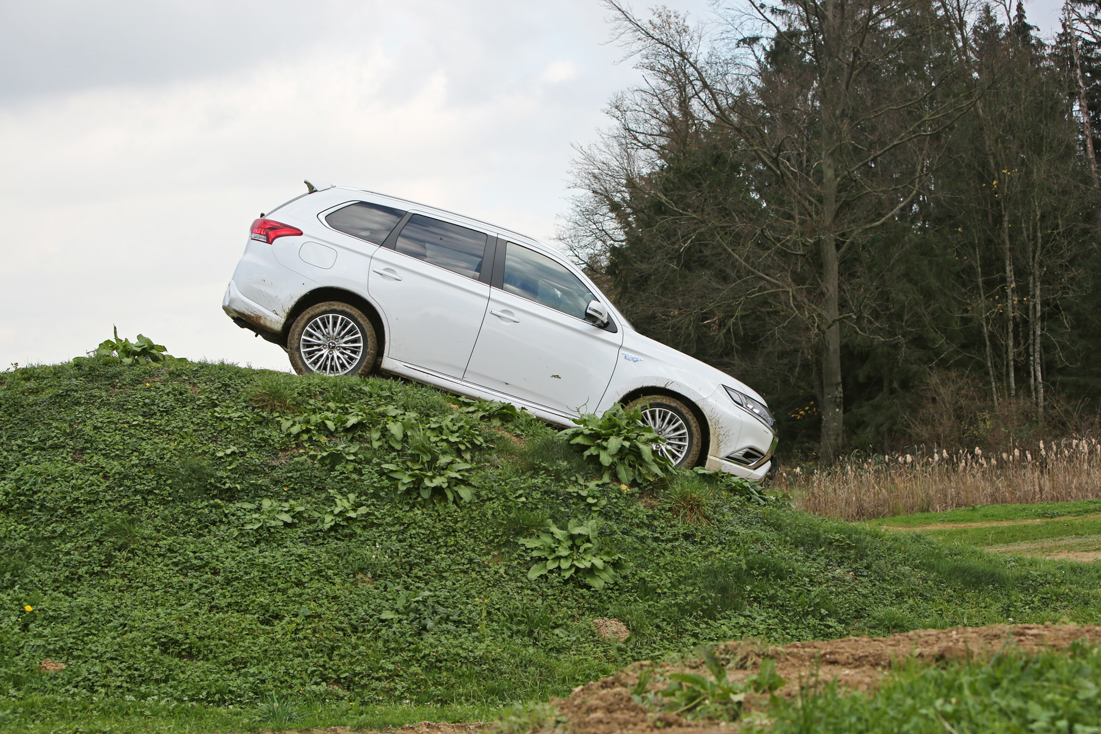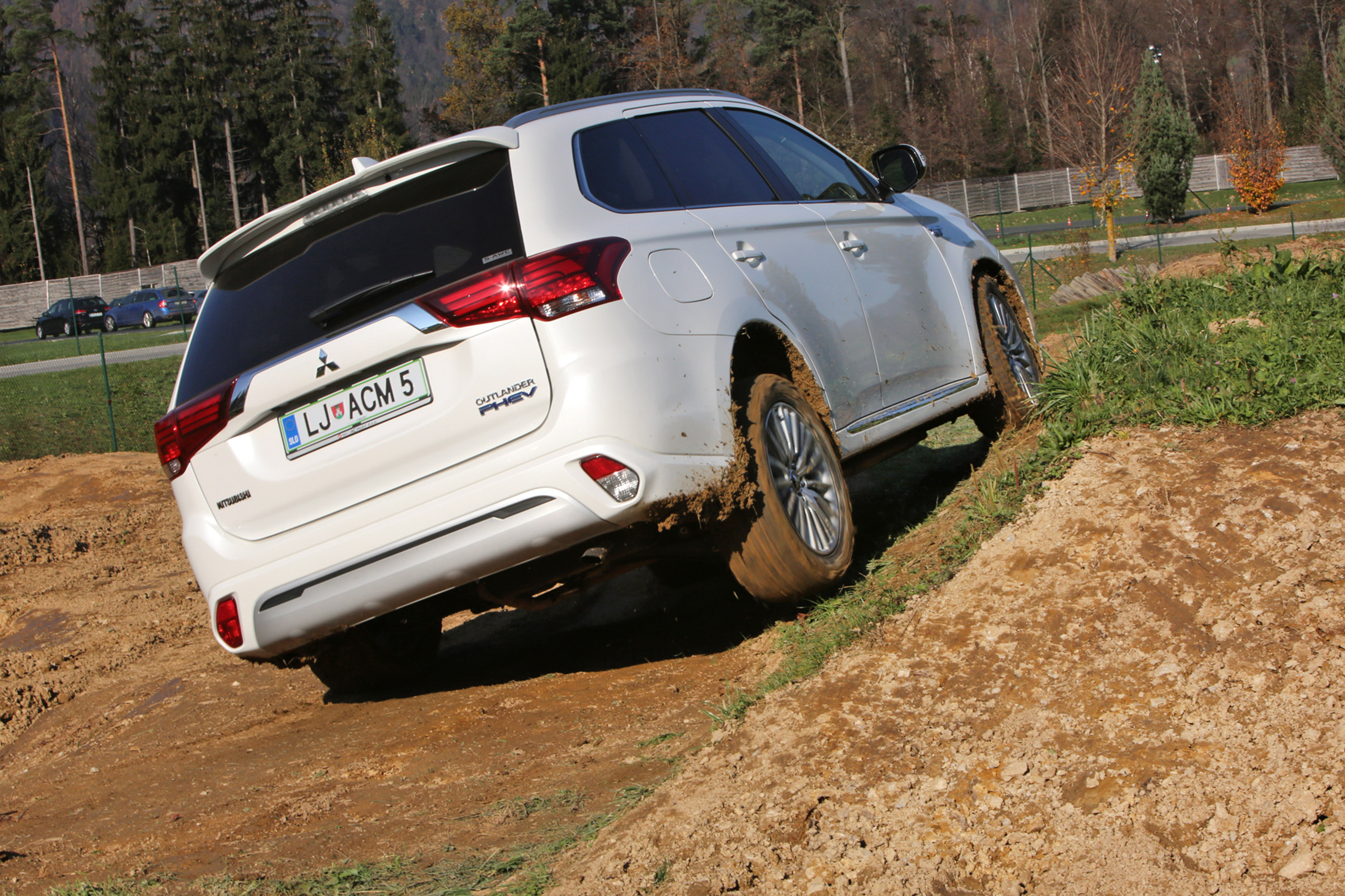 Tudi zato smo našo hibridno druženje zasovali kot zanimivo praktično delavnico. Udeleženci dogodka so se na primer lahko kot sopotniki zapeljali po terenskem poligonu, kjer jim je inštruktor terenske vožnje Janez Marolt pokazal, kaj vse zmore hibridni outlander. Najbolj so bili navdušeni nad dejstvom, da z električnim motorjem za vsako pogonsko os hibridni outlander lahko tudi povsem neslišno - zgolj na elektriko - premaga blatne vzpone, se okopa v globoki luži ali nagnjen obvozi blaten grič.