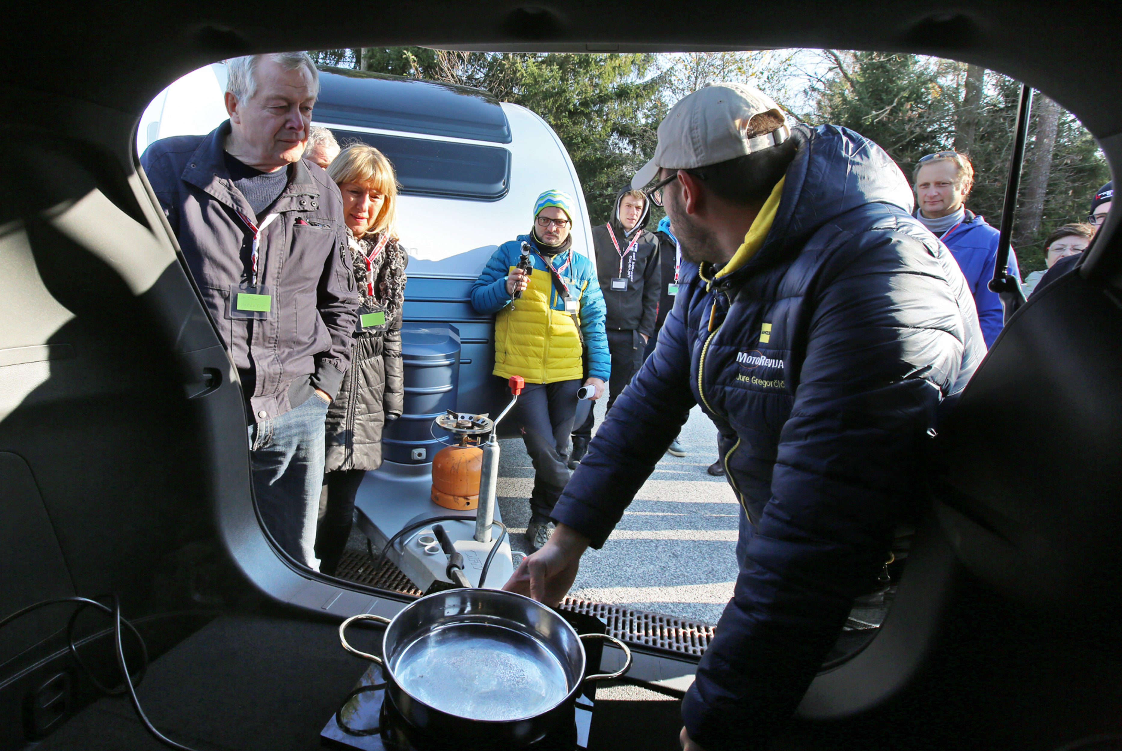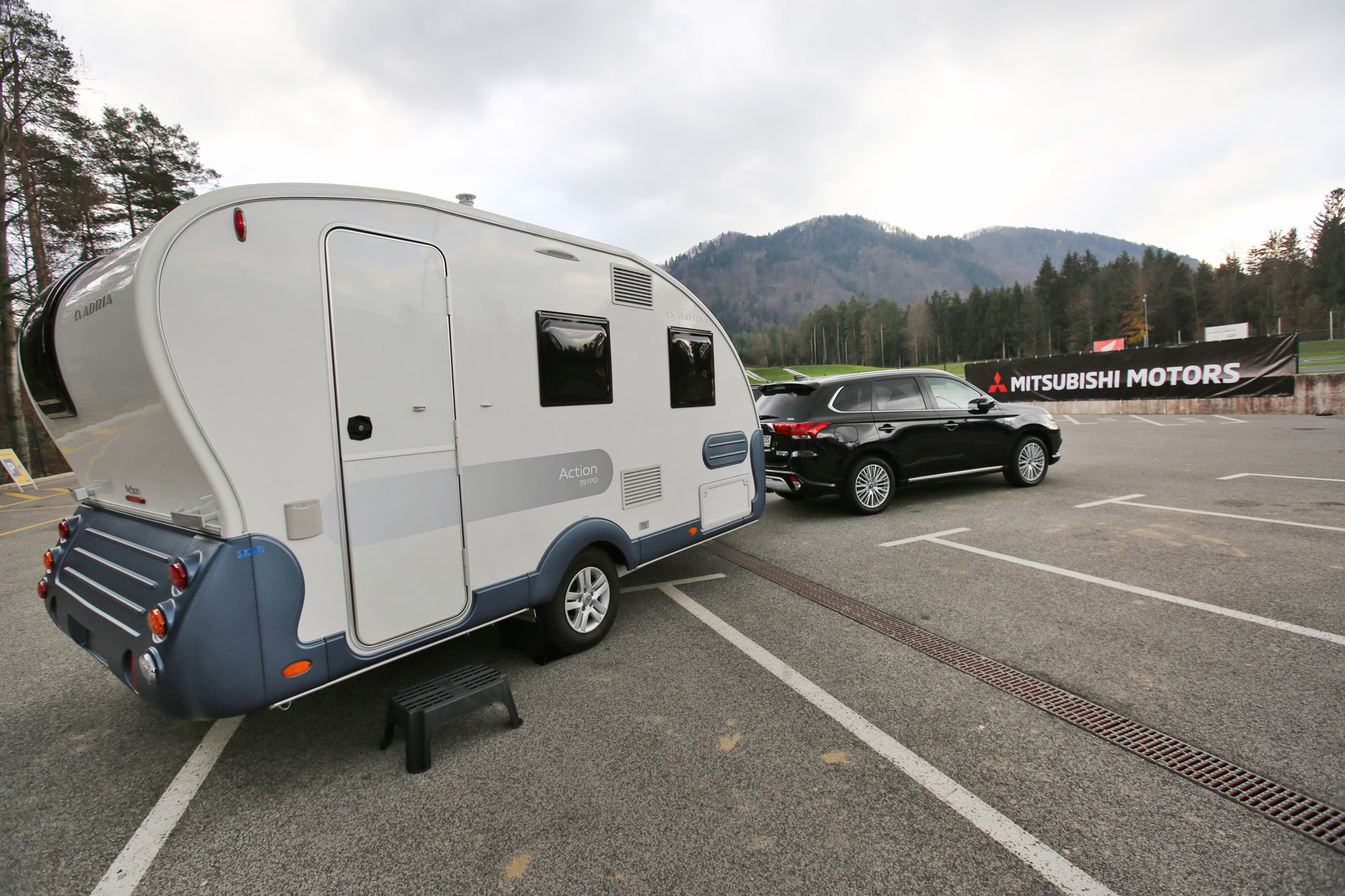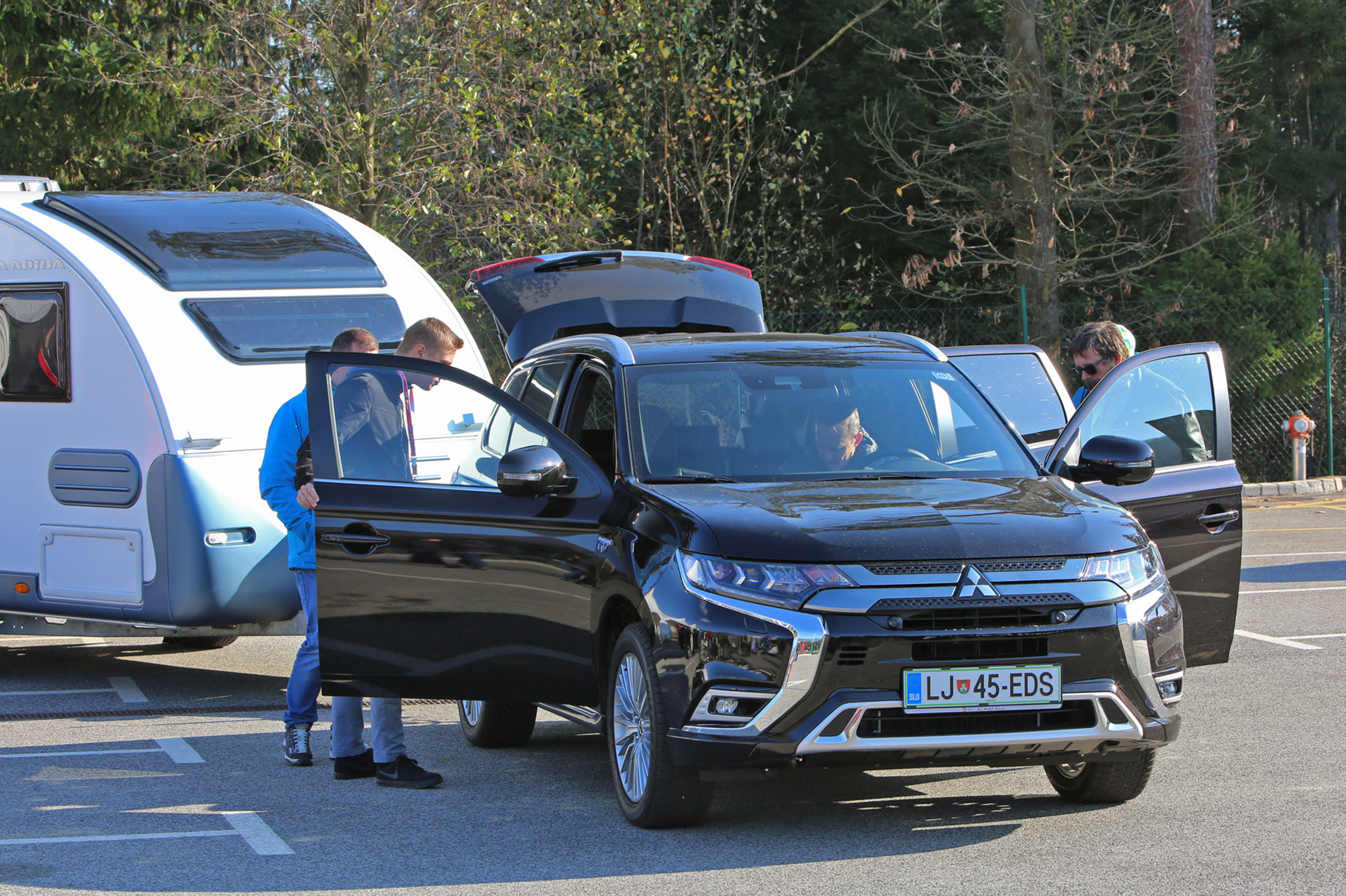 Kako koristna zna biti takšna zaloga energije, smo udeležencem dogodka prikazali v bivalni prikolici, ki so nam jo posodili v novomeški Adrii Mobil; na outlanderja pripeta bivalna prikolica energijo za napajanje osvetljave in drugih naprav dobiva iz priklopne avtomobilske vtičnice, energije pa je dovolj, da smo med dopustom lahko kar nekaj časa lahko povsem neodvisni od električnih vtičnic v avtokampih. Smo pa Adriino bivalno prikolico izkoristili še za en preskus; outlander jo je zgolj na električni pogon brez težav potegnil po strmem peščenem klancu, posejanim s terenskimi voznimi pastmi.