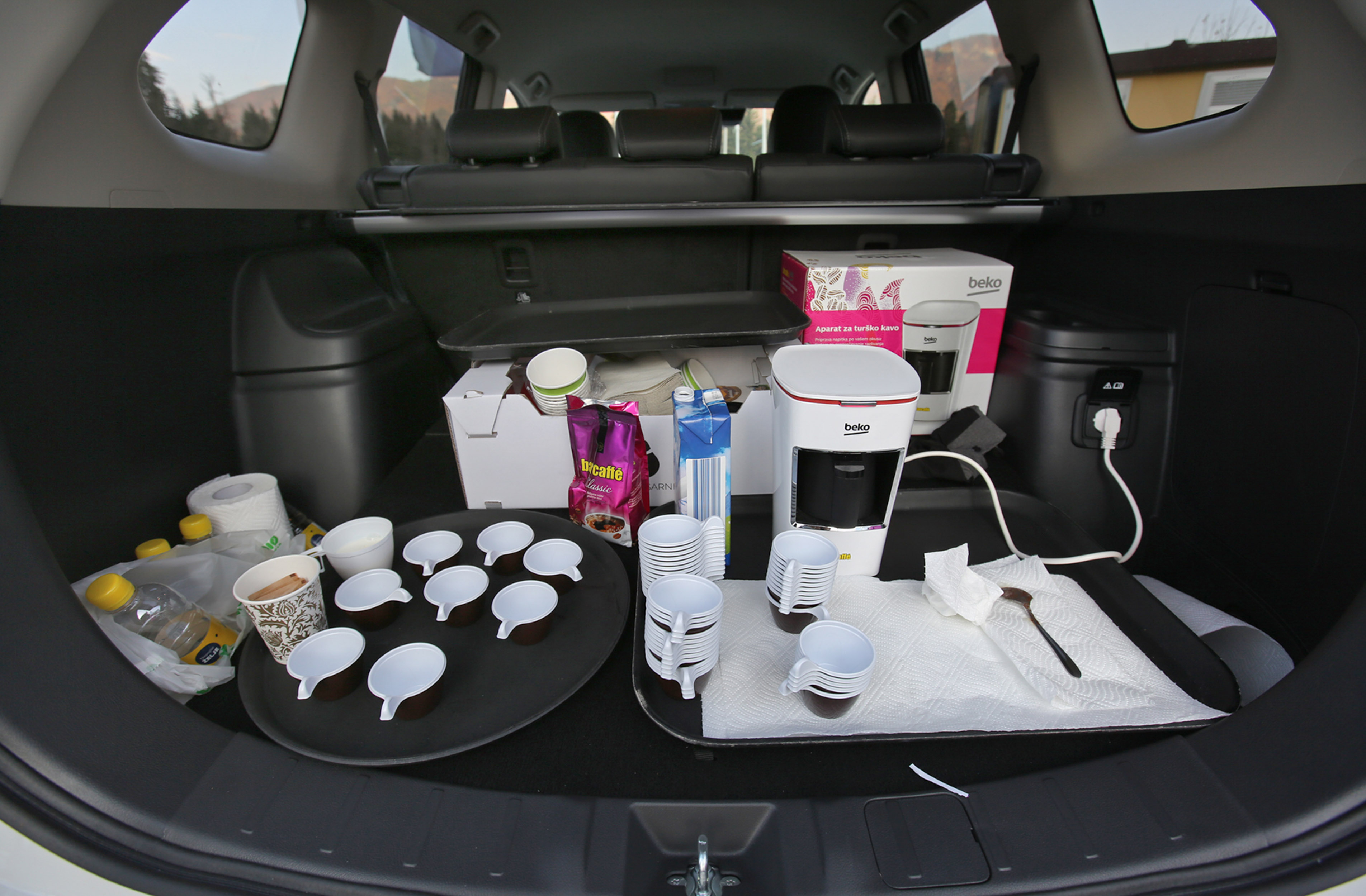Zaloga električne energije v outlanderjevih litij-ionskih akumulatorjih pa ni namenjena le pogonu. Mitsubishi outlander je eden redkih tovrstnih avtomobilov, pri katerih so si snovalci avto zamislili tudi v kakšni drugi vlogi. Z vgrajenim zmogljivim pretvornikom (inverterjem) in 220-voltno vtičnico je outlander lahko tudi vir energije za povsem neavtomobilske opravke. Na primer za kuhanje kave: predstavniki podjetja AC Mobil, ki pri nas zastopa Mitsubishi, so v prtljažnik hibridnega outlanderja postavili pravi kavni avtomat in z njim skuhali kavo za prav vse udeležence dogodka. Sklop akumulatorjev z zmogljivostjo 13,8 kWh bi lahko poganjal še veliko več kavnih avtomatov - ali pa katerokoli drugo električno napravo.