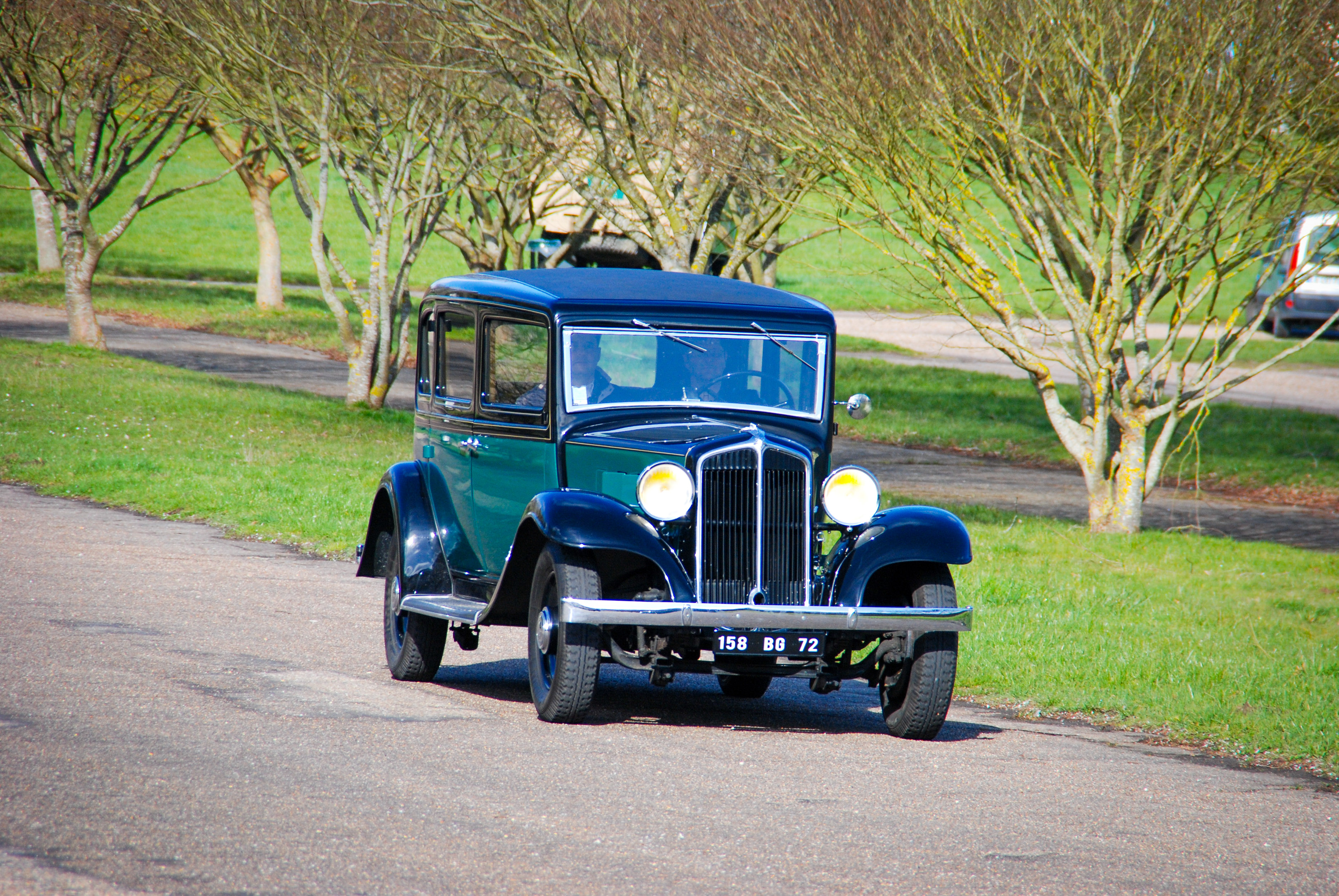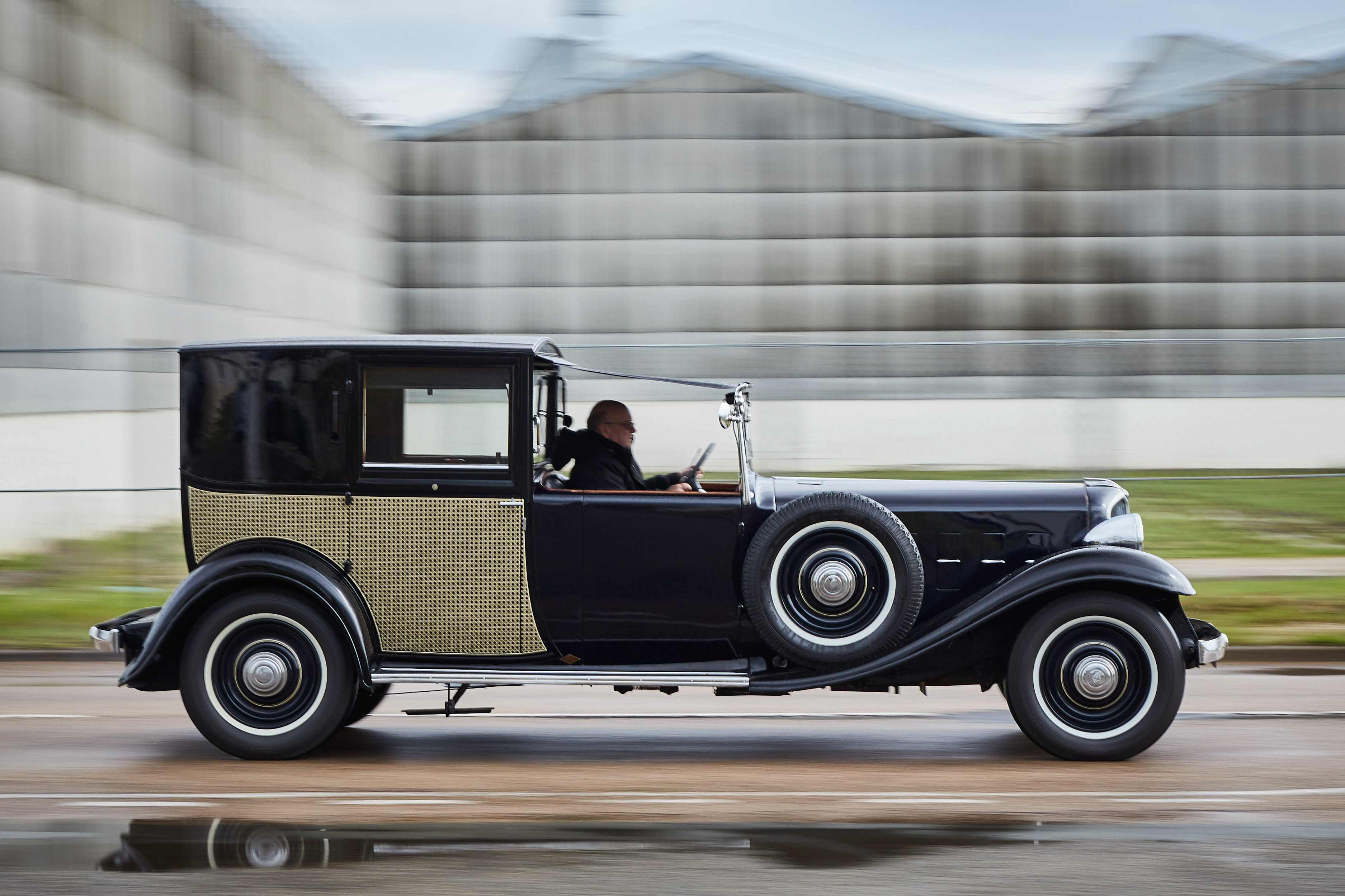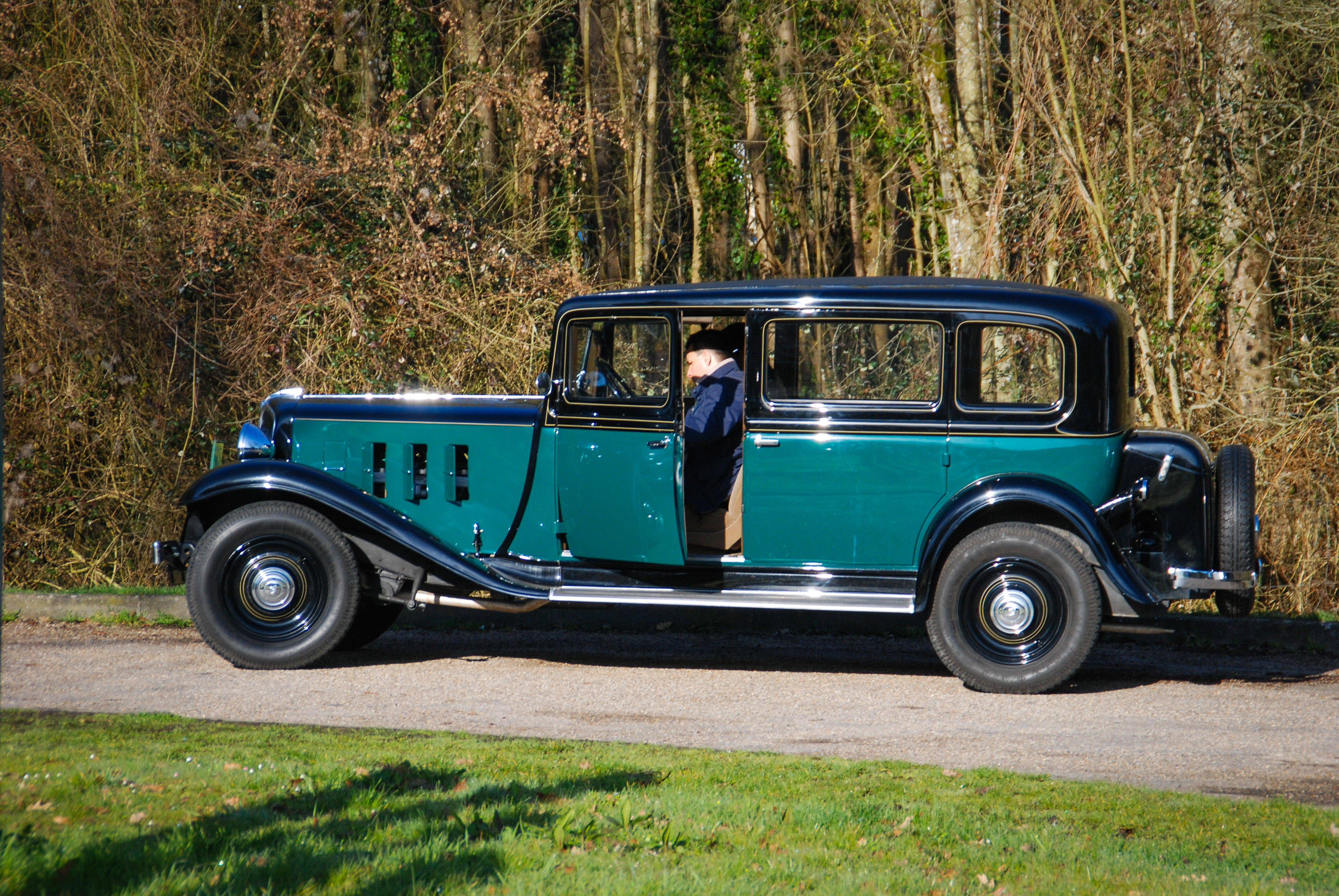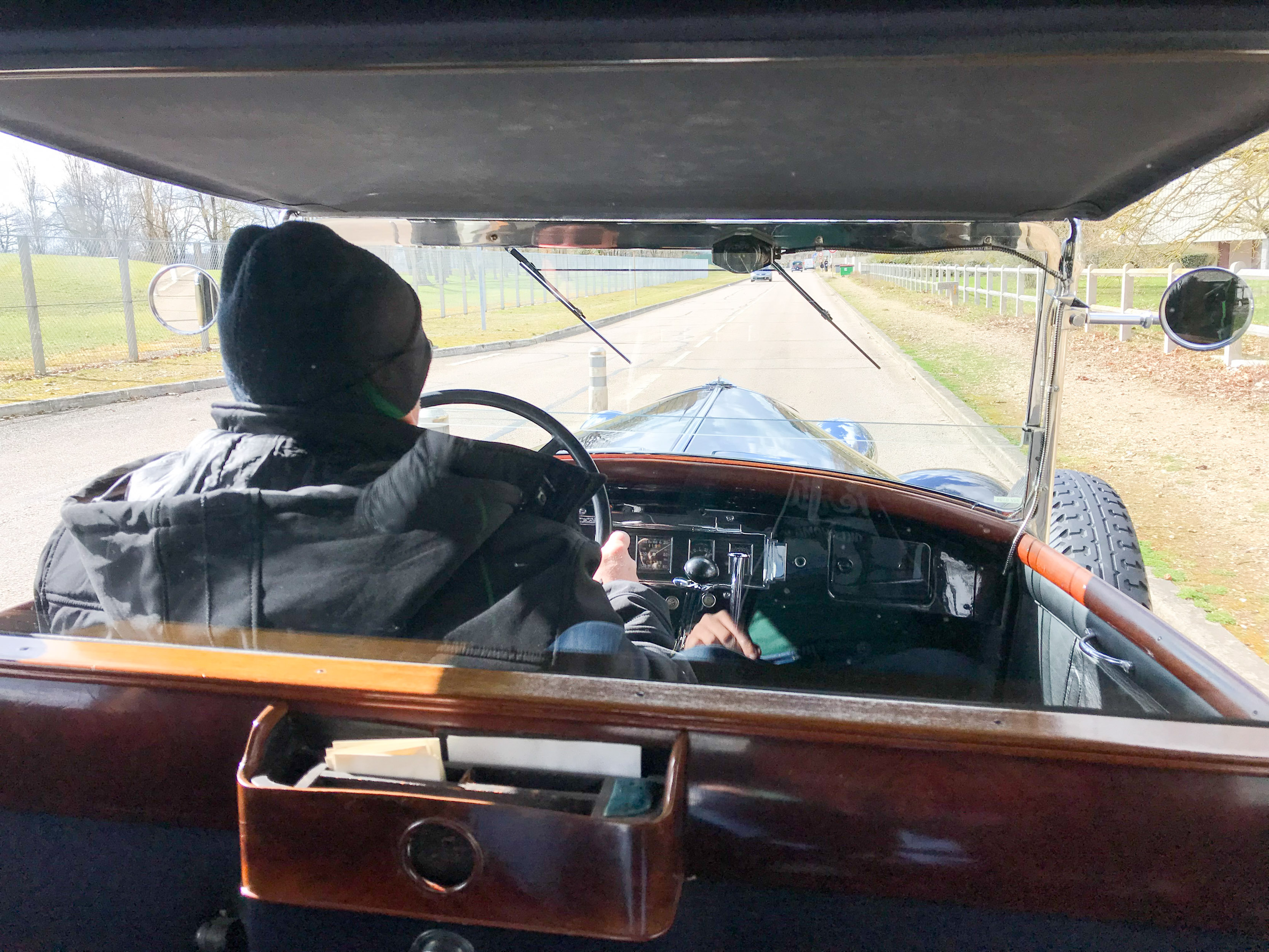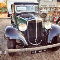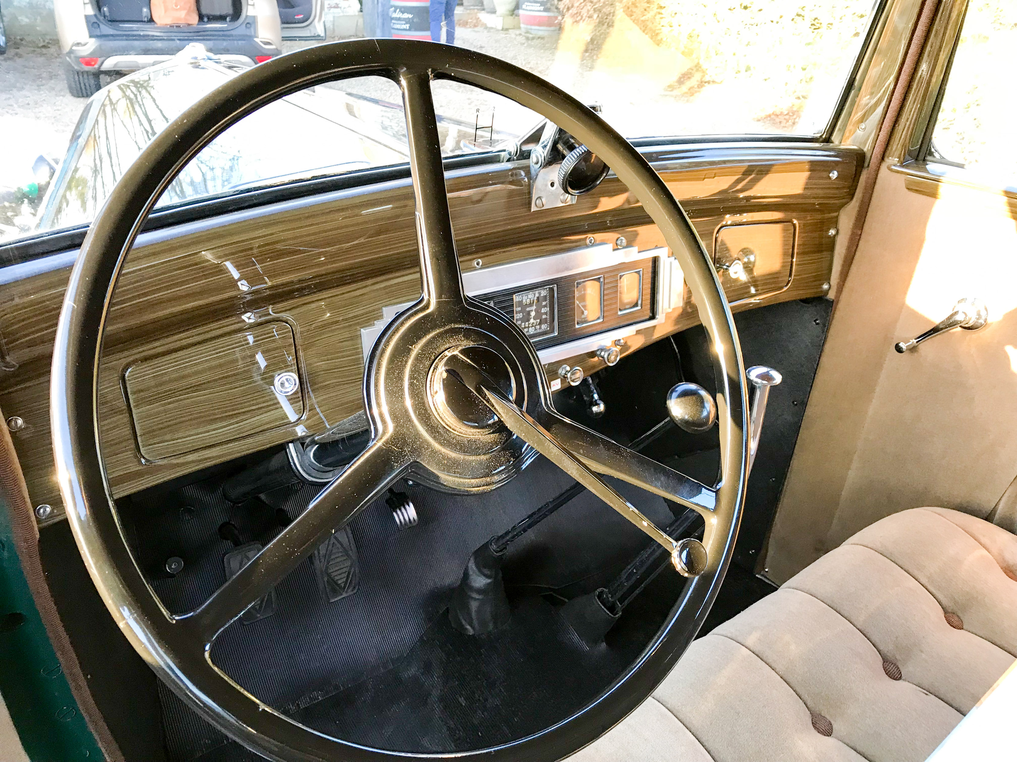 V trenutku se znajdem v norih tridesetih, pa ne mojih, ampak tistih med obema svetovnima vojnama. V rokah imam skoraj pet metrov dolge, 1,7 tone težke, glasne in nadvse romantične avtomobilske zgodovine. Previdno spuščam čvrsto sklopko, dodajam plin, z vrtljaji naraste teatralnost občutkov in zvok 3,1-litrskega vrstnega šestvaljnika s 44 kilovati postaja vse glasnejši. Volan je posreden in v primerjavi z današnjimi dimenzijami tudi velik kot krmilo v Titaniku. Prestavljanje poleg trde sklopke spremlja kovinski zven - brez vmesnega plina orjaška ročica ne “pade” v prestavo. Le tri so na voljo. Tremo hitro zamenja navdušenje. Preseneti blaženje, pravi Francoz. Udobno so se vozili že takrat. Odločneje pohodim plin, a se brez varnostnega pasu počutim malo nelagodno. Ne zgodi se kaj dosti, motor si vzame čas za dvig vrtljajev. Nato elegantno, v najvišji 3. prestavi s hitrostjo približno 80 km/h lepo zajadrava po podeželskih cestah. Avto je pregleden in zdi se, da je dolg prednji del že skoraj sredi ovinka, ko je kabina šele na vstopu. Ujamem pogled osuplega voznika v enem izmed modernih avtov, ki v vseh krožiščih spoštljivo puščajo prednost markantnemu veteranu velikoserijskega luksuza iz 30. let prejšnjega stoletja. Pokroviteljsko mu prikimam: