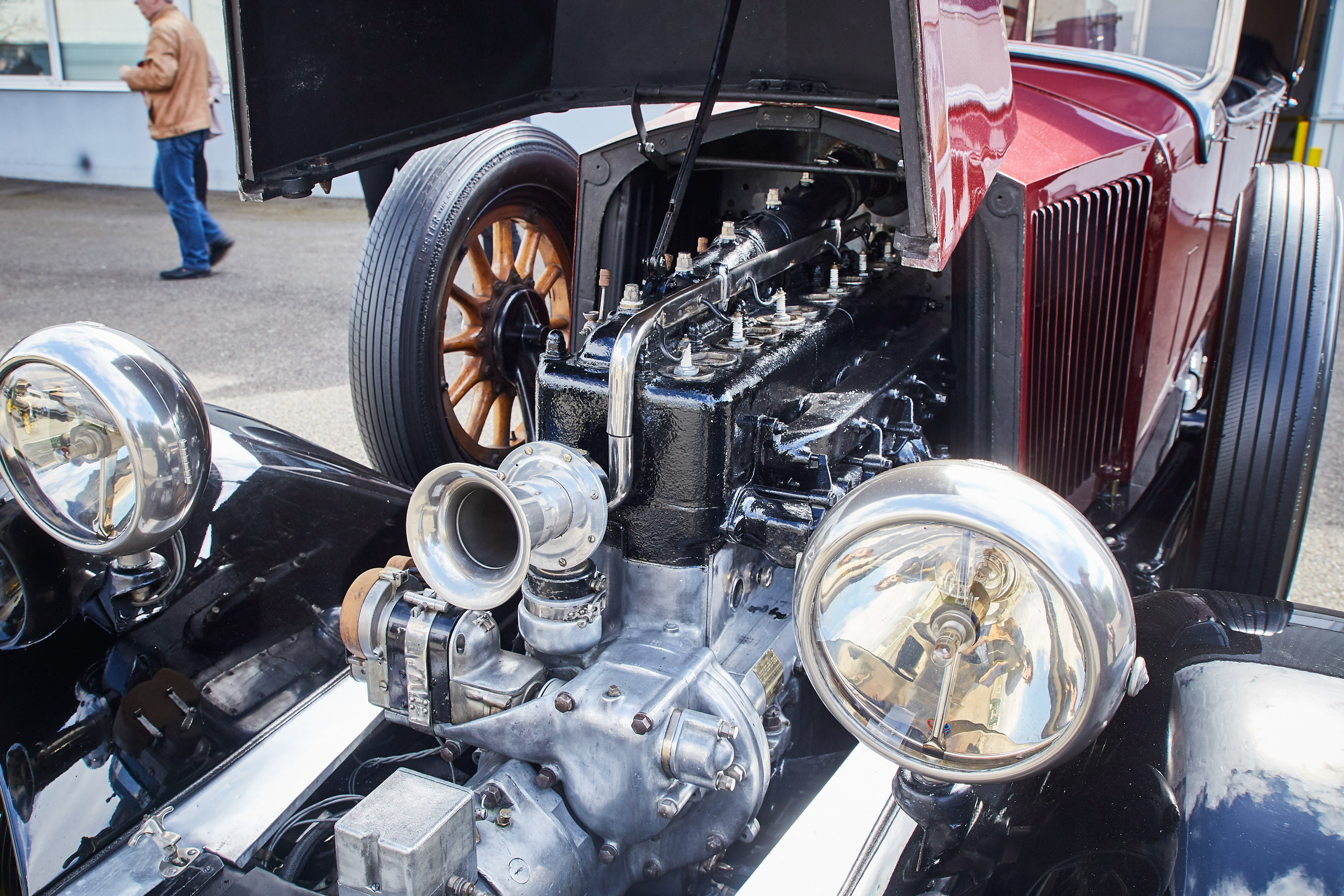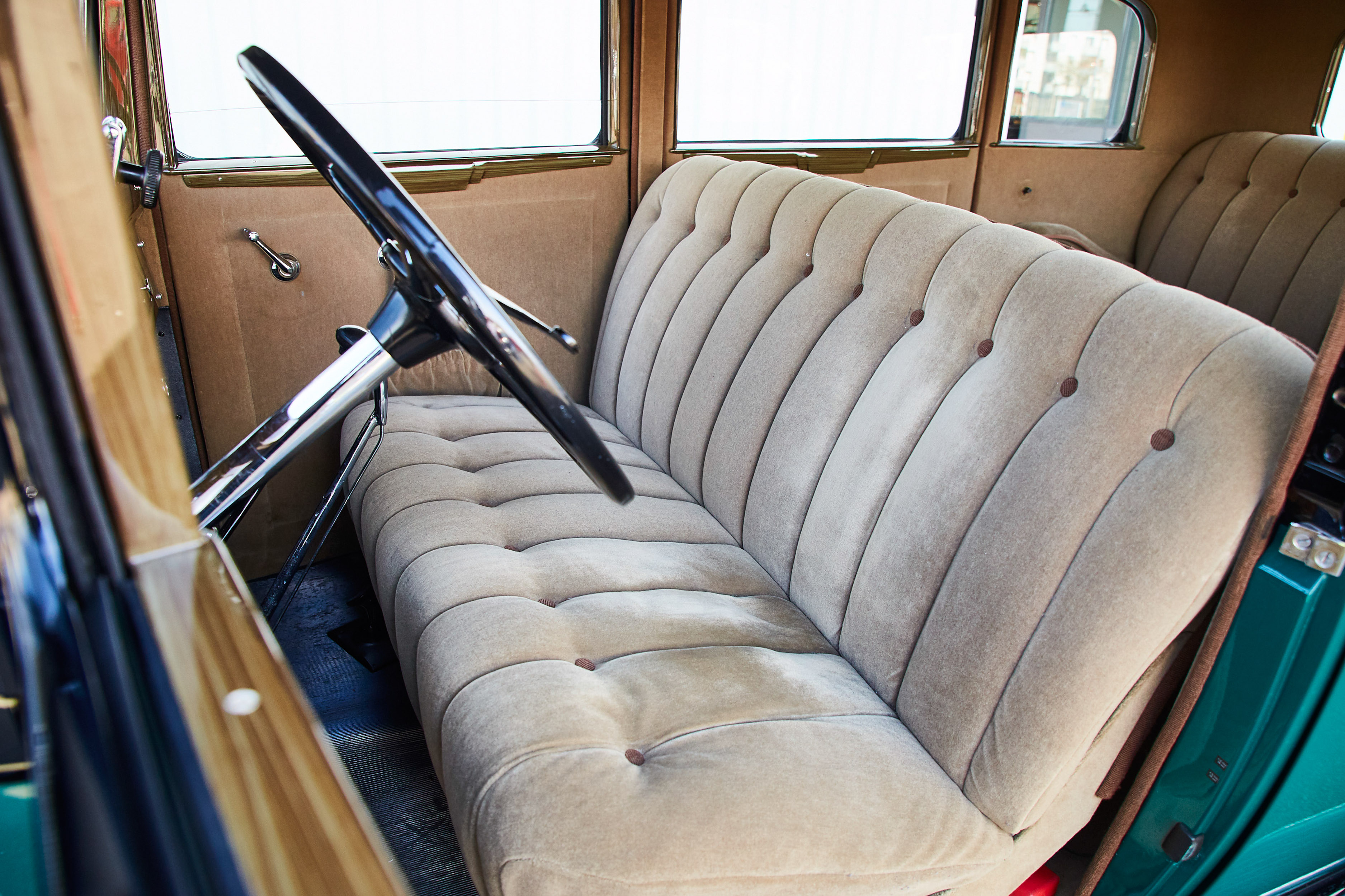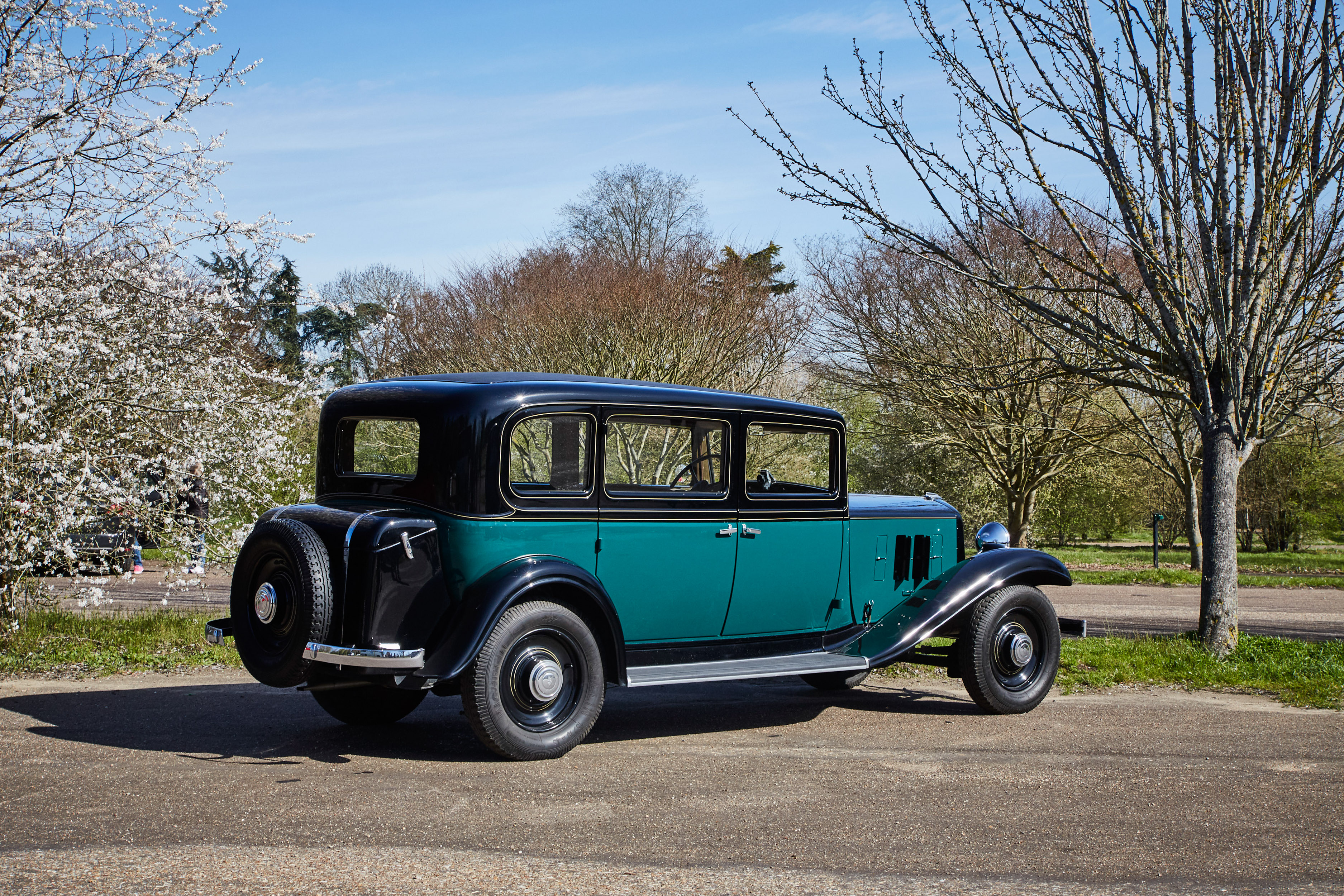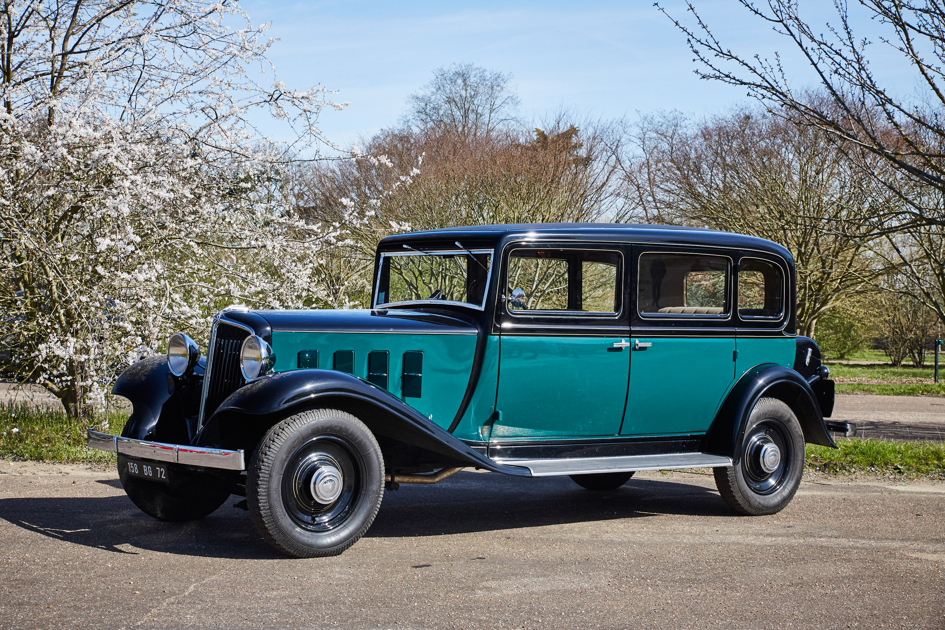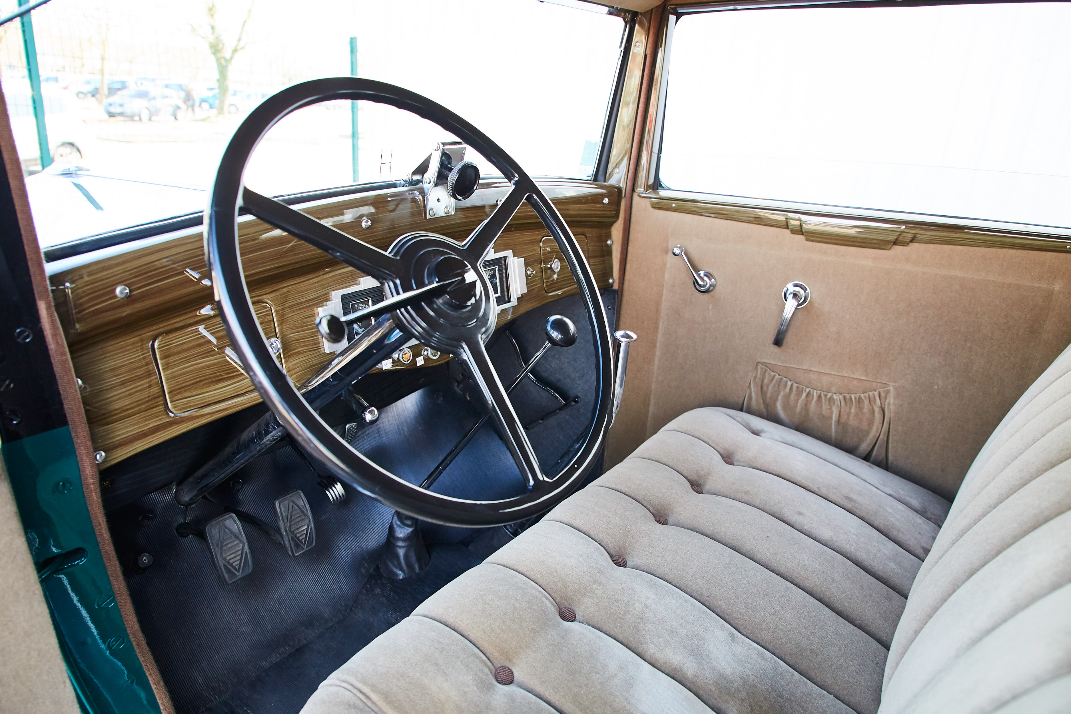 V trenutku se znajdem v norih tridesetih, pa ne mojih, ampak tistih med obema svetovnima vojnama. V rokah imam skoraj pet metrov dolge, 1,7 tone težke, glasne in nadvse romantične avtomobilske zgodovine. Previdno spuščam čvrsto sklopko, dodajam plin, z vrtljaji naraste teatralnost občutkov in zvok 3,1-litrskega vrstnega šestvaljnika s 44 kilovati postaja vse glasnejši. Volan je posreden in v primerjavi z današnjimi dimenzijami tudi velik kot krmilo v Titaniku. Prestavljanje poleg trde sklopke spremlja kovinski zven - brez vmesnega plina orjaška ročica ne “pade” v prestavo. Le tri so na voljo. Tremo hitro zamenja navdušenje. Preseneti blaženje, pravi Francoz. Udobno so se vozili že takrat. Odločneje pohodim plin, a se brez varnostnega pasu počutim malo nelagodno. Ne zgodi se kaj dosti, motor si vzame čas za dvig vrtljajev. Nato elegantno, v najvišji 3. prestavi s hitrostjo približno 80 km/h lepo zajadrava po podeželskih cestah. Avto je pregleden in zdi se, da je dolg prednji del že skoraj sredi ovinka, ko je kabina šele na vstopu. Ujamem pogled osuplega voznika v enem izmed modernih avtov, ki v vseh krožiščih spoštljivo puščajo prednost markantnemu veteranu velikoserijskega luksuza iz 30. let prejšnjega stoletja. Pokroviteljsko mu prikimam:
