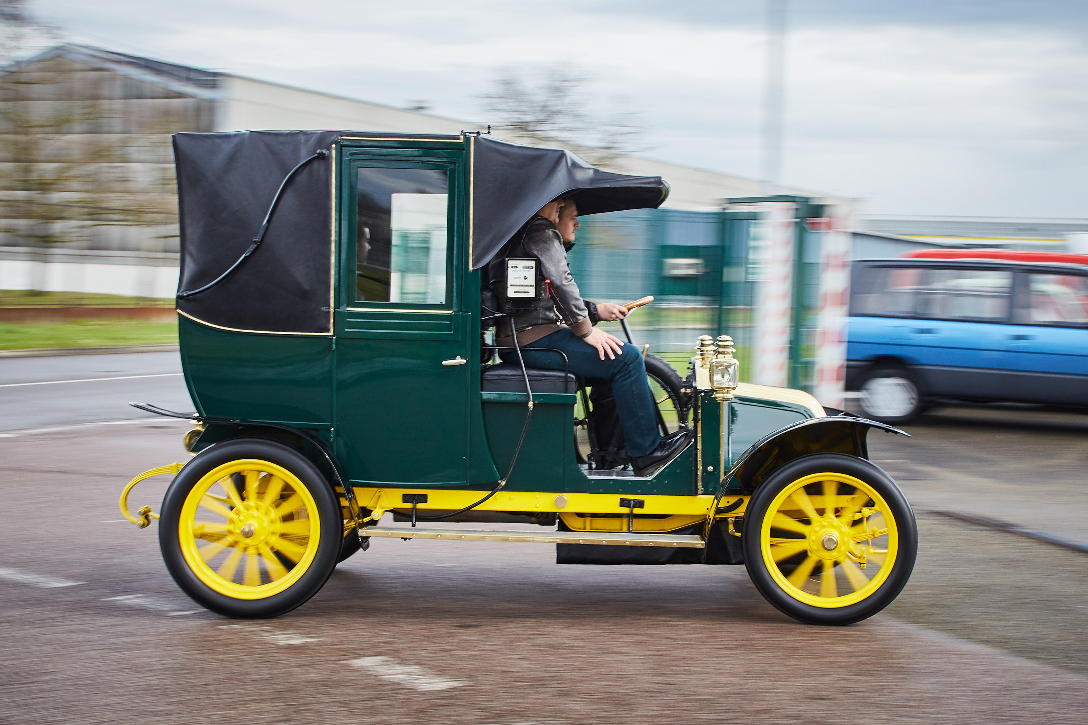Osupljiva je izkušnja znamenitega pariškega taksija renault type AG1 FL iz leta 1910. Kar težko si je predstavljati, da je ta dobro tono (1020 kg) težek in 3,7 metra dolg avto, ki je pravzaprav kočija z dvovaljnikom, takrat po pariških ulicah med vpregami že drvel s hitrostjo 40 km/h. Kar 1100 so jih izvozili na Otok in poskrbeli za mobilnost Londona.