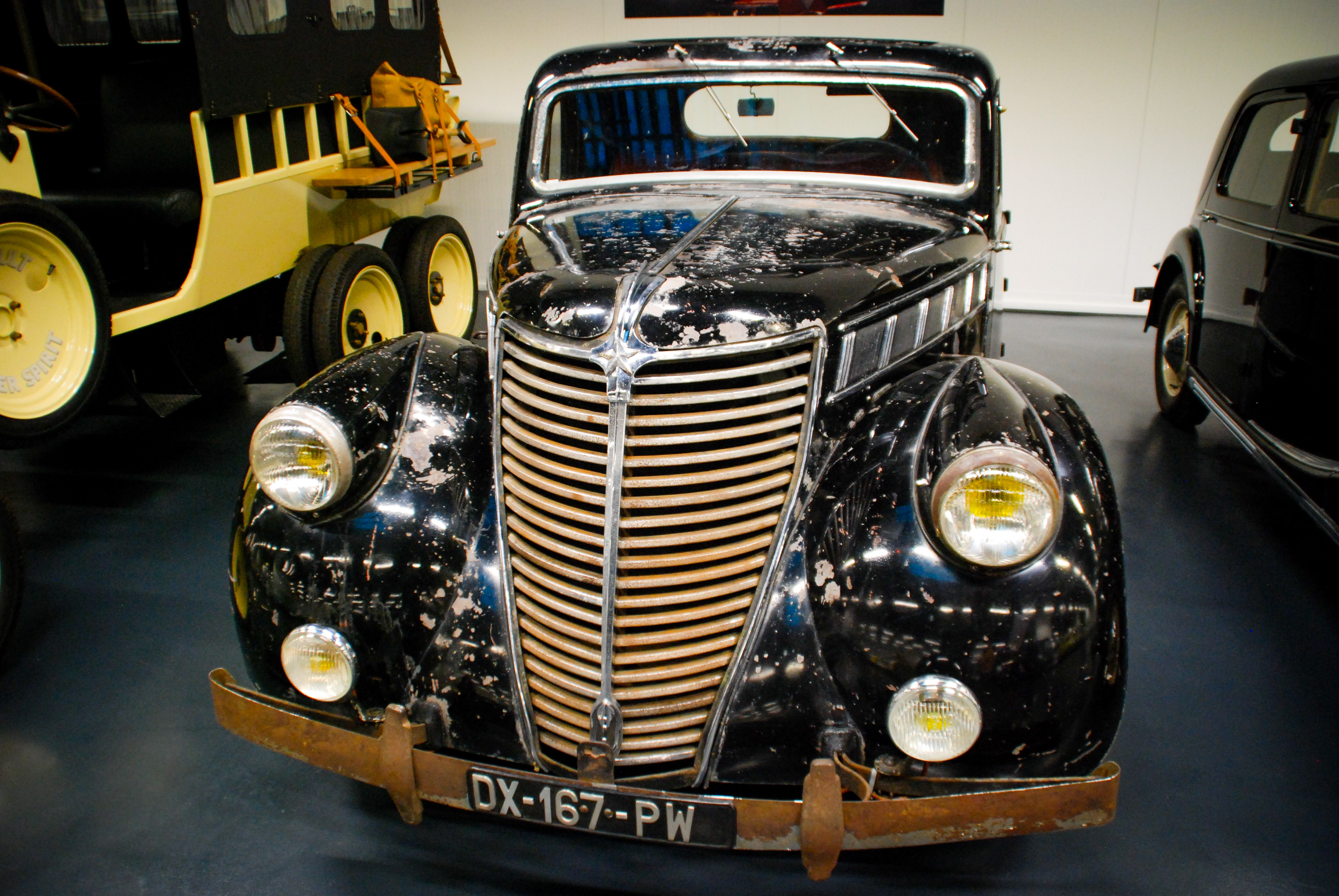 Eden zadnjih modelov, ki jih je Louis Renault predstavil pred 2. svetovno vojno, je bil elegantni primaquatre. Ta udoben, dinamičen in prostoren avto so na pariškem salonu pokazali kot avtomobilsko muzo premožnih. Nato je izbruhnila vojna. Po naključju so 50 let pozneje odkrili enega teh modelov (1937) v prvotnem stanju, povsem nevoženega. Barva je bila v slabem stanju, njegov 2,3-litrski štirivaljnik pa so zagnali v prvem poskusu.