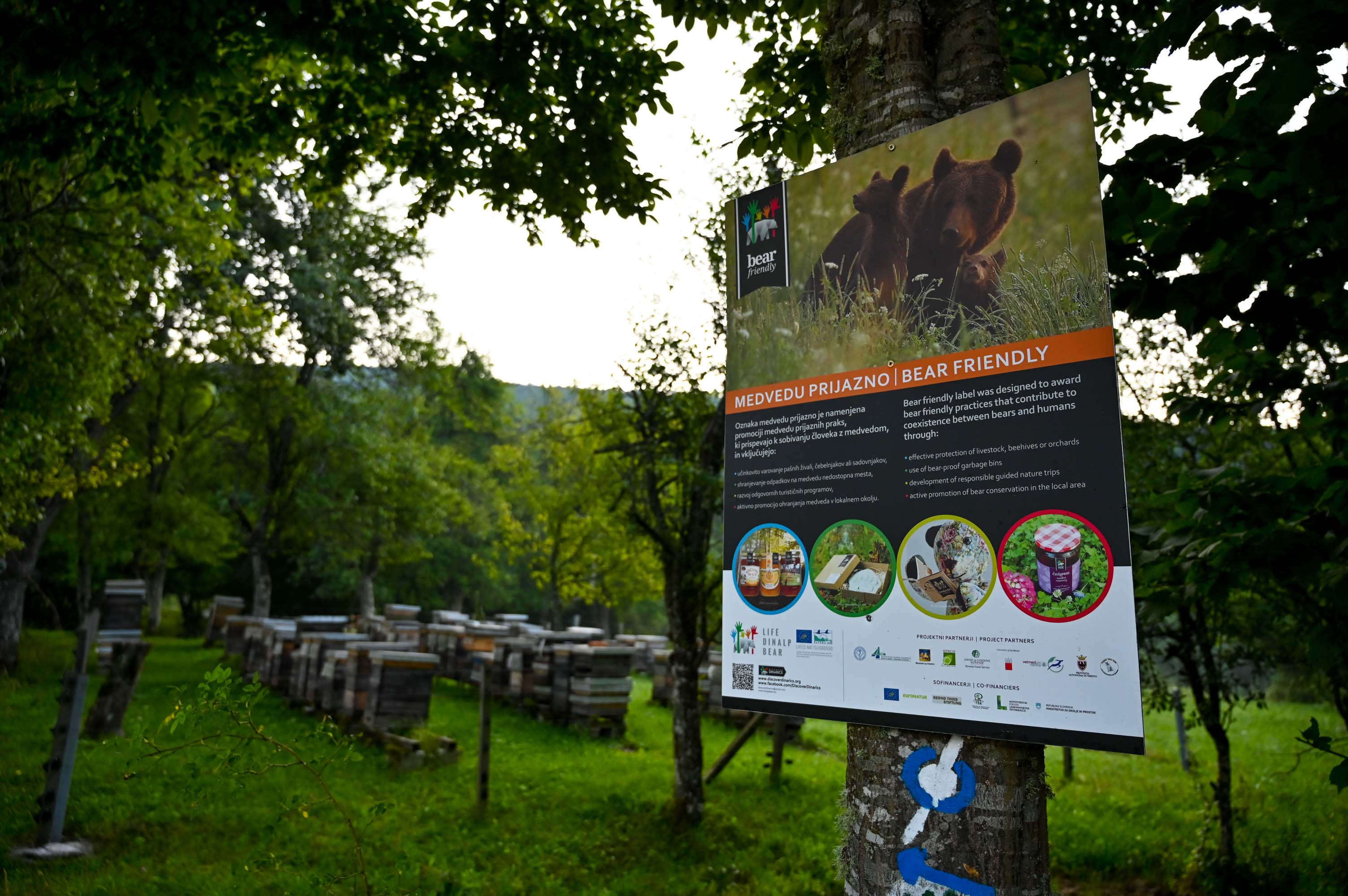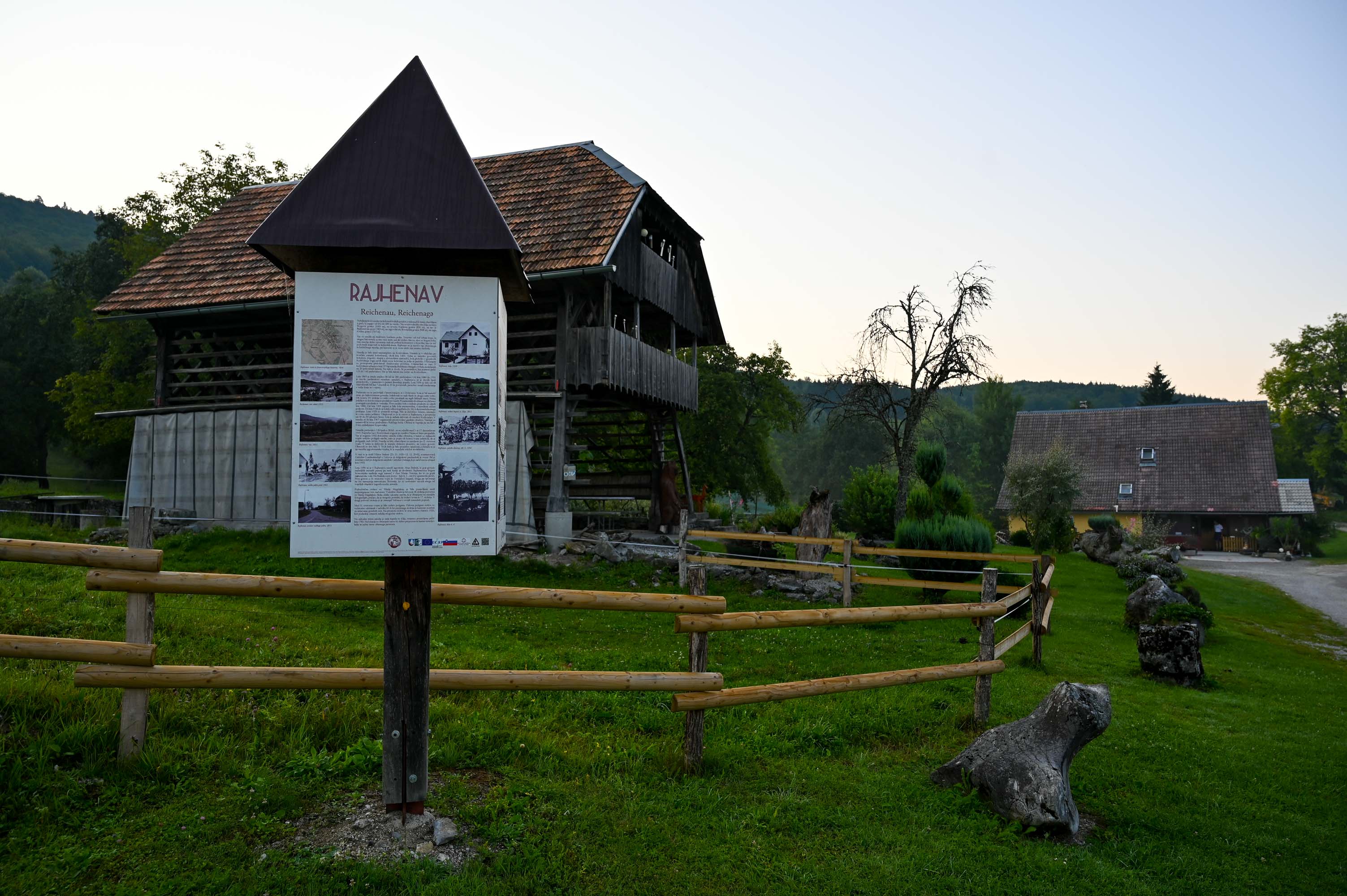 Na prvi postojanki, kjer obiskovalce pričaka tudi medvedu prijazen čebelnjak, nam Petra pojasni, da je sobivanje človeka in zveri mogoče: “Ustavila sva se na kmetiji Rajhenav. Rajhenav je bila včasih večja kočevarska vas s približno 280 prebivalci, danes pa v tej vasi oziroma na istoimenski kmetiji živita le dva stalna prebivalca, zakonca Brdnik, ki jima na veliki govedorejski kmetiji pomagata še dva delavca. Fascinantno je, da v 24 letih kmetovanja oziroma ponovne naselitve prvih sosedov - medveda in volka - kmetija ni doživela niti enega napada velikih zveri na veliko 220-glavo čredo govedi ali koze in osle, ki jih tudi redijo na pašnikih Rajhenava. To je dokaz, da je sobivanje z zvermi mogoče, če upoštevaš medvedu in volku prijazne prakse. To pomeni, da ponoči živali zapiraš v nočne ograde, njihove pašnike pa obdaja 25 kilometrov ograje električnega pastirja.” Kmetija Rajhenav ima tudi turistično dejavnost in v osrčju gozdov gospodinja Majda po predhodnem naročilu ponuja izjemno kulinarično doživetje z domačimi sestavinami, pridelanimi v osrčju kočevskih gozdov.