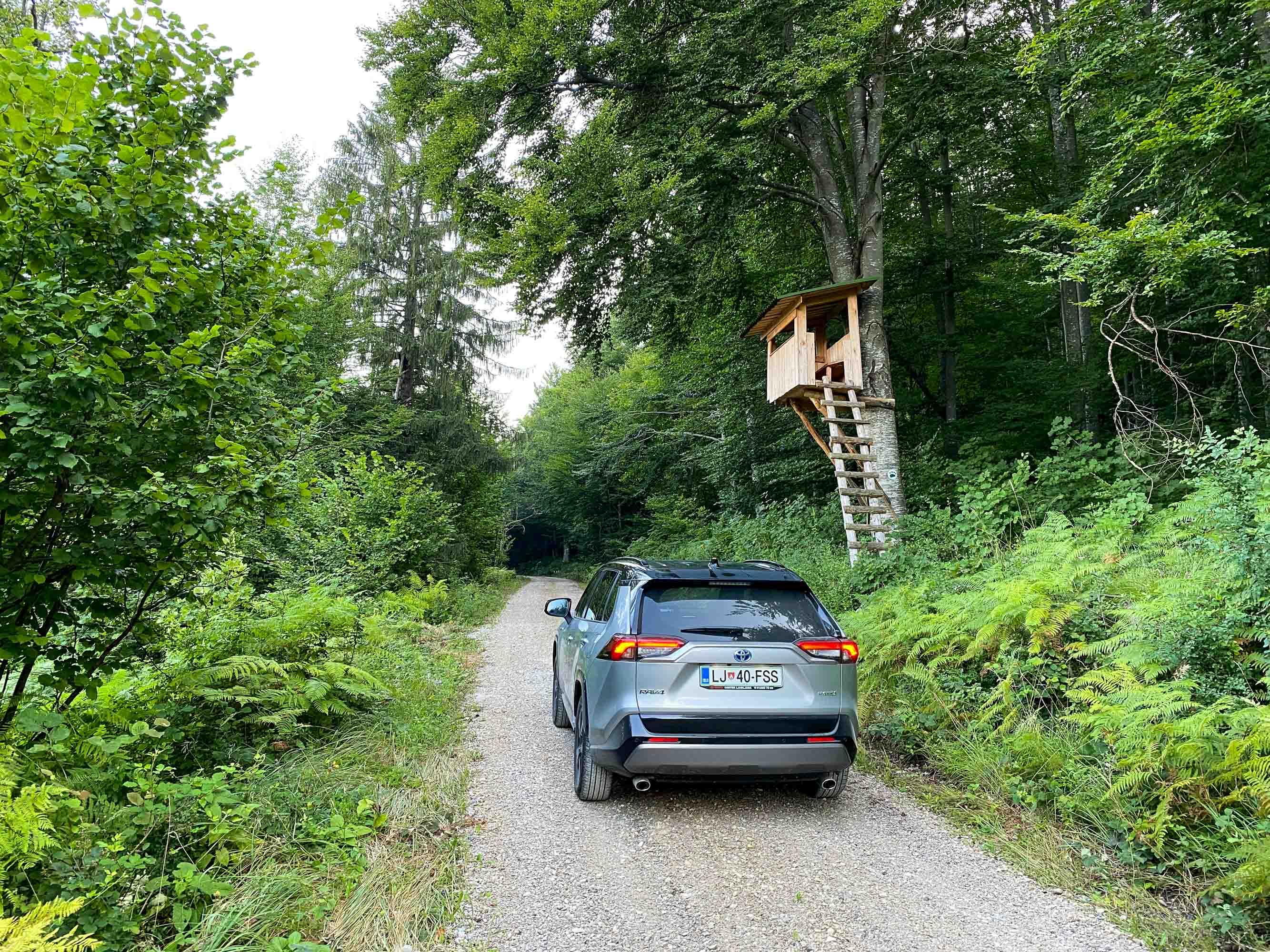Kočevski rog je prepreden z relativno dobro vzdrževanimi gozdnimi cestami, ki se vijejo pod stoletnimi krošnjami. Toyota RAV4 je že dolgo doma tudi na takih cestah in z nekoliko večjo oddaljenostjo od tal in prilagodljivim električnim štirikolesnim pogonom omogoča izlet v Kočevski rog tudi pozimi, ko so gozdne ceste lahko razmočene, zasnežene ali poledenele. Je dovolj pogumen, če se zaplete pod kolesi in z elektrificiranim pogonom dovolj čist ter tih, da ne moti gozda. Z umirjeno in tiho vožnjo hibridnega pogona lahko predvsem v ob svitu, pa tudi v mraku skozi vetrobransko steklo vidite marsikaj. Vsem, ki denimo ne zmorejo hoditi po divjem kraškem terenu v objemu velikega gozda ali pa se jim zdi divjina gozda preveč srhljiva, sistem makadamskih cest in zgodovinskih zaselkov ponuja veliko.