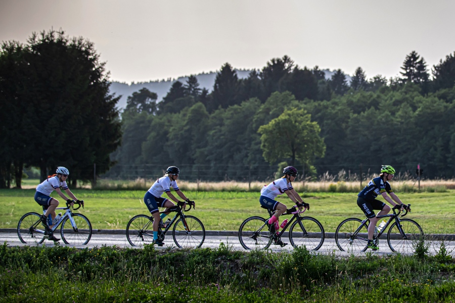 Nič osebnega: razdelite se v skupinice po šest, drug za drugim, z varnostno razdaljo, in gremo. Ja, vem, hočete se dokazati pred vsemi zbranimi, ne samo pred petimi. Zakaj pa ste toliko trenirali? Torej v skupino šestih poleg sebe izberite tiste, s katerimi bi se radi pomerili. Če je takih več kot šest, se pod klancem počakajte in se potem udarite za zmago. Na klancu bo hitro prišlo do selekcije. Če niste tekmovalni, potem so skupine po šest in zapisani red v redu, kajne?