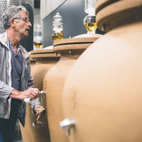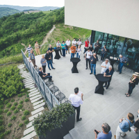 Z vrhunskimi razgledi in predvsem okusi so nam postregli na vinogradniški kmetiji Guerila na Planini nad Ajdovščino. Vinar Zmagoslav Petrič pravi, da popolni ekosistemi v naravi obstajajo le tam, kjer človek sodeluje z naravo: “Ključ življenja je v harmoniji in ravnovesju, zato v vinogradu in kleti sledimo biodinamičnim načelom.” V moderni vinski kleti se zrcali spoštovanje do narave, ta predanost bogastvu specifičnih tal in sonca pa se občuti v okusih na krožniku in v kozarcih.