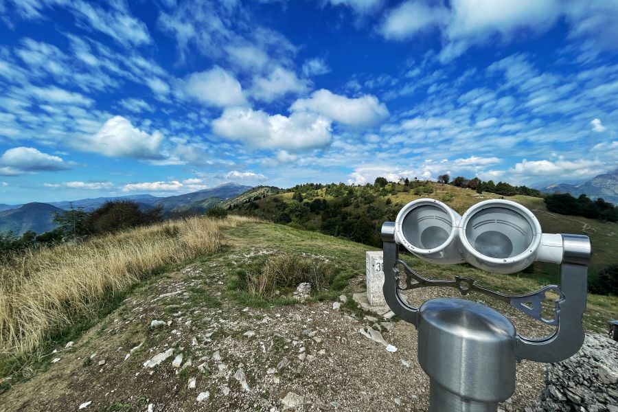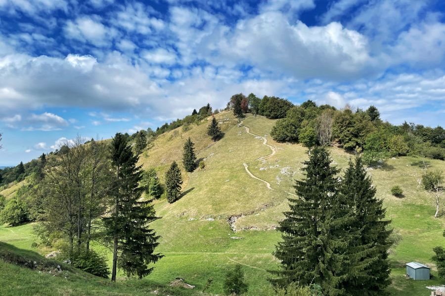 Na slemenu se ponujajo odpirajo izjemni razgledi - v ozadju Julijske Alpe.