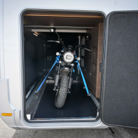 | S poenostavljeno potjo za pridobitev vozniškega izpita A1 kategorije ali kode 125, ki tudi voznikom avtomobilov omogoča vožnjo 125-kubičnega motocikla ali skuterja do največ do 11 kW moči, je mikromobilnost v avtodomu ponovno obudila še en zelo uporaben, praktičen, udoben in tudi razmeroma varen način prremikanja okoli stacioniranega avtodoma - kompaktni motocikel. Ob tem velja opozorilo, da koda 125 velja le za vožnjo po slovenskih cestah. Kdor bo bližnjo ali nekoliko daljšo okolico kampa ali utrip velikih mest v tujini želel raziskovati za krmilom takega motocikla ali skuterja, bo obvezno moral opraviti izpit A1 kategorije. |