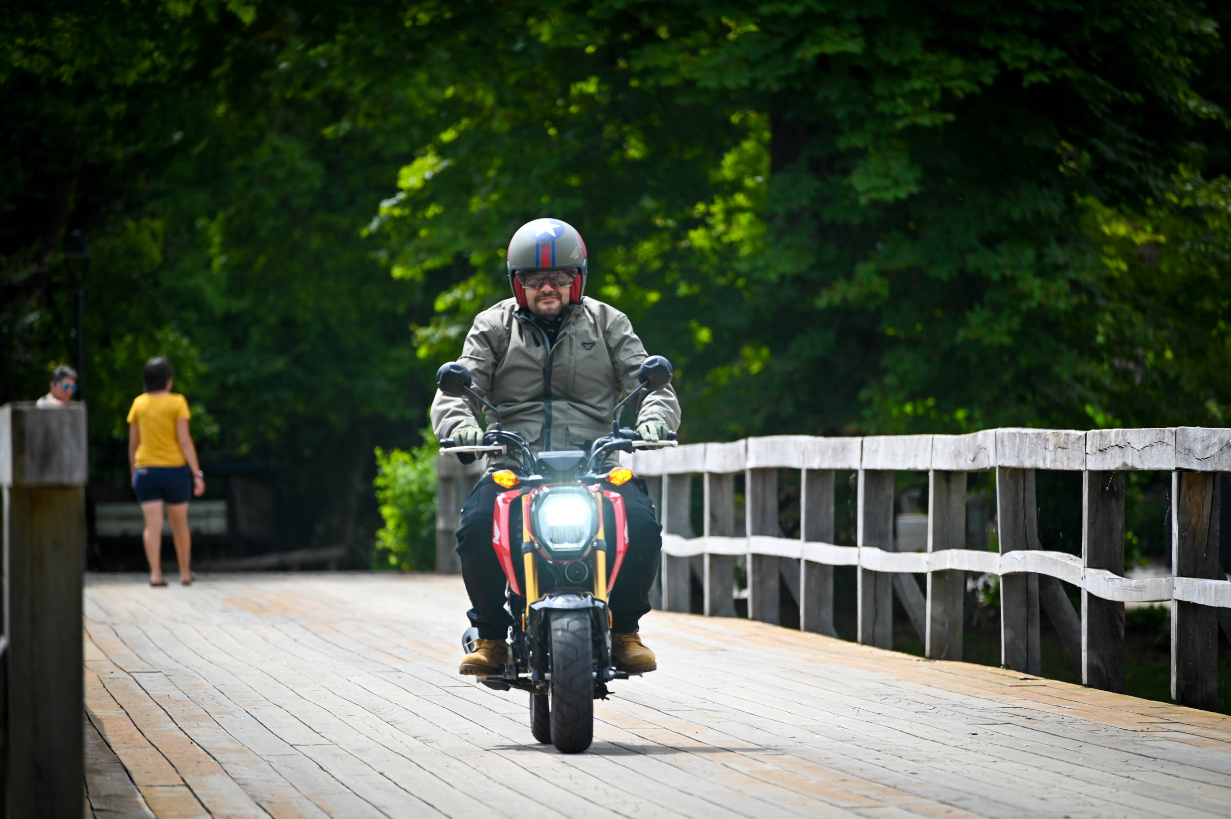 Na tokratnem moto izletu se je z voznimi lastnostmi, ki so bližje zmogljivejšim motociklom izkazal, močnejši, malce večji honda MSX 125A grom, ki bolj suvereno niza ovinke. Peter pravi, da je razlika očitna: “Z lahkoto ga uvrstim v kategorijo športnih slečenih motorjev. Kot pravi “naked,” se zelo dobro spopade z ovinki, čeprav je seveda omejen (zakonsko) z močjo preizkušenega hondinega štiritaktnega enovaljnega motorja. Vedno sem v precepu, ali mi je všeč ali ne. Ko ga pogledam, ga ne morem jemati resno, a to mnenje vedno spremenim, ko sedem nanj in se peljem skozi mesto ali po ovinkih. S točno takšnim strojem lahko treniram na kartodromu v dirkaškem kombinezonu in pri tem pilim tehniko kot to počnejo mojstri dirk elitnega razreda MotoGP.”