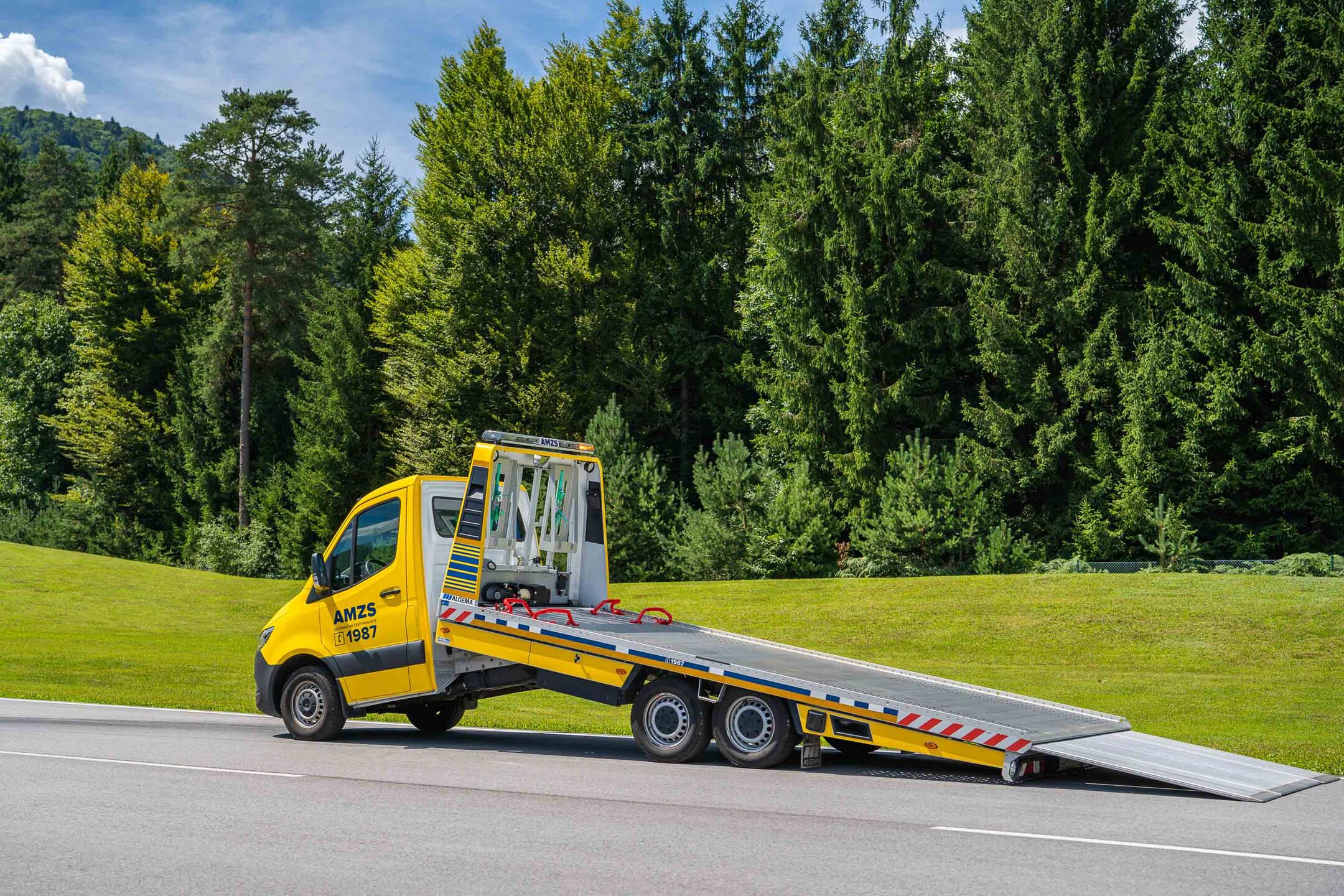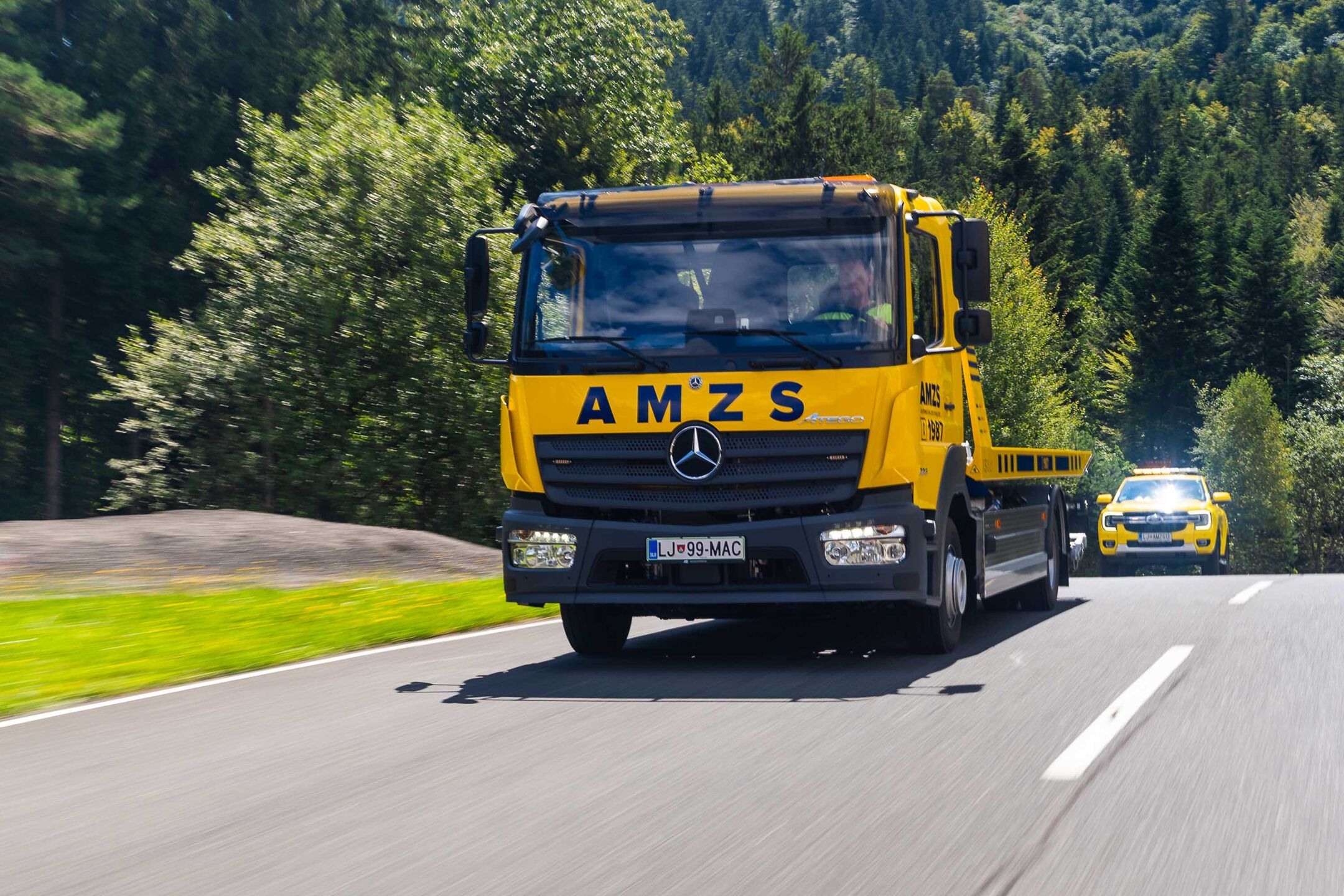 Floto novih vozil je za Motorevijo predstavil Iztok Podobnik, direktor področja mobilnosti pri AMZS: “V letošnjem letu smo na cesto postavili sedem novih, odlično opremljenih in varnih vozil pomoči na cesti. Med njimi sta dva Mercedesova tovornjaka atego, dva sprinterja, dva nova Daciina dusterja in terenski ford ranger. Največja sta seveda oba tovornjaka mercedes atego. Vsak ima nosilnost 5 ton, zmogljiv motor z 213 kW moči in 6-stopenjski samodejni menjalnik. Tovornjaka omogočata varno posredovanje oziroma prevoz ob okvari ali nesreči težjih počitniških vozil, večjih dostavnikov … Tovornjaka že brez uporabe dodatne opreme s svojo zmogljivostjo, nosilnostjo in vlečno močjo pokrijeta skoraj 90 odstotkov vseh večjih in težjih vozil, ki na naših cestah potrebujejo pomoč. Pri določenih primerih nas nekoliko omejuje le zakonsko določena višina, ki ne sme preseči 4 metre. V takih primerih uporabimo dodatno opremo, tako imenovana “izvlečna očala” za vleko. V primerjavi z našimi obstoječimi MAN-ovimi tovornjaki nova atega omogočata še več okretnosti zaradi krajše medosne razdalje, kar je je ključna prednost. Izguba dolžine na tovorni ploščadi je ob manjšem obračalnem krogu praktično zanemarljiva. Poleg tega sta tovornjaka opremljena z najsodobnejšimi aktivnimi varnostnimi pomagali, tudi z naprednim sistemom za speljevanje v klanec. Oba tovornjaka odlikuje razmeroma majhna poraba goriva, pa tudi ostali stroški obratovanja so razmeroma nizki. Oba sta že na cesti in kmalu bomo videli, kakšen bo njun energetski prihranek. Ravno tako izpolnjujeta najvišji standard izpustov in imata tri leta oziroma četrt milijona kilometrov tovarniške garancije.”