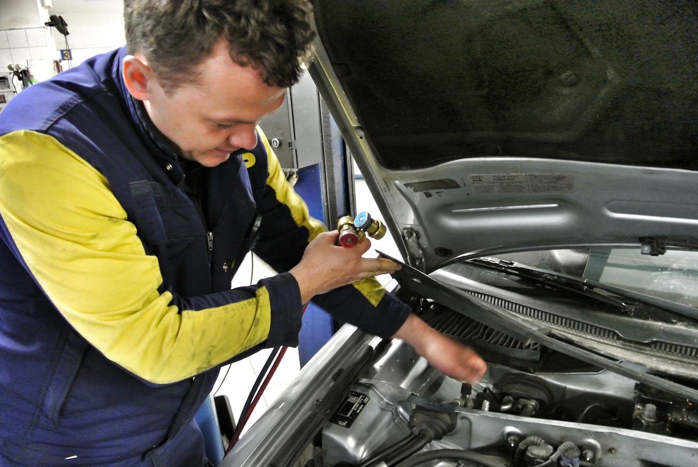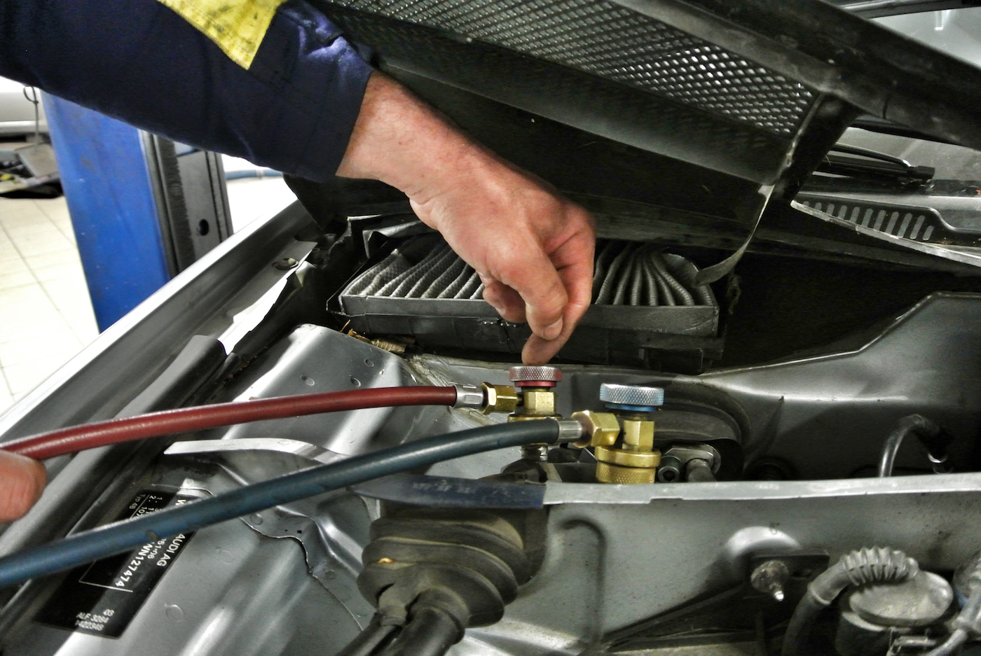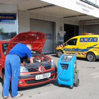 Strokovnjaki AMZS priporočajo preventivni pregled klimatskih naprav vsako leto ali po vsakih 30.000 prevoženih kilometrih; pri takšnem pregledu strokovnjaki izmerijo učinkovitost delovanja in dočrpajo manjkajočo količino plina. Če klimatska naprava popolnoma odpove ali je učinkovita le pri nastavljeni najnižji temperaturi in najvišji moči zračenja, je treba opraviti temeljitejši servisni poseg. Serviser pri takem posegu iz sistema izčrpa ves plin in ga v posebni napravi prečisti – to je zelo pomembno, saj že najmanjša onesnaženost plina (na primer s kapljicami vode) zmanjša učinkovitost klimatske naprave. Če je plina v sistemu premalo, serviser dotoči manjkajočo količino, hkrati pa temeljito pregleda tudi vse sestavne dele klimatske naprave in zamenja vse porozne gumijaste dele, kot so cevi, tesnila in mikrofiltri. Prečisti (in dotoči) tudi posebno hladilno olje, ki se uporablja za mazanje elektromagnetnih ventilov.