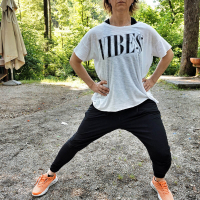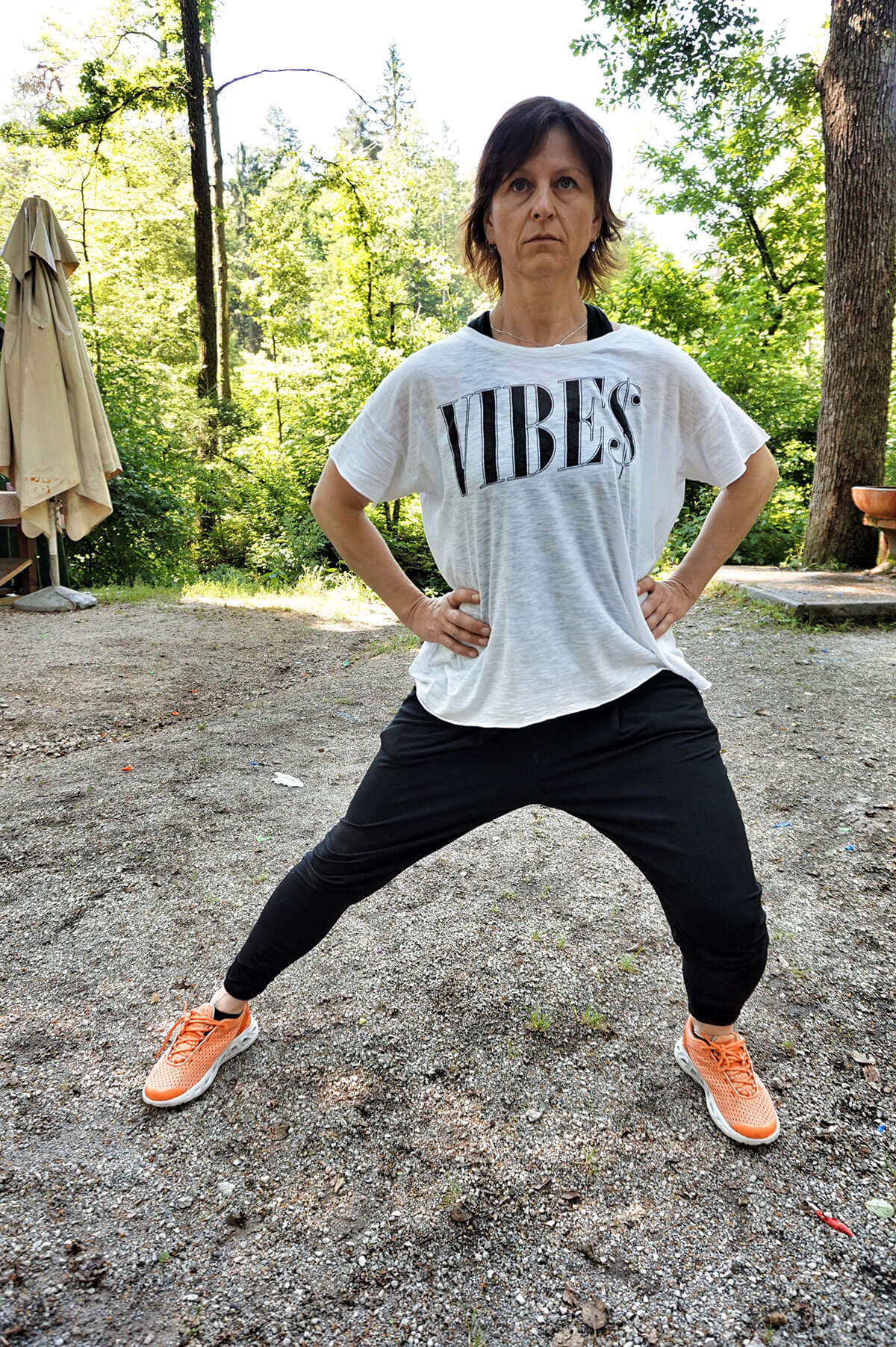 - Naredimo nekaj izpadnih korakov z eno in drugo nogo naprej in lahko tudi v stran,