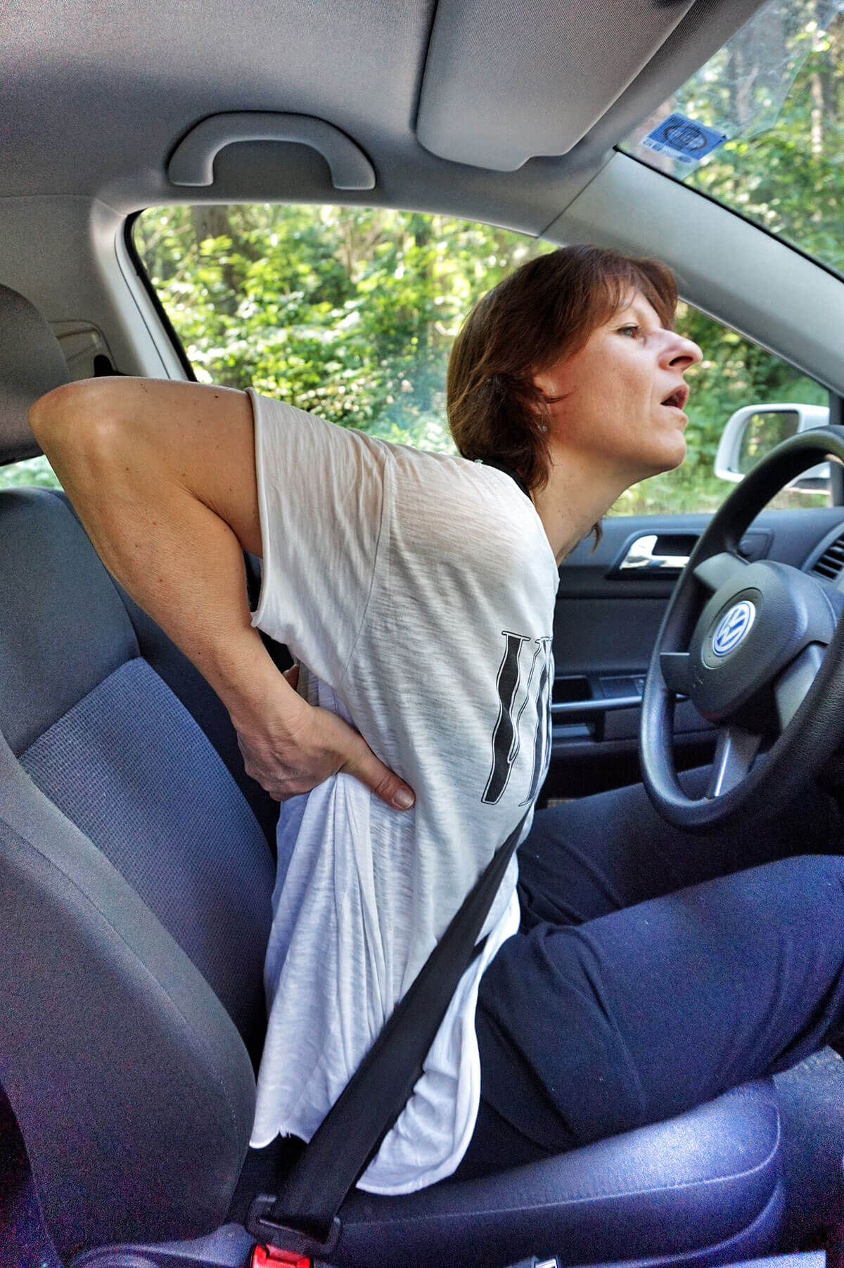 Sicer pa vsak lahko na lastni hrbtenici občuti, da vožnja nanjo ne vpliva dobrodejno. Ljudje s težavami v hrbtenici težko vozijo brez prestanka, bolečina jih prisili, da se ustavijo in razgibajo. Vsi drugi smo sposobni začetne občutke neudobja potlačiti in voziti naprej. To pa je tudi glavna napaka, ugotavlja Kernc. Hrbtenci bi morali prisuhniti prej. “Če bomo čakali teden, mesec ali leto, se bodo bolečine le še stopnjevale. Če se torej med vožnjo počutimo nelagodno in nas začne v križu nekaj utesnjevati, je najbolje, da si skušamo pomagati takoj.” Poleg ustrezne nastavitve sedeža si lahko pomagamo še na dva načina.