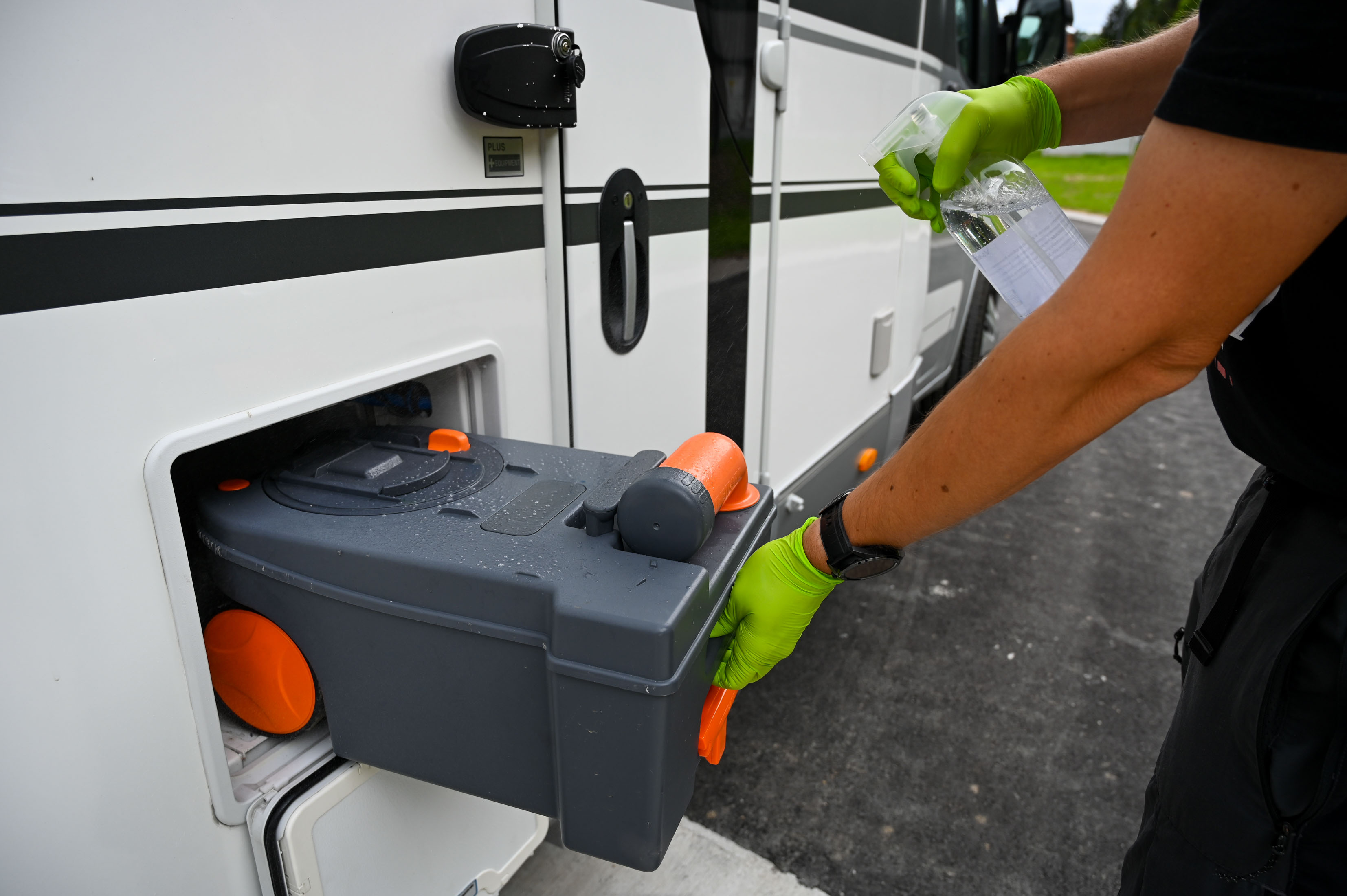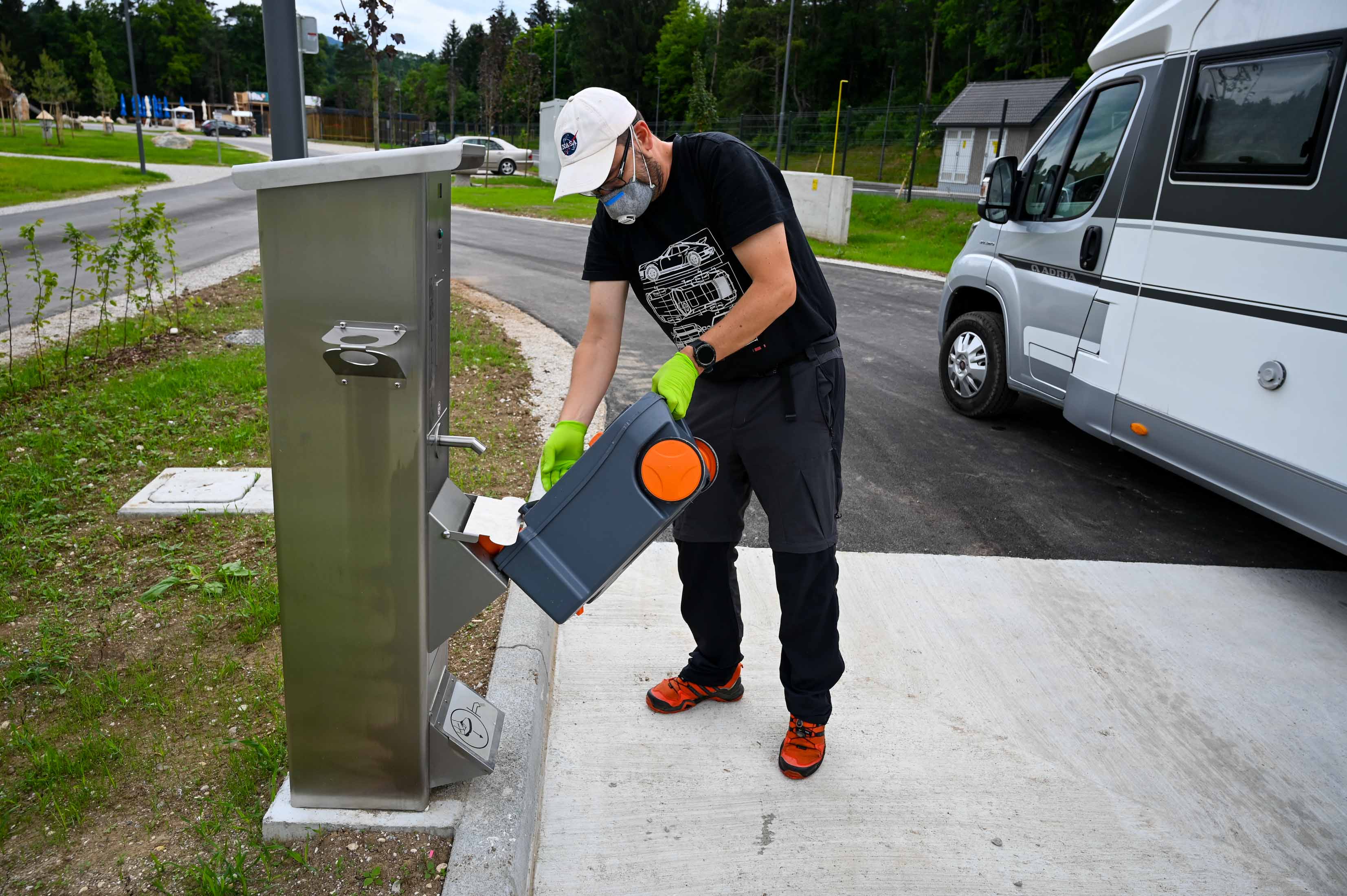 Na počitnicah v avtodomu v svoji kuhinji, kopalnici in spalnici virusu preprosto zaprete vrata ter si z nekaj dodatnimi ukrepi zagotovite visoko stopnjo varnosti. Še vedno velja, da je previdnost mati modrosti, kar pri počitnicah v avtodomu velja upoštevati tako na cesti kot tudi v kampu. Ko hišo na kolesih parkirate na izbrani kamp parceli ali postajališču za avtodome, omejite stike s sosedi. To seveda ne pomeni, da se ne smete spoznati. Danes bo vsakdo razumel, če boste prijazno zavrnili rokovanje z neznancem. Obiske pa sprejmite pod razprto tendo, zunaj pred avtodomom in ne v notranjosti bivalnega dela vozila. Med obvezno kamp opremo počitniškega vozila spadajo tudi razkužilo, zaščitne rokavice in maske. Nič ne bo narobe ali čudno, če si boste omislili tudi delovno haljo za sanitarni servisni poseg, ko boste praznili kaseto kemičnega stranišča ali praznili posodo z umazano vodo. Pri izbiri kampa povprašajte, kako imajo poskrbljeno oskrbo avtodoma ali prikolice. Najbolje je, če je postaja za svežo vodo in praznjenje odpadnih voda ter kemičnega stranišča ločena od ostalih sanitarnih enot. Odličen primer take postaje vidite na fotografijah.