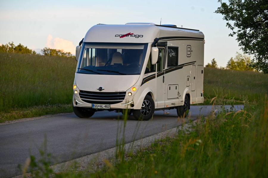 Carthago C-compactline ima tudi dva lahko dostopna prtljažna prostora, večjega nad zadnjim previsom in manjšega, a dovolj velikega za shranjevanje zložljivih kamp stolov, na levem boku vozila. Kljub temu, da integrirana bivalna nadgradnja objema celotno šasijo Fiatovega ducata, ta avtodom zaradi uporabe tehnologije lahke gradnje ob bogati bivalni opremi še vedno ponuja razmeroma dobro nosilnost. Brez polne zaloge vode je ta kompaktni avtodom mogoče obtežiti še z nekaj več kot 400 kilogrami. Zaradi velikih steklenih površin integrirane nadgradnje okoli vozniške kabine lahko pohvalimo še odlično preglednost in stalni video prenos dogajanja za avtodomom na zaslonu ob levi strani volana. S tem avtodomom smo brez težav vozili tudi po ožjih stranskih cestah po našem in istrskem podeželju. Pri tem palec znova dvigujemo tudi za učinkovitost preverjenega Fiatovega dizelskega motorja, ki je na našem dobrih 600 kilometrov dolgem vikend potepu na 100 kilometrov porabil od 9,5 do 9,8 litra goriva.