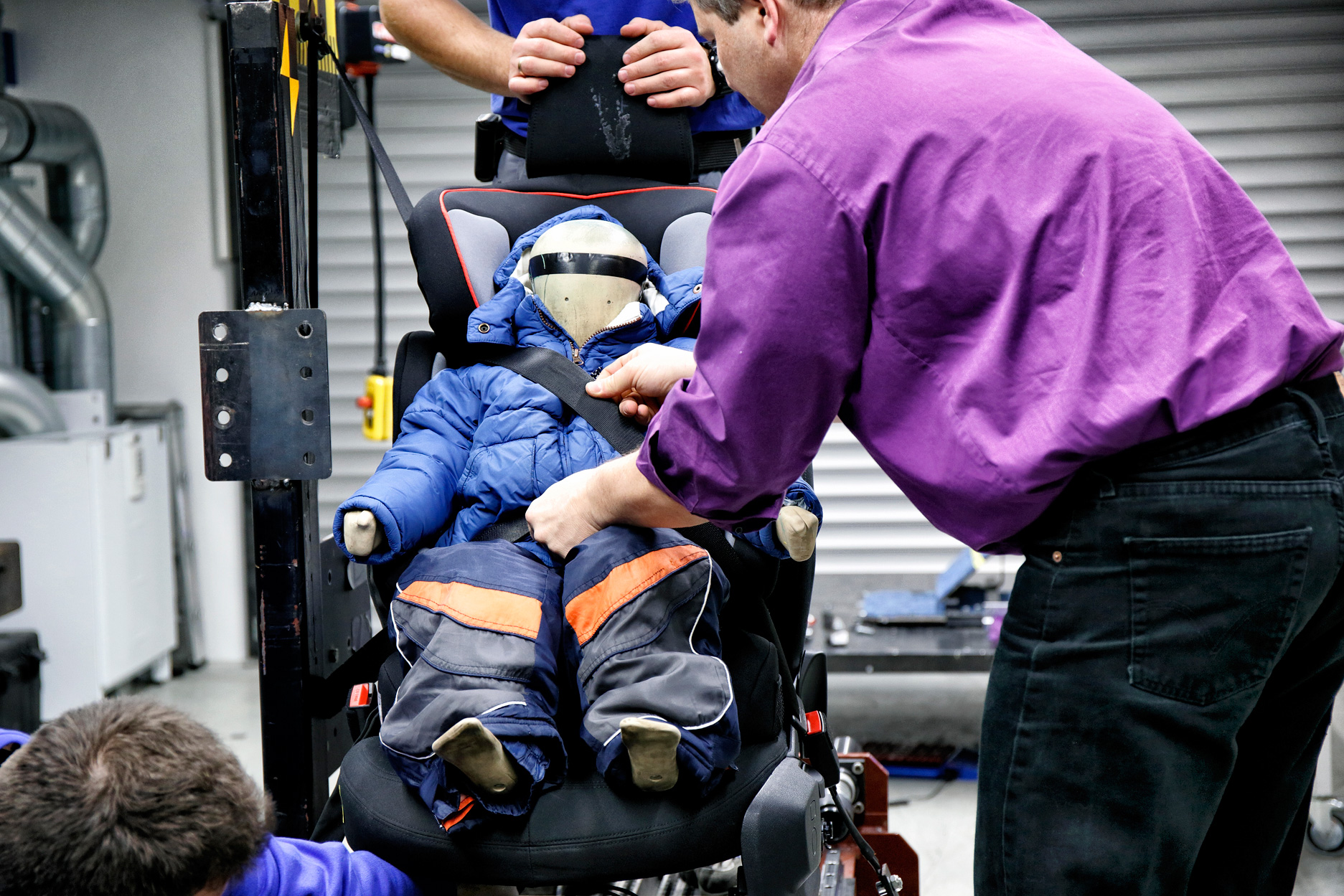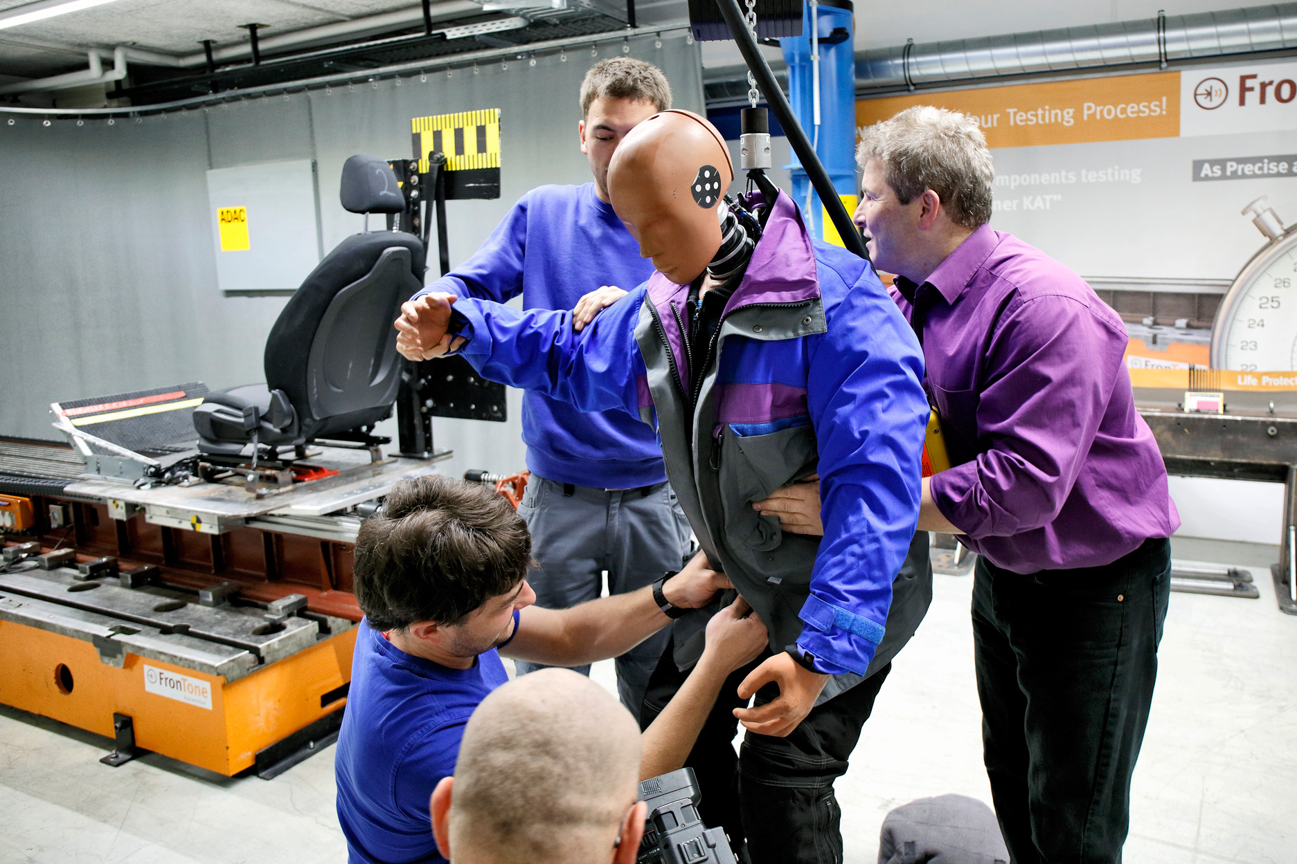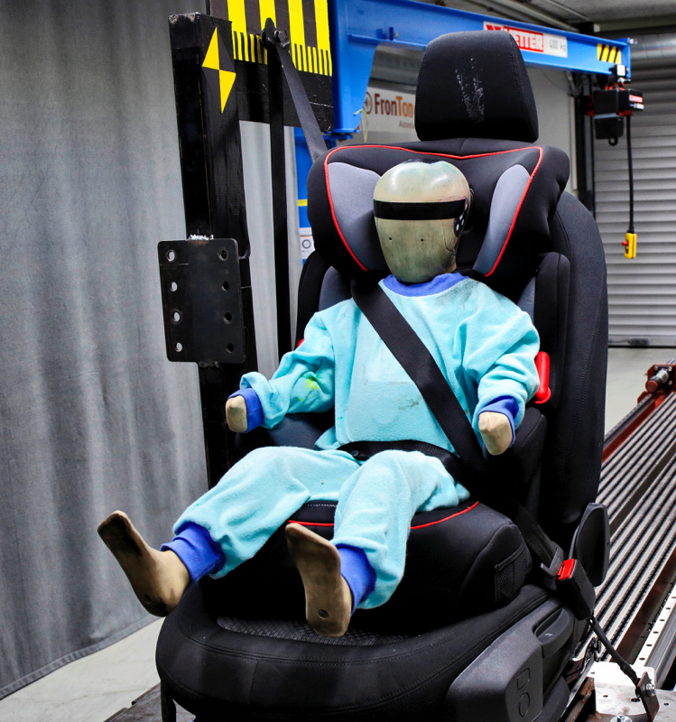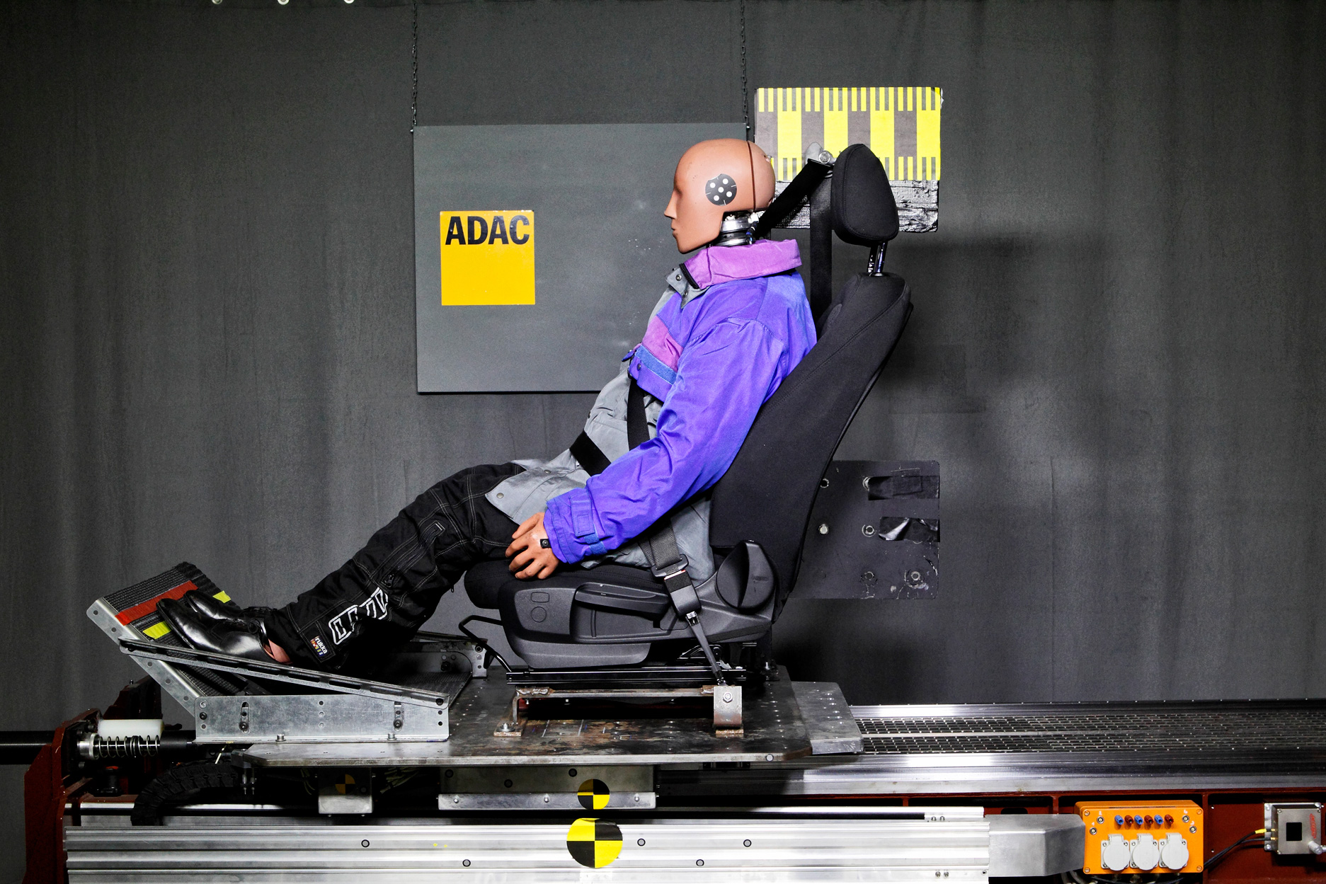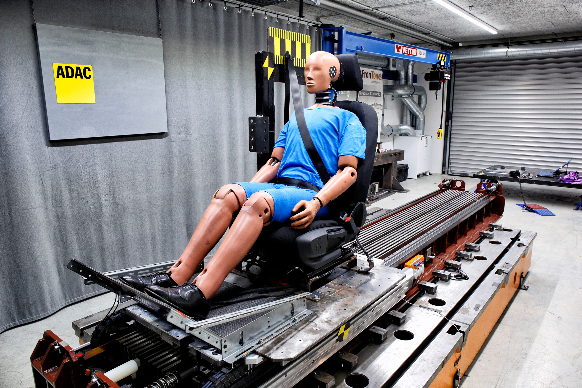 To so ugotovili tudi strokovnjaki ADAC, ko so opravili preskusni trk pri hitrosti 16 km/h in v voznikov sedež posadili v bundo oblečeno odraslo lutko, v otroški sedež pa v bundo oblečeno lutko otroka. Že trk pri majhni hitrosti, ki je značilna za mestne nesreče, se je za obe lutki končal slabo, saj se je spodnji del varnostnega pasu obema lutkama zarezal v trebušni del trupa. Obremenitve so bile dovolj velike, da bi v resničnem življenju lahko prišlo do notranjih poškodb oziroma poškodb notranjih organov.