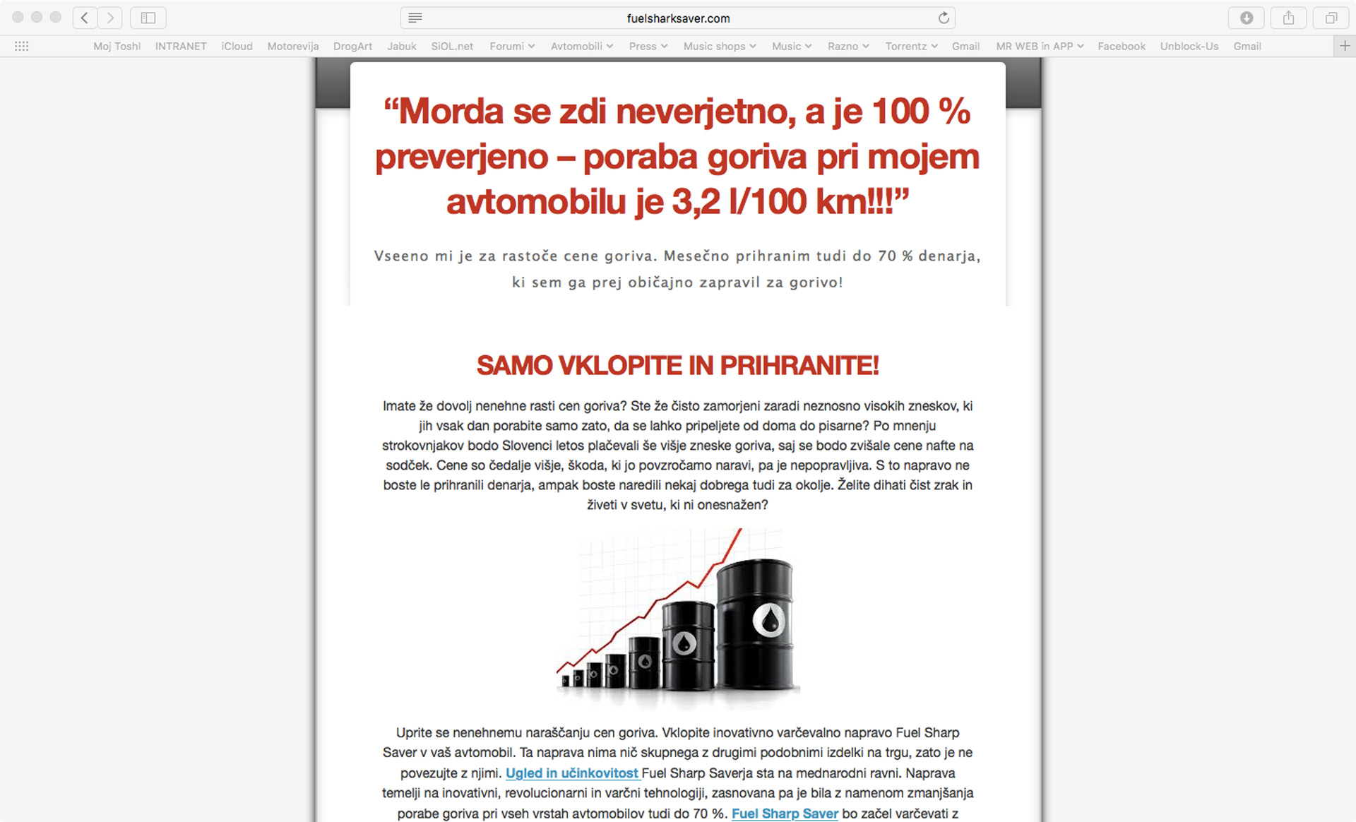 Tako se glasi predstavitveno besedilo za nek dodatek za gorivo, ki trenutno vsiljivo kroži po družbenih omrežjih prek spletne strani dodatki-za-gorivo.com. Dodatek prodaja podjetje V&A Pro-fit d.o.o. Inženiring, storitve in trgovina s slovensko telefonsko kontaktno številko.