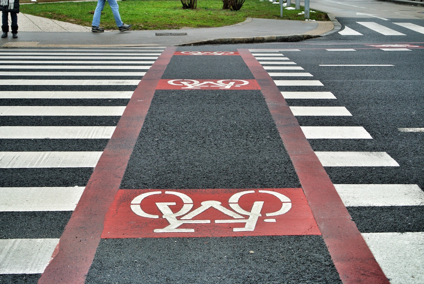 V zadnjih letih smo bili priča precej različnim načinom barvanja kolesarskih površin. Smiselnost barvanja celotnih pasov in tudi stez v velikih dolžinah je vprašljiva. Vsekakor je smiselno s posebno barvno označiti le izpostavljena mesta, kot so območja križišč ali kolesarskih prehodov čez cesto, torej mesta, kjer je potrebna dodatna previdnost kolesarjev. V prejšnji številki Motorevije smo pisali tudi o spremembah, ki jih prinaša novi pravilnik o prometni signalizaciji in prometni opremi na cestah. Novosti za kolesarje so v križiščih z uvedbo pomaknjene stop-črte in z uvedbo posebnih površin za ustavljanje kolesarjev pred vozili na stop črti v križiščih. S tem vozniki kolesarje bolje vidijo in so kolesarji zato bolj varni.