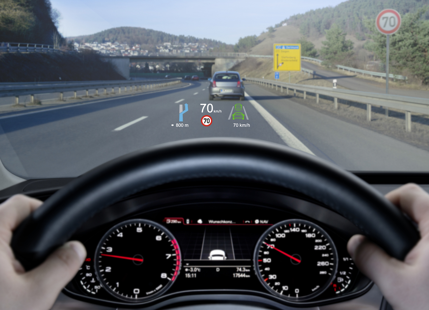 Prikazovalnik podatkov na steklo Projekcijski prikazovalnik podatkov na steklo (head-up display) je v zadnjih letih na voljo v vse več avtomobilih. Deluje tako, da prek projektorja in vizualnih učinkov prikazuje nekatere podatke – na primer hitrost, navigacijske podatke – na vetrobransko steklo, kar voznik vidi kot lebdeče podatke nekje v razdalji prednjega dela avtomobila. Vozniku tako ni treba odvračati pogleda s ceste na merilnike, kar zagotovo veliko pripomore k zbranosti – še zlasti pri spreminjajočih se hitrostnih omejitvah. AMZS priporočilo: priporočljivo |