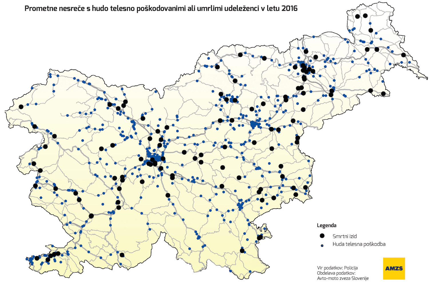 V letu 2016 se je, po še ne povsem dokončnih podatkih, po podatkih policije na slovenskih cestah zgodilo 17.578 prometnih nesreč. Prometnih nesreč z umrlimi udeleženci je bilo 125, v njih pa je umrlo 130 udeležencev v prometu – kar deset več kot v letu 2015. Prometnih nesreč s hudimi telesnimi poškodbami je bilo 768, v njih se je poškodovalo 833 udeležencev, kar je 99 manj kot predlani. Sklep je nedvoumen: prometna varnost na slovenskih cestah se je v lanskem letu poslabšala, kar je ravno nasprotno od pričakovanj in načrtov.