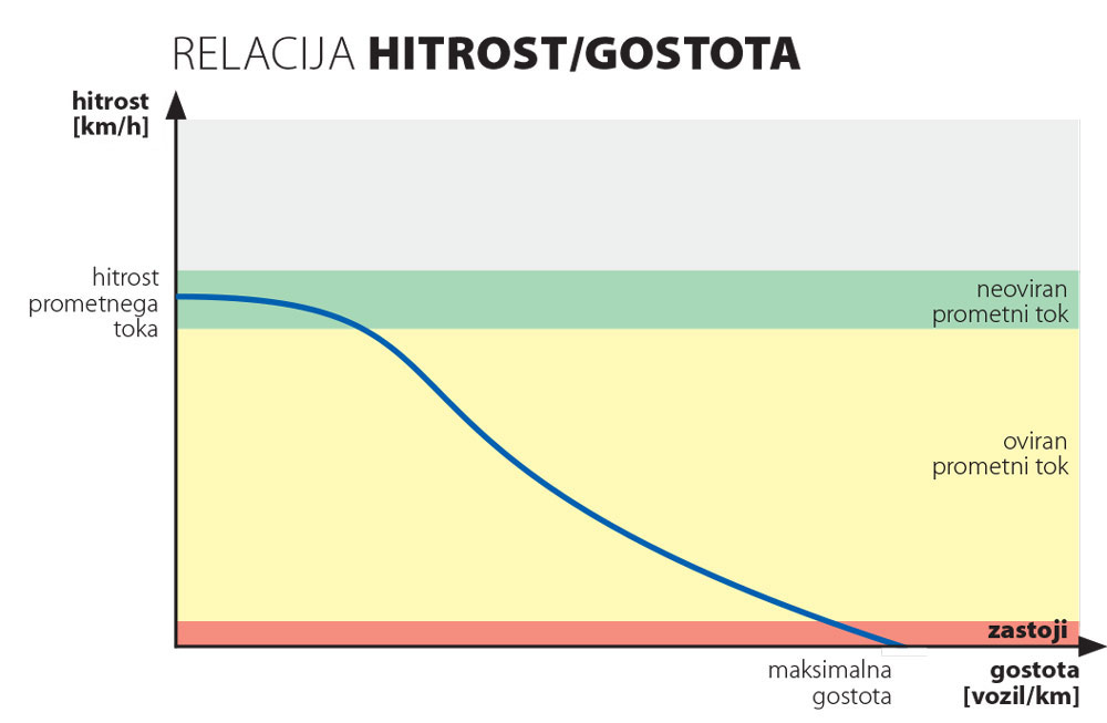• kadar sta hitrost in gostota enaka nič, ni pretoka vozil,