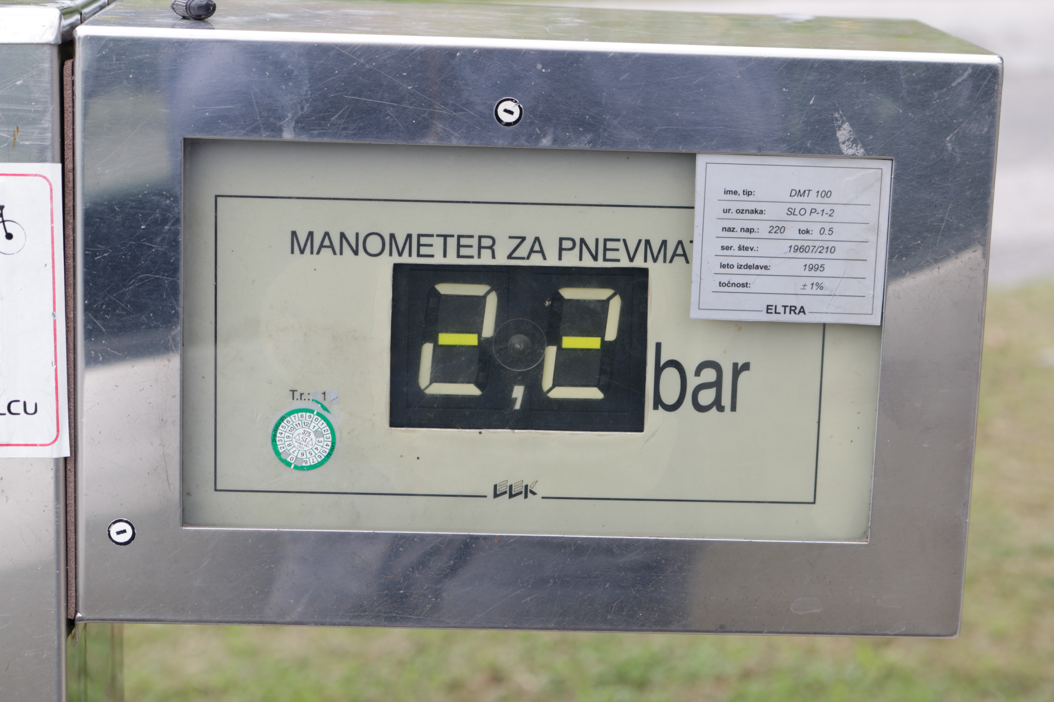 | Partizanska c. 15, Velenje OMV | 2,2 bar | 2,2 bar | 2,05 bar | 2,1 bar | 0,15 bar | 0,1 bar | polnilnica zunaj, dostopna, analogni prikazovalnik, poškodovan zaradi vlage |