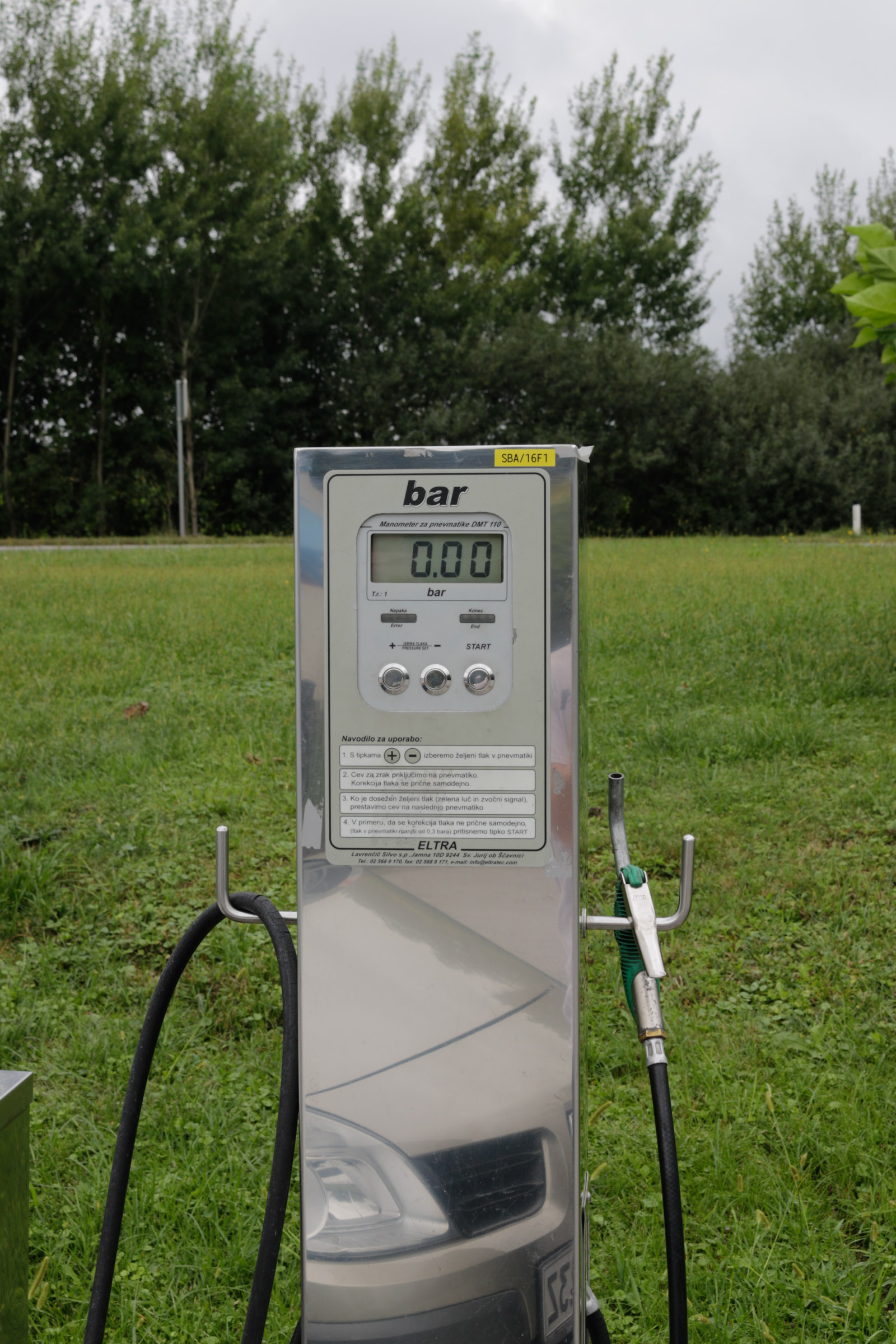 | Velenje - Selo OMV | 2,2 bar | 2,2 bar | 2,0 bar | 2,1 bar | 0,2 bar | 0,1 bar | polnilnica zunaj, dostopna, digitalni zaslon, brez poškodb |
