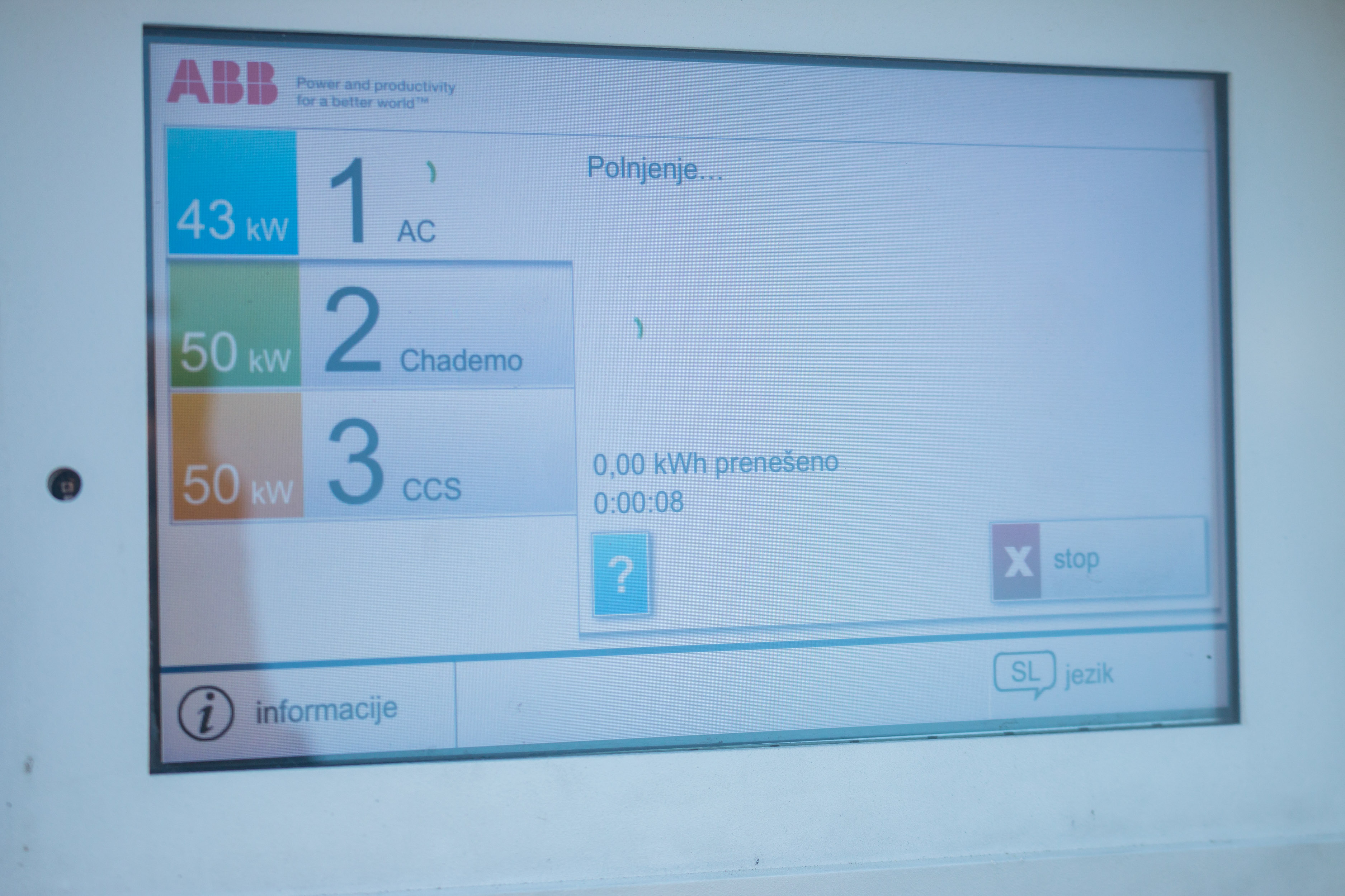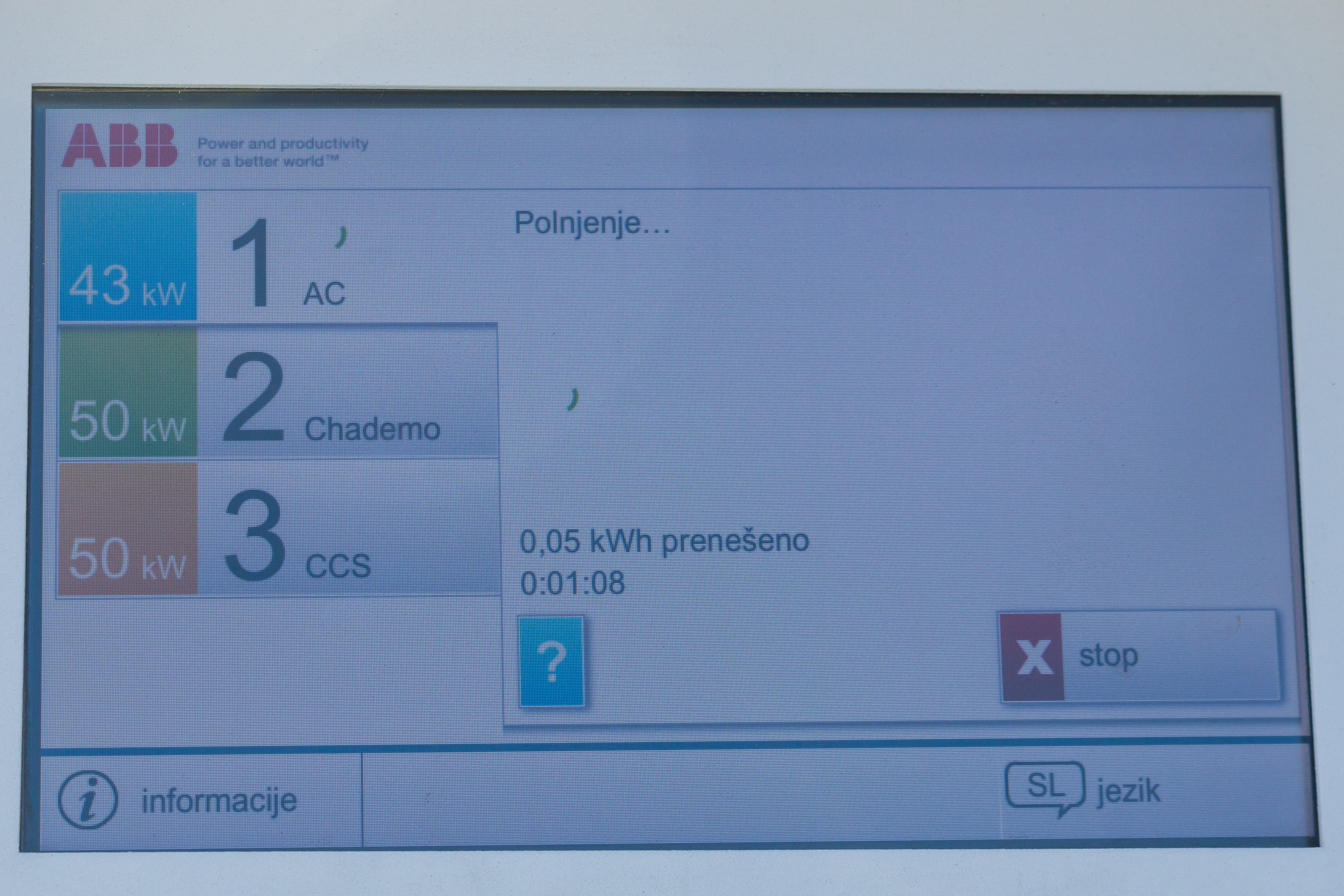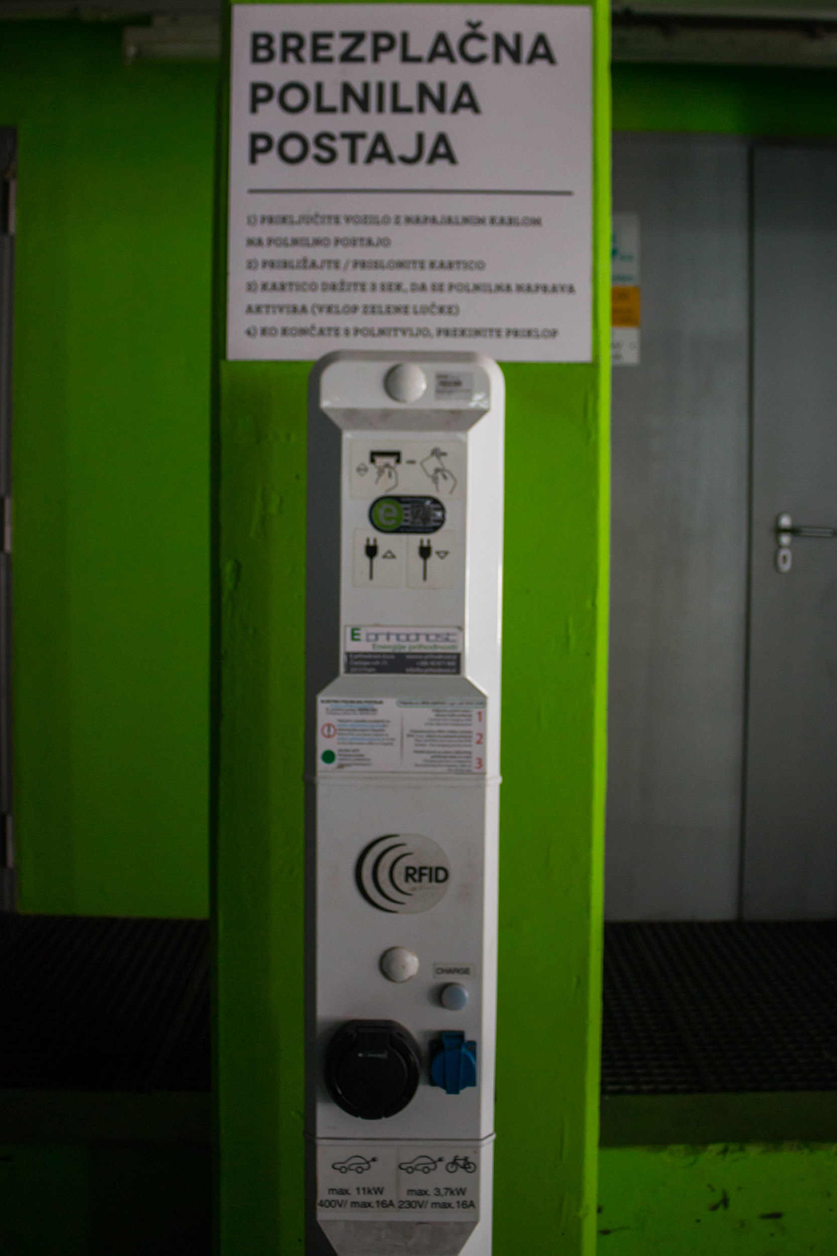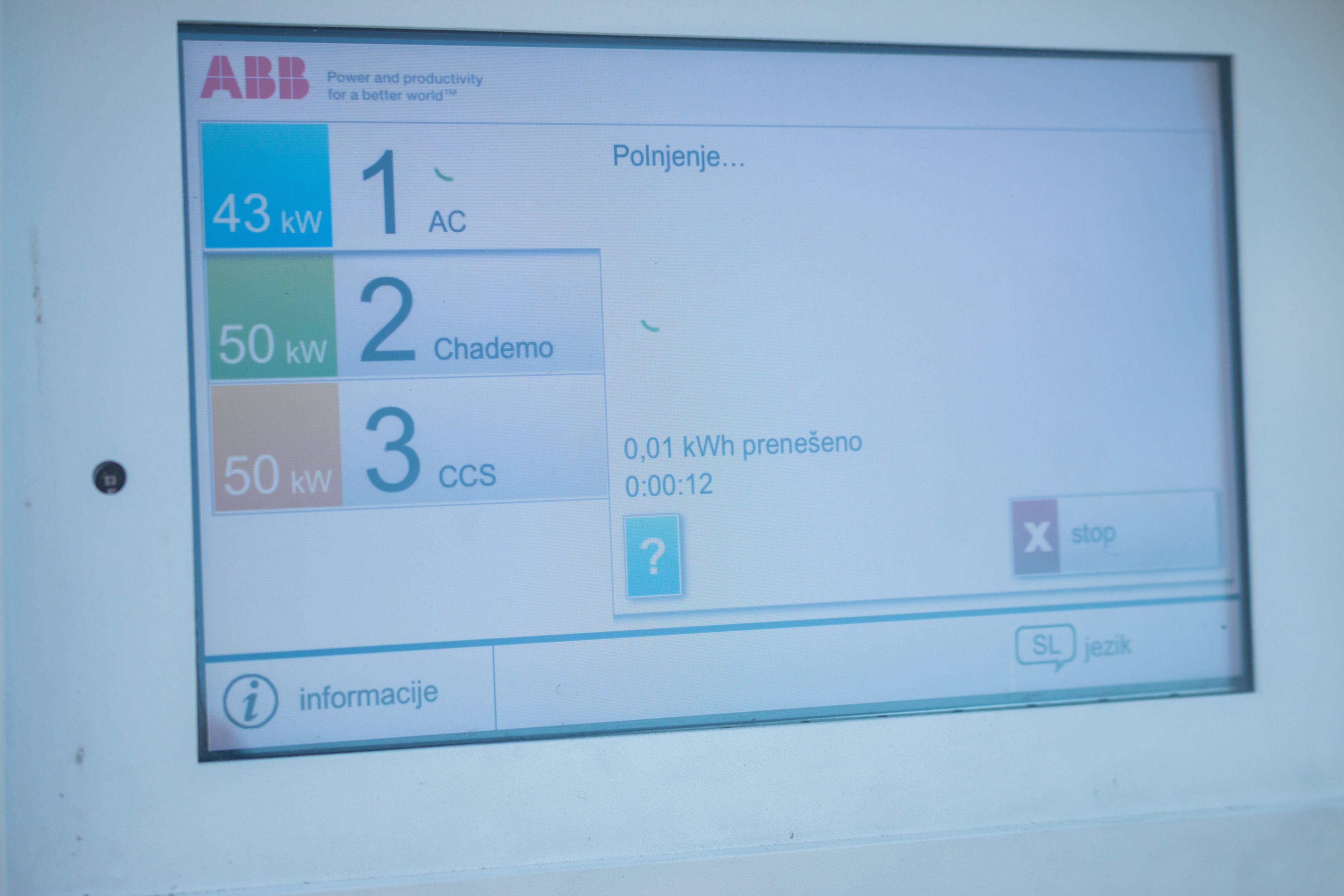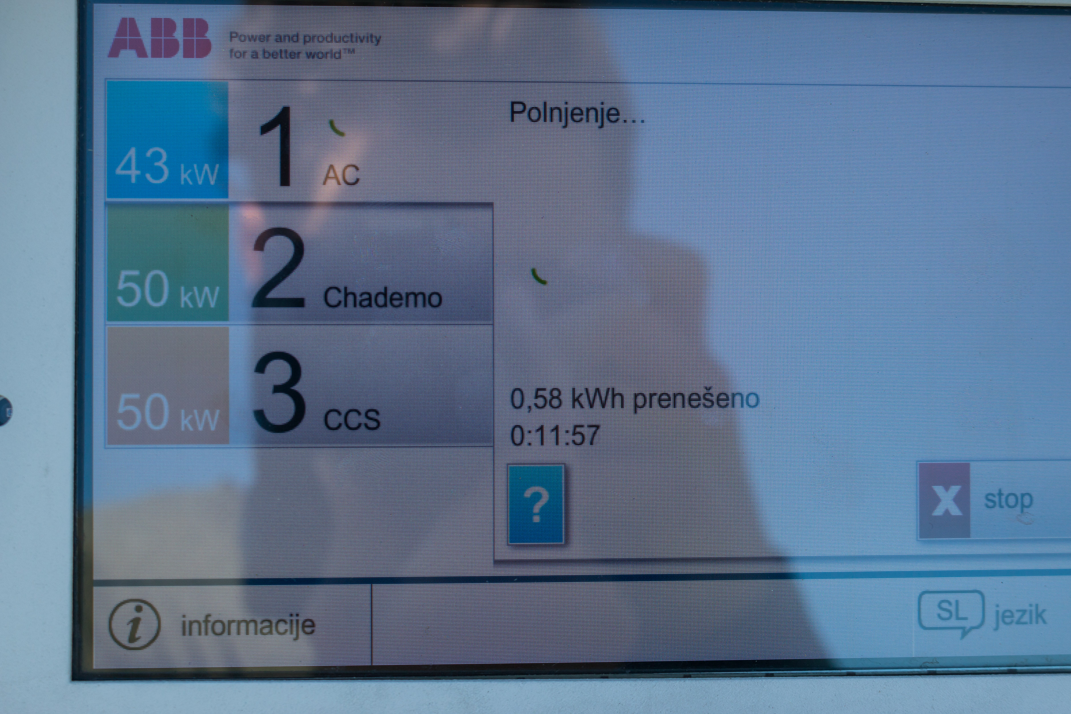 Na testu smo se ustavili na petih lokacijah in sicer pri Hoferju na Chengdujski cesti 1, Lidl na Toplarniški ulici 10 in ob polnilnicah v garažni hiši BTC, centru Interšpar na Viču in Mercator centru v Šiški. Na vseh polnilnicah, razen v BTC, je polnjenje brezplačno. V BTC smo na informacijah izvedeli, da za polnjenje na določenih brezplačnih polnilnicah potrebujemo RFID kartico, ki jo posreduje upravljavec polnilne postaje, ta pa seveda ni zastonj. Aktivacija kartice, ki vam jo pošljejo na dom, je 5 evrov + DDV za letno aktivacijo, si pa lahko kartico tudi sposodiš, za kar smo morali na okencu z informacijami pustiti osebni dokument. Pri Hoferju nas je na polnilnici pričakal napis, da potrebujemo Petrolovo kartico elektromobilnosti, če pa le te nimamo, naj za izposojo povprašamo prodajalca. Če pri njih polnite z uporabo lastne RFID kartice, je elektrika brezplačna. V vseh drugih primerih je bila uporaba mogoča brez kakršnekoli prijave. Le Hoferjeva polnilnica je imela vmesnik z ekranom na dotik, ki nas je lepo in natačno vodil skozi postopke priključitve in polnjenja avtomobila. Smo pa na Hoferjevi polnilnici naleteli na drugačno težavo, saj ena izmed vtičnic ni bila zmožna vzpostaviti povezave z avtomobilom, ob izključitvi vtikača pa je prikazala nemogočo porabo energije, kar pomeni, da je bila verjetno v okvari.