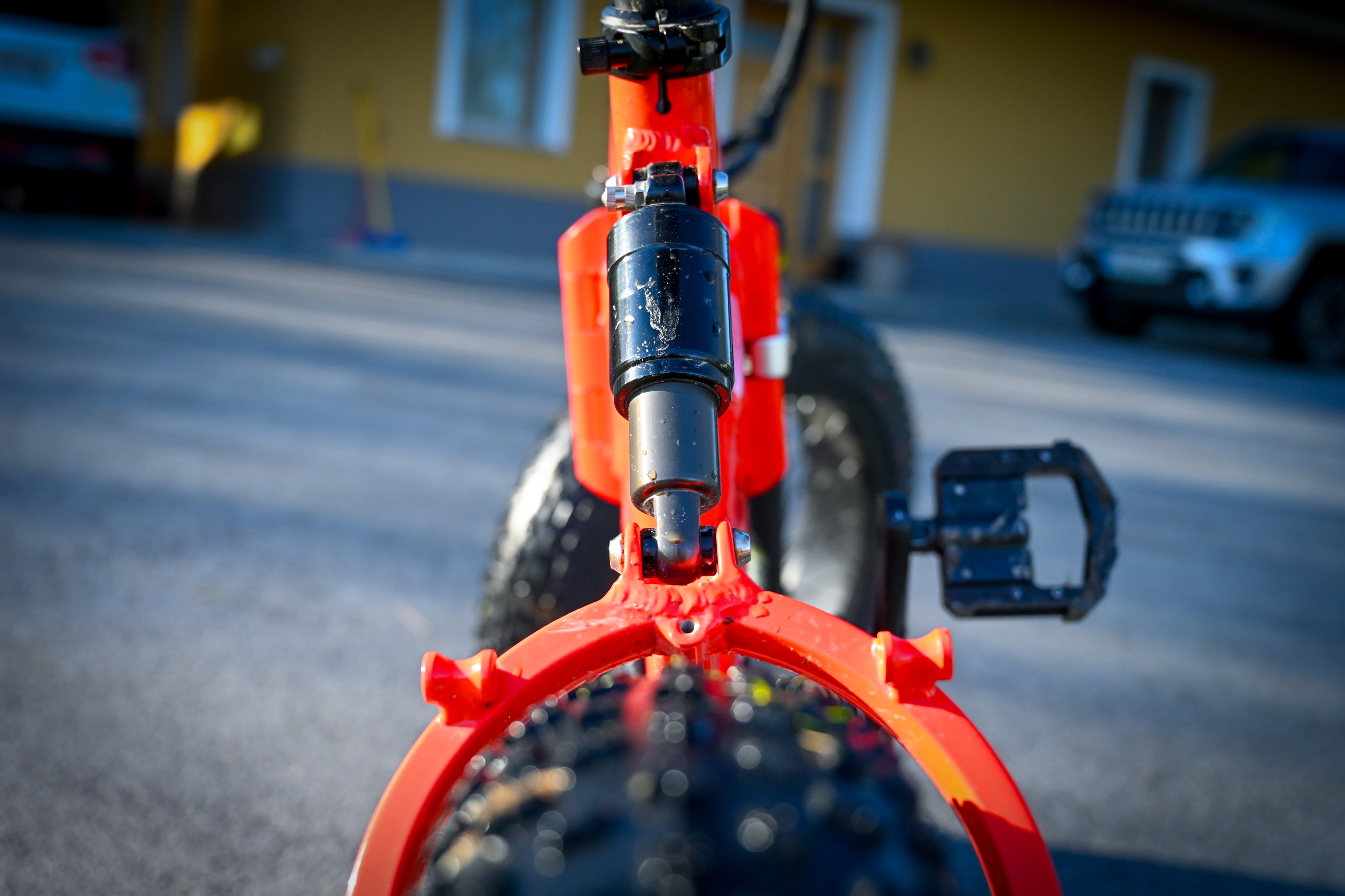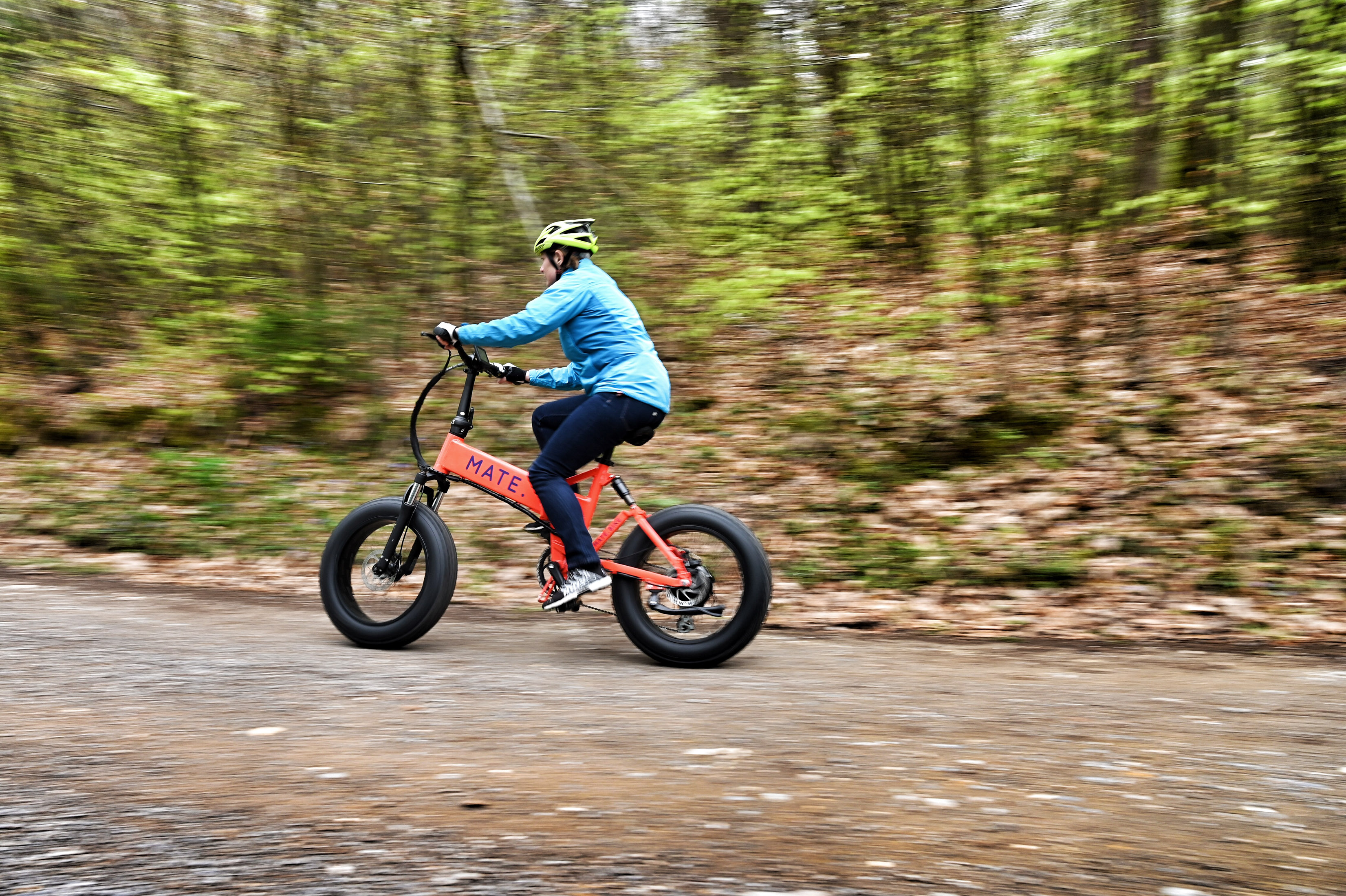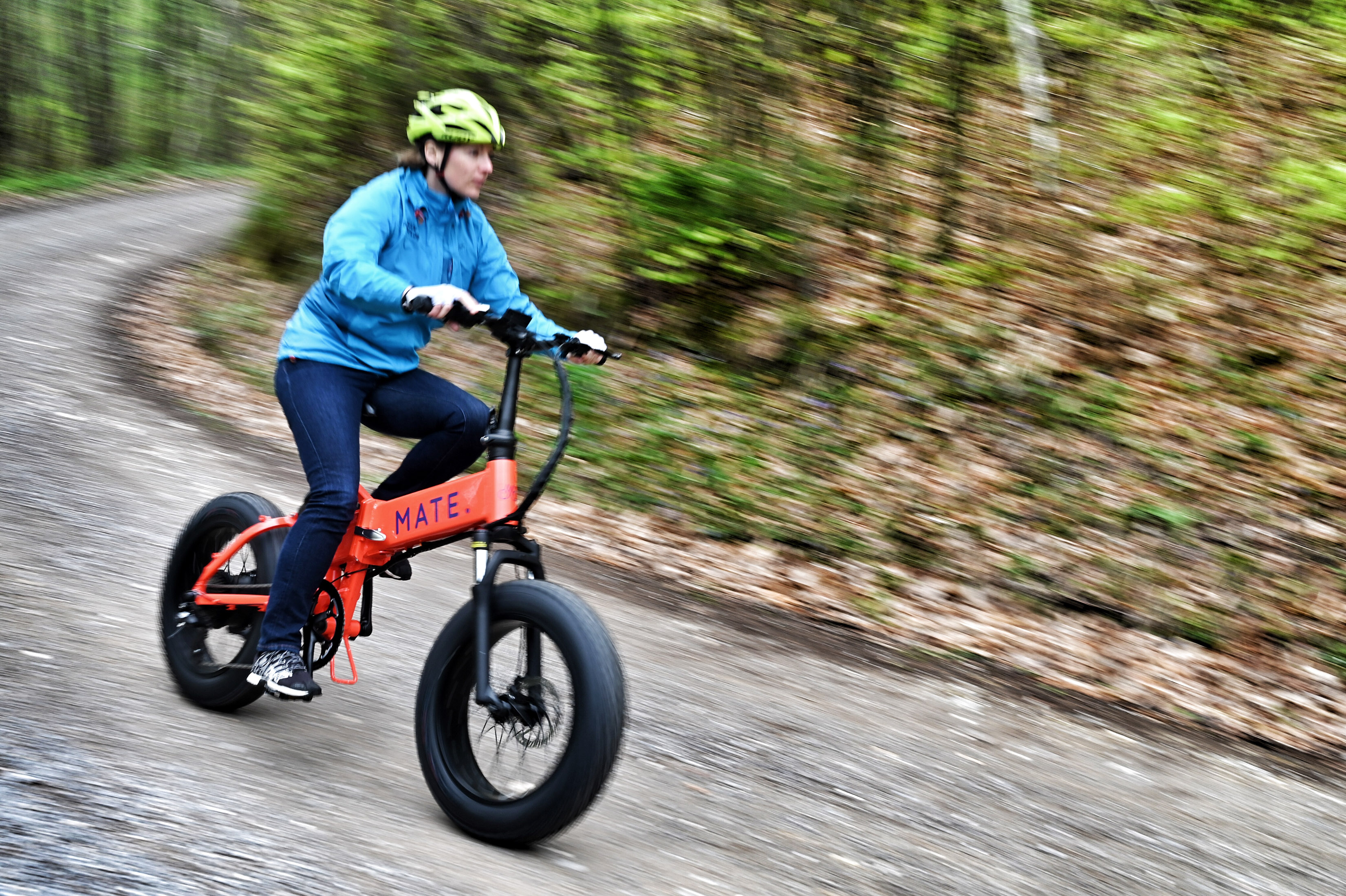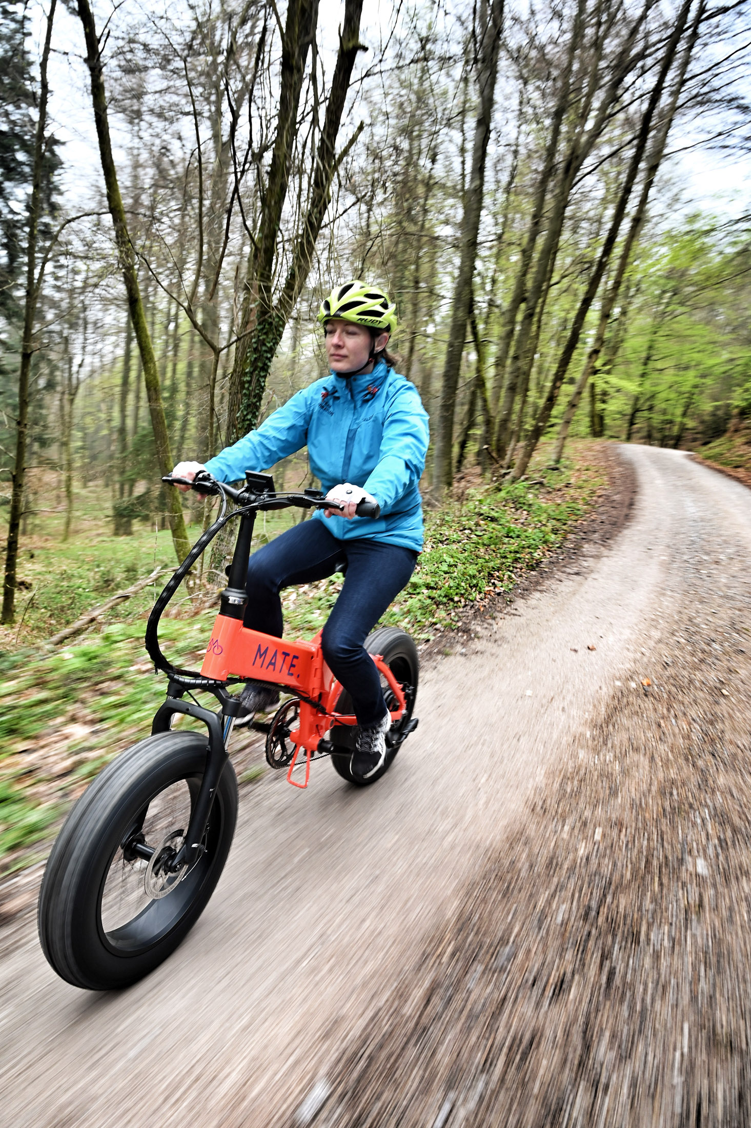 A že po prvih metrih hitro pozabiš na nerodno nalaganje iz avta; mate X je neverjetno zabavno električno kolo, s katerim se je užitek zapoditi tako po kolesarski stezi kot po gozdni ali hribovski stezici. Visoko postavljeno krmilo in nastavljiv sedež zagotavljata zelo udoben položaj na kolesu, z debelimi terenskimi pnevmatikami na kolesih in ob pomoči električnega motorja pa se je otročje lahko spopasti tudi z visokimi robovi, velikimi koreninami ali skalami na poti. Zaradi velike mase se z njim verjetno ne da prav suvereno skakati po spustaških poligonih, zato pa lahko z njim kolesarite navkreber po progah za spust. Prednje in zadnje vzmetenje zagotavljata veliko udobja, svoje dodajo še mehke (a pred predrtjem zaščitene ) pnevmatike - danskemu debeluhu ni mar, kakšno podlago ima pod kolesi.