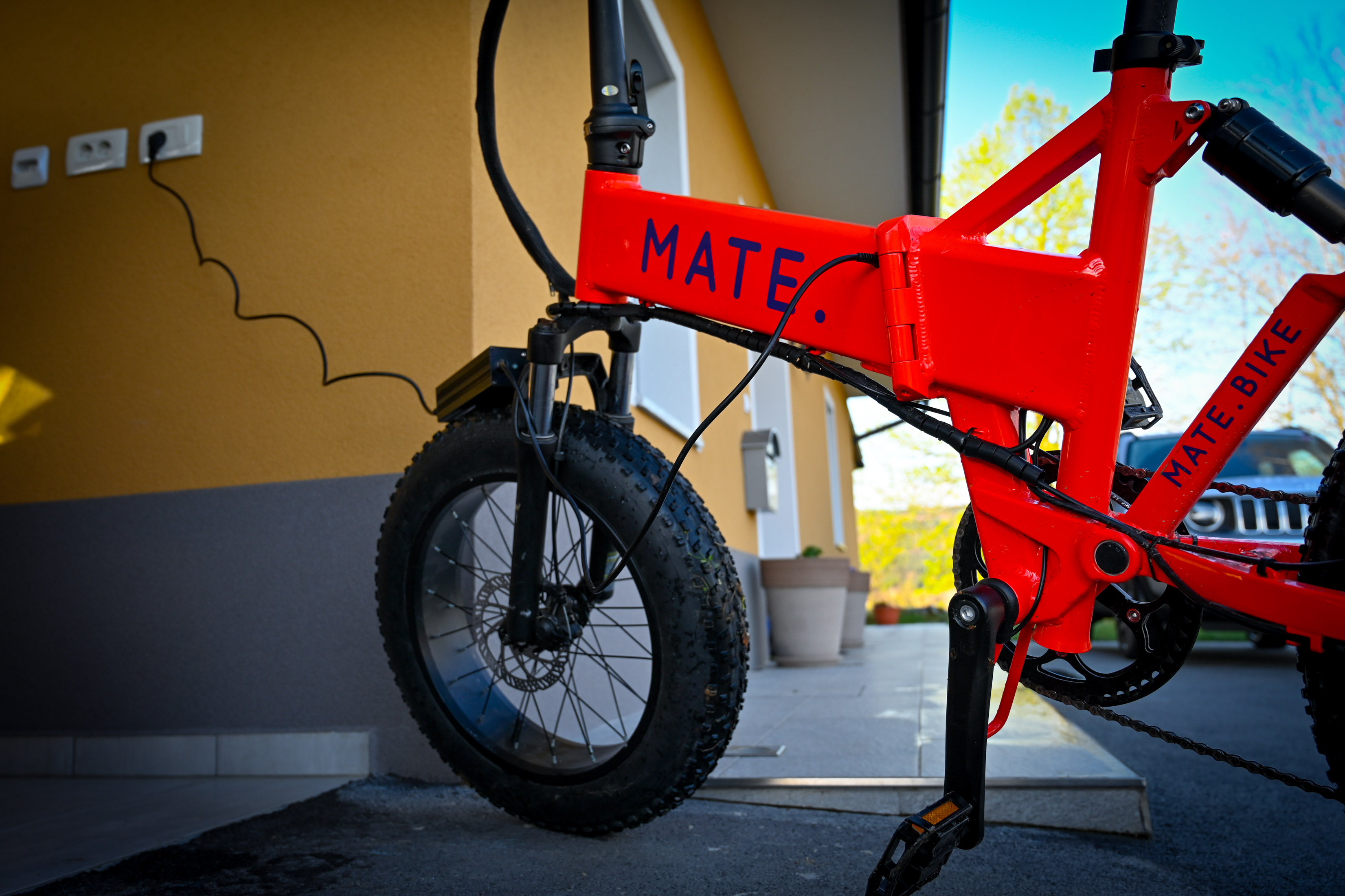 | Električni motor z 250 W, odklopljiv litij-ionski akumulatorski sklop 48 V in 14,5 Ah (0,696 kWh), doseg do 80 km, masa 29 kg. Zaslon nadzorne enote, zložljivo krmilo, nastavljiv zadnji blažilnik, nastavljiva prednja blažilnika z mehanskim zaklepom, zložljiva pedala, kolutna prednja zavora, 8-stopenjski menjalnik, enostavno odklopljivi električni vodniki za hitrejše serisiranje, zložljiv aluminijast okvir, možnost izbire terenskih ali cestnih 4-palce širokih pnevmatik na 20-palčnih kolesih. Več informacij: mate.bike/eu. |