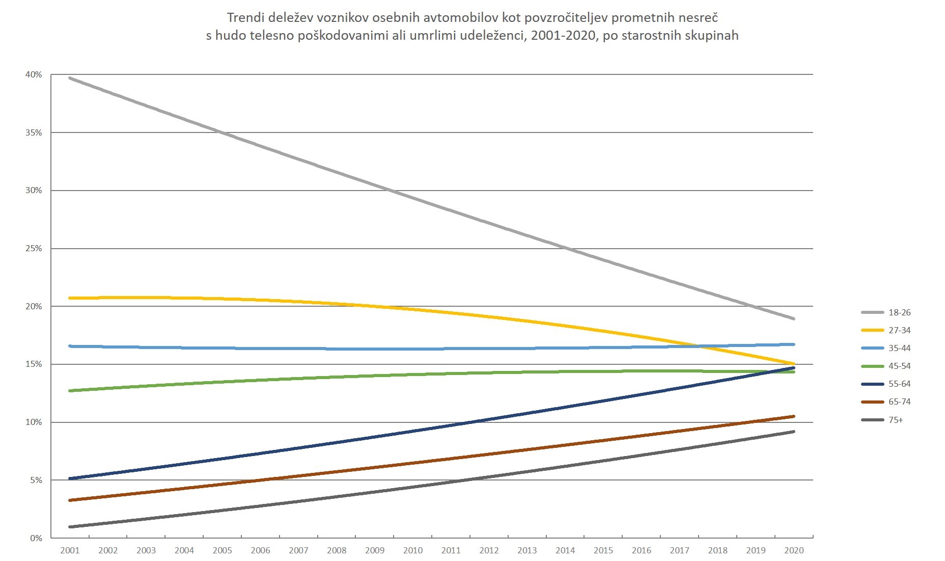 Vrsto let je veljalo, da so mladi udeleženci tisti, ki spadajo med najbolj rizične skupine. Pregled povprečne starosti povzročiteljev prometnih nesreč nakazuje, da delo z mladimi, kamor spada tudi dodatno usposabljanje za voznike začetnike, že kaže učinke. Povprečna starost povzročiteljev prometnih nesreč s smrtnim izidom je 45,9 leta, povzročiteljev prometnih nesreč s hudimi telesnimi poškodbami 46,5 leta in povprečna starost povzročiteljev vseh prometnih nesreč 44 let.