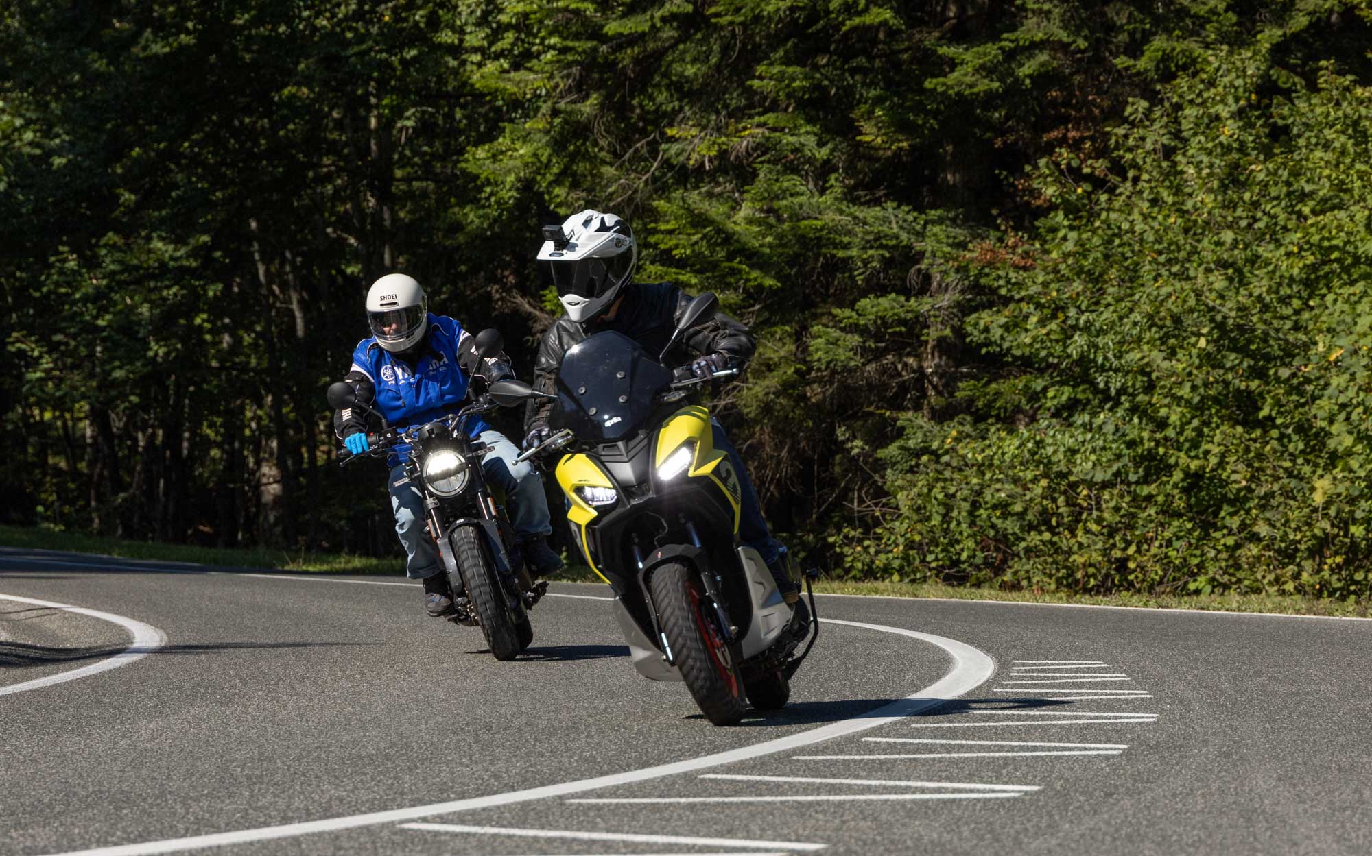 Zaradi kode 125 v vozniškem dovoljenju je nemalo voznikov že - še veliko pa jih bo - po poenostavljeni poti sedlo za krmilo 125-kubičnega skuterja ali motocikla. Zato smo se odpravili na prav poseben izlet, na katerem je prekaljeni motorist novopečenemu motoristu pokazal, da užitki na motorju ne izvirajo iz motorne moči, ampak iz razumevanja ceste pri vožnji na dveh kolesih. To smo dokazali na skuterju in motociklu, ki skupaj ponujata pičlega četrt litra motorne prostornine, a vseeno veliko užitkov …